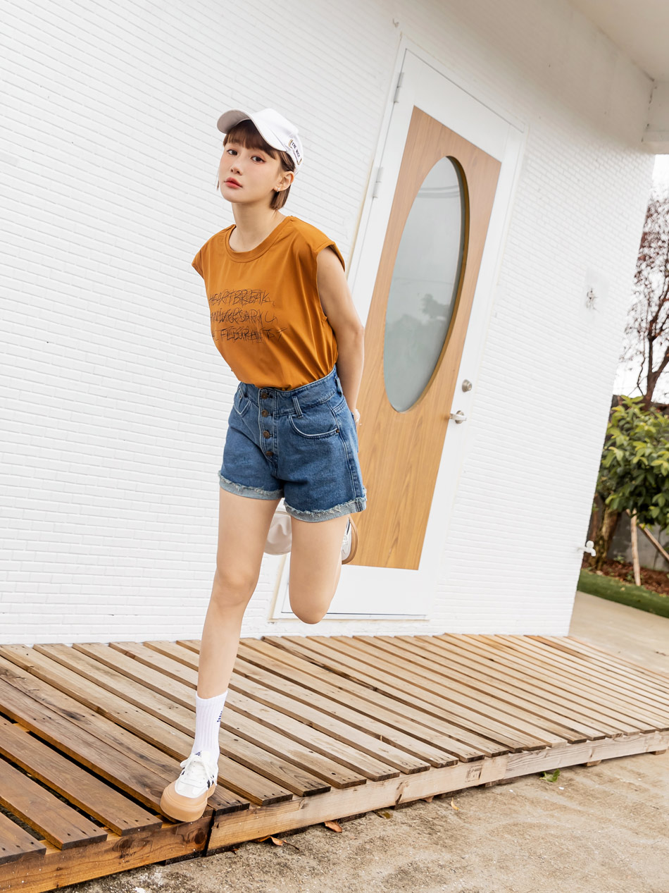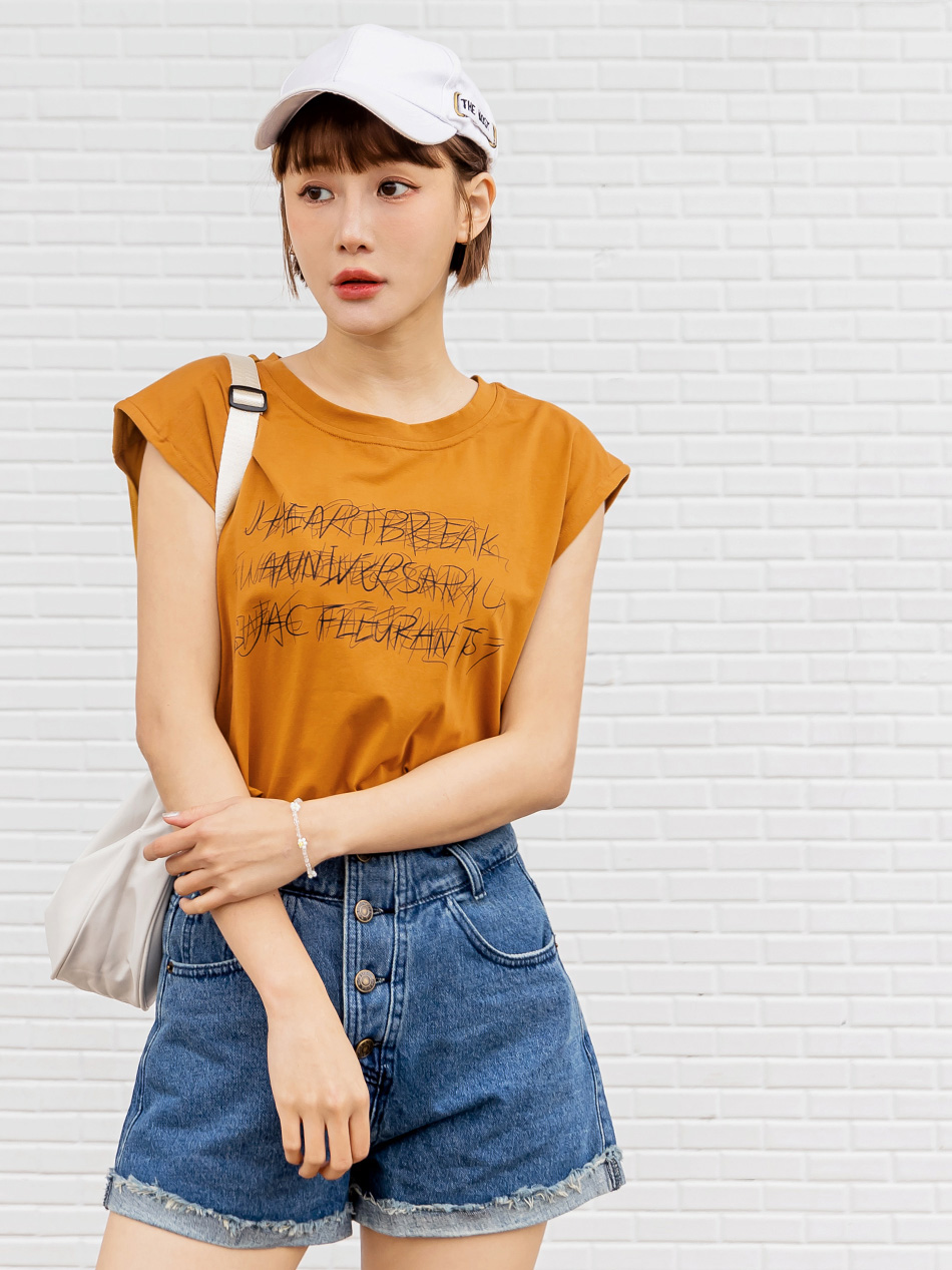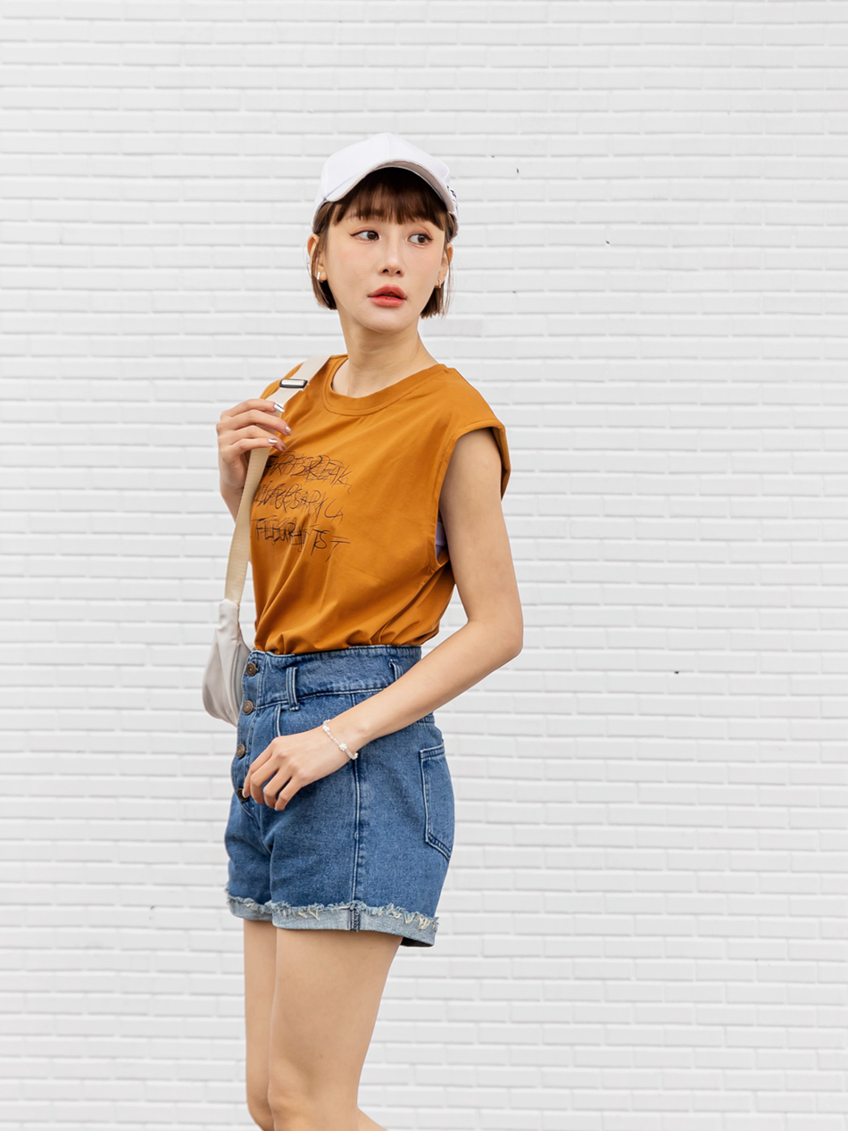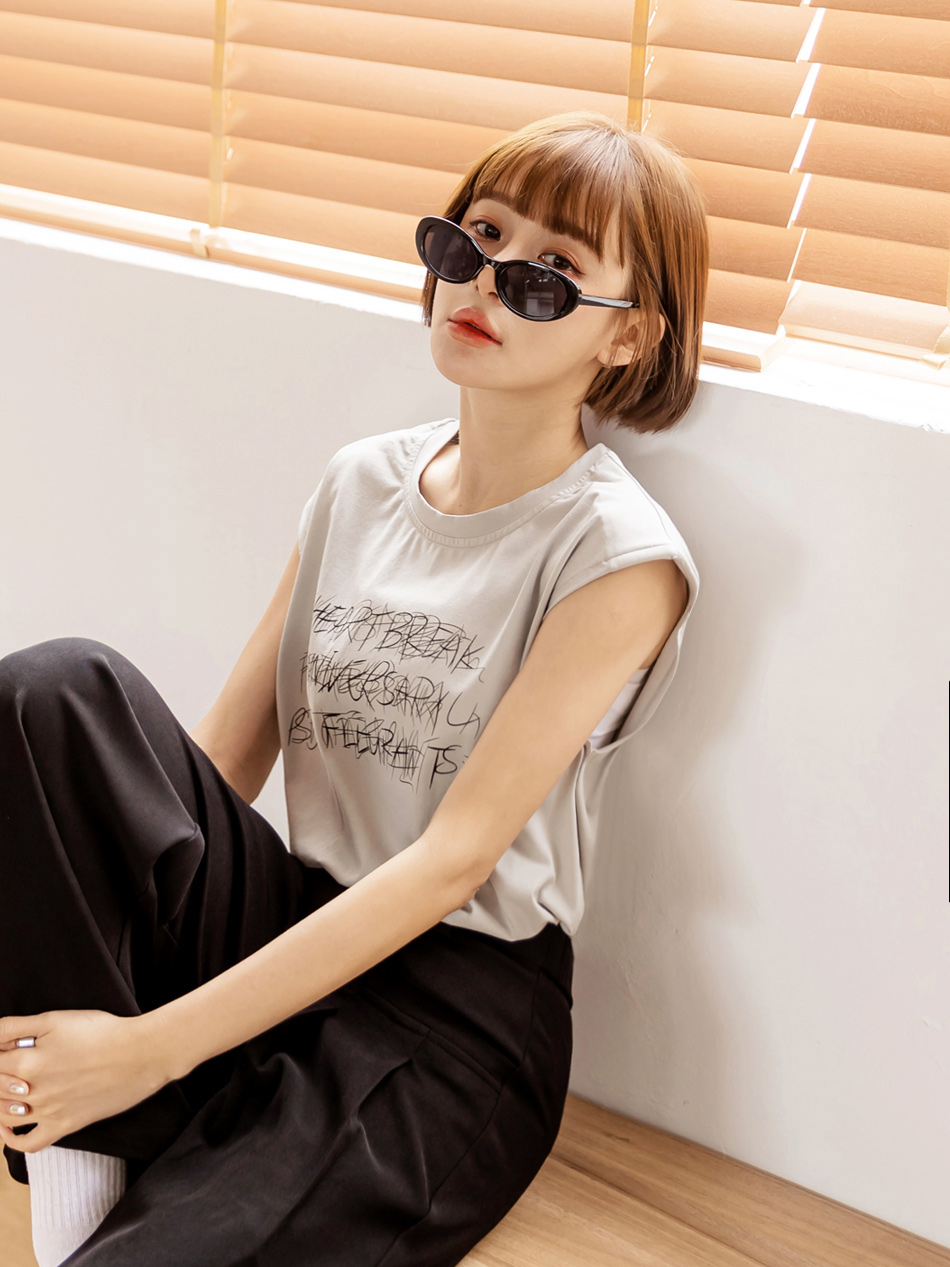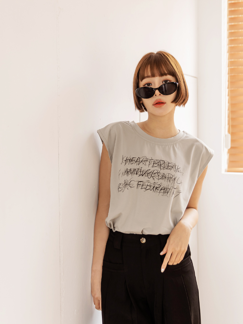 Cotton Graphic Print Sleeveless Top