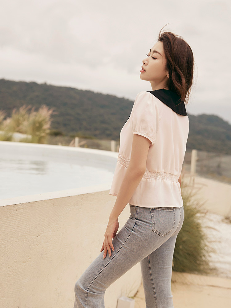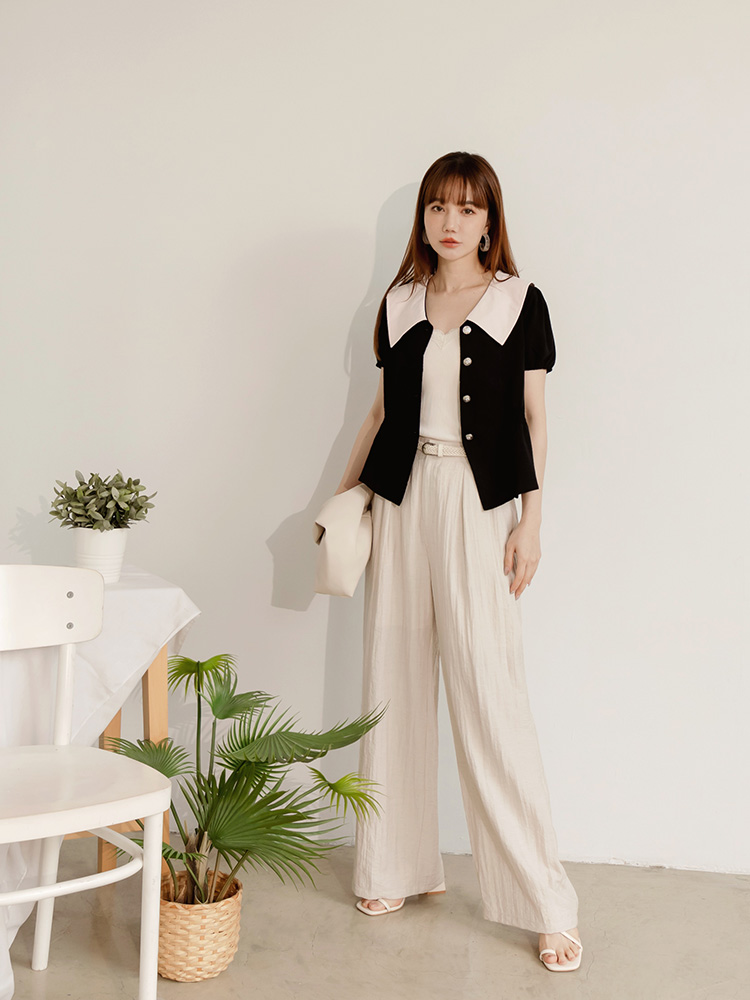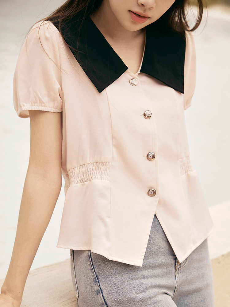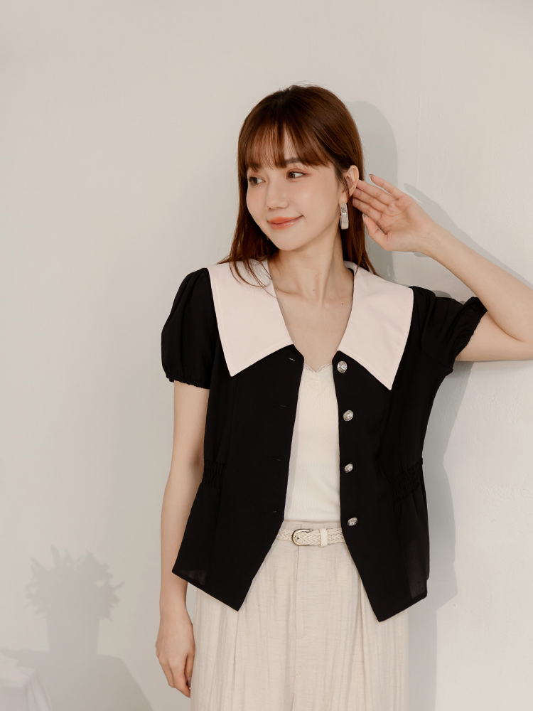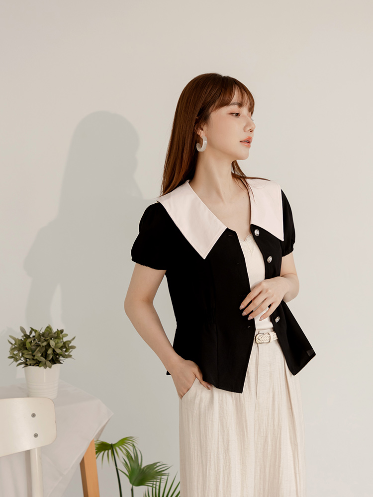 Product Feature: โ Features a contrasting colour collar for added style. โ Made from smooth, skin-friendly fabric. โ Elasticated waist and sleeves for comfort. โ Button-down design.