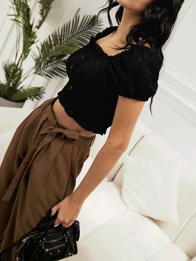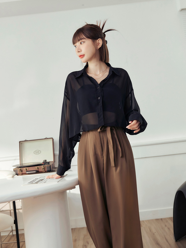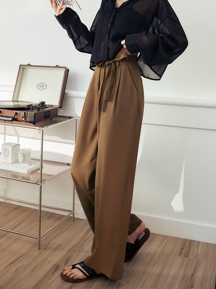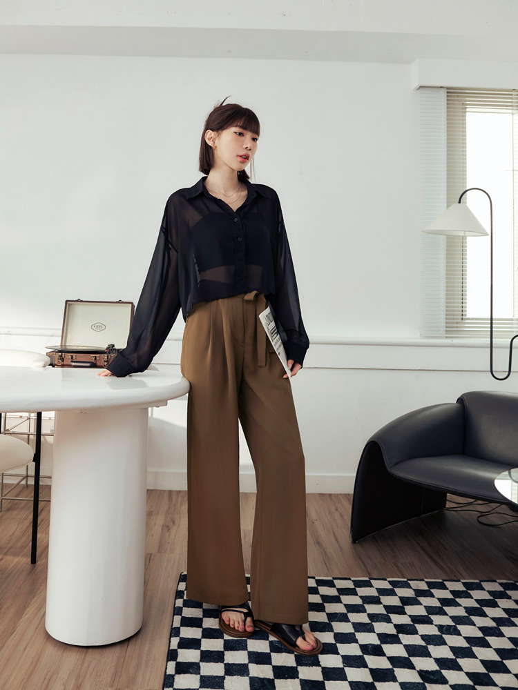Product Feature: โ Made from smooth, lightweight chiffon. โ Features a flattering, cinched waist with pleats. โ Adjustable tie-waist detail adds a stylish touch. โ Designed with a relaxed, wide-leg fit.
