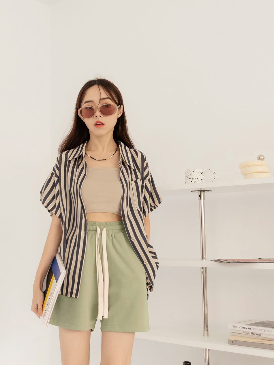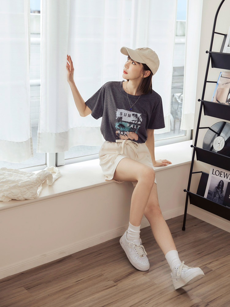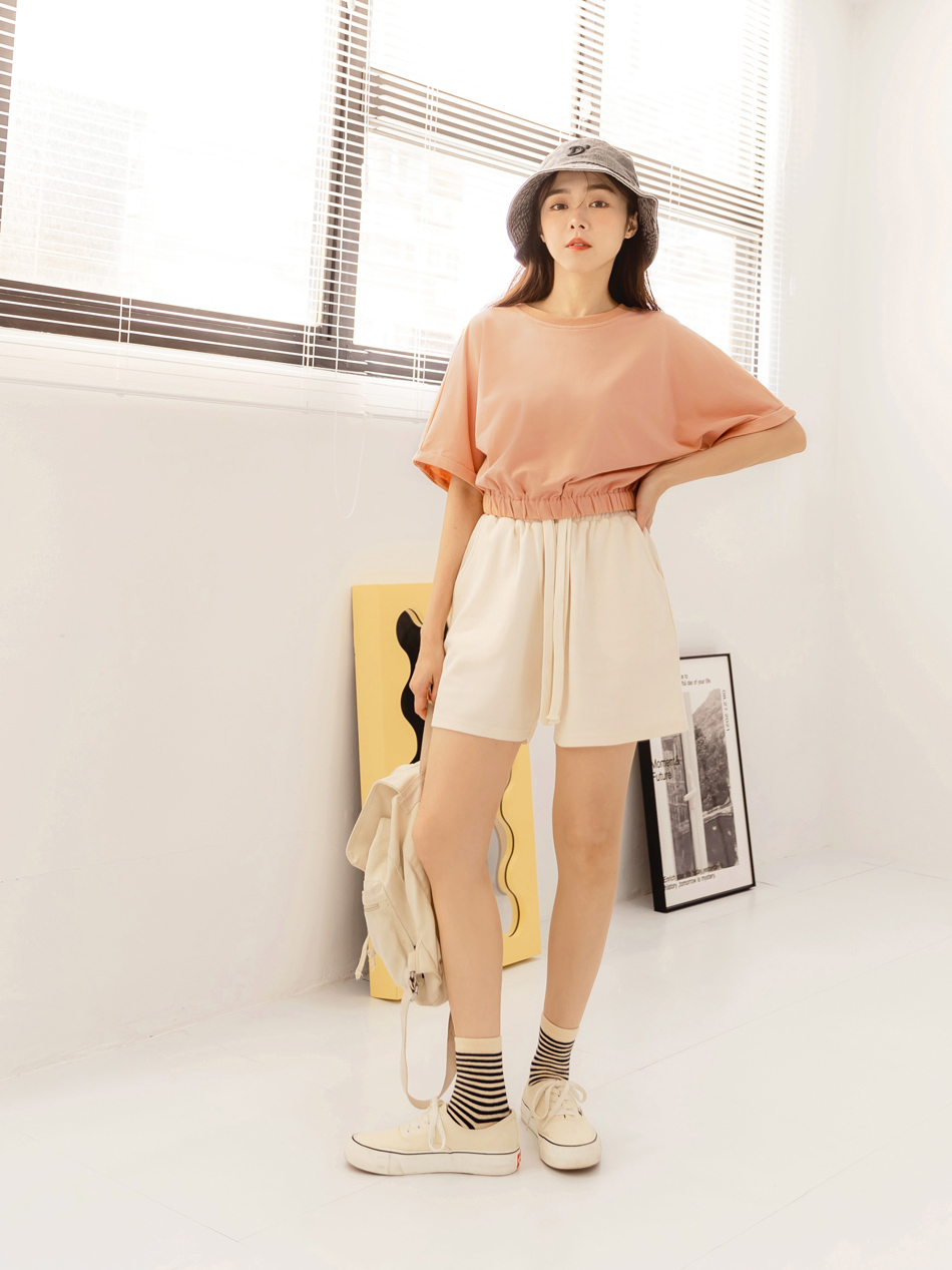 Drawstring Waist Cotton Blend Shorts