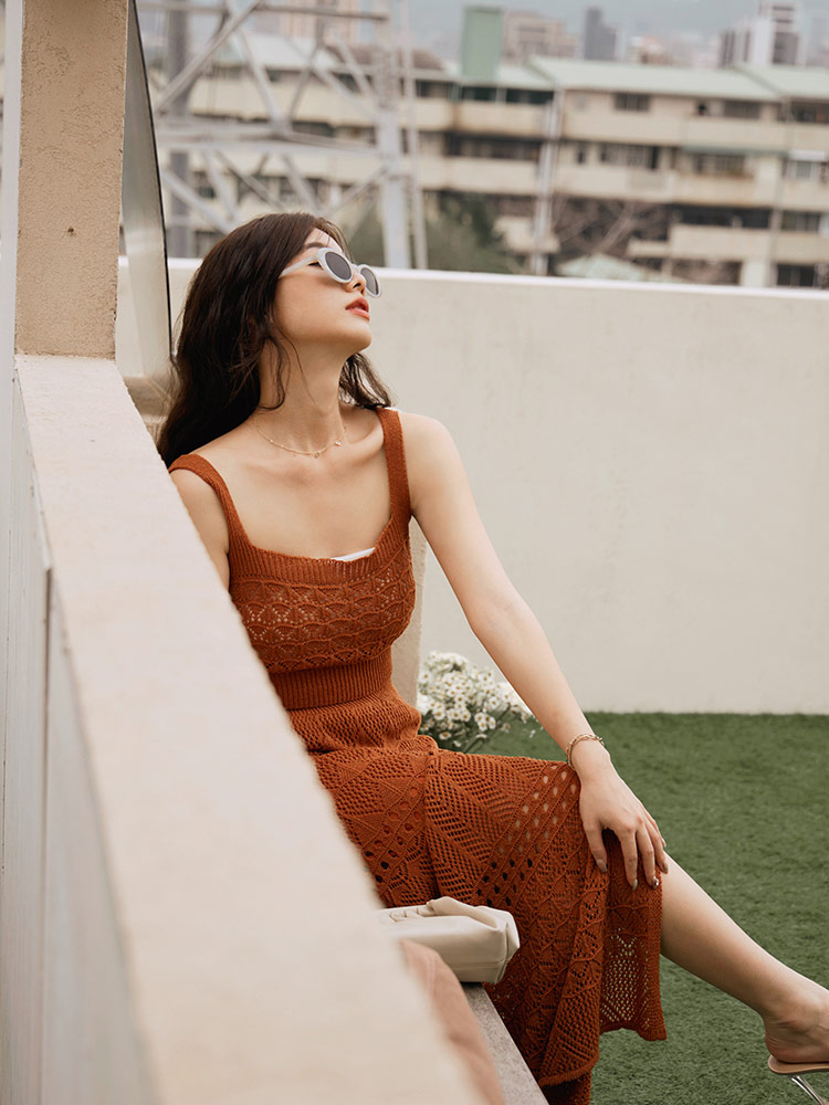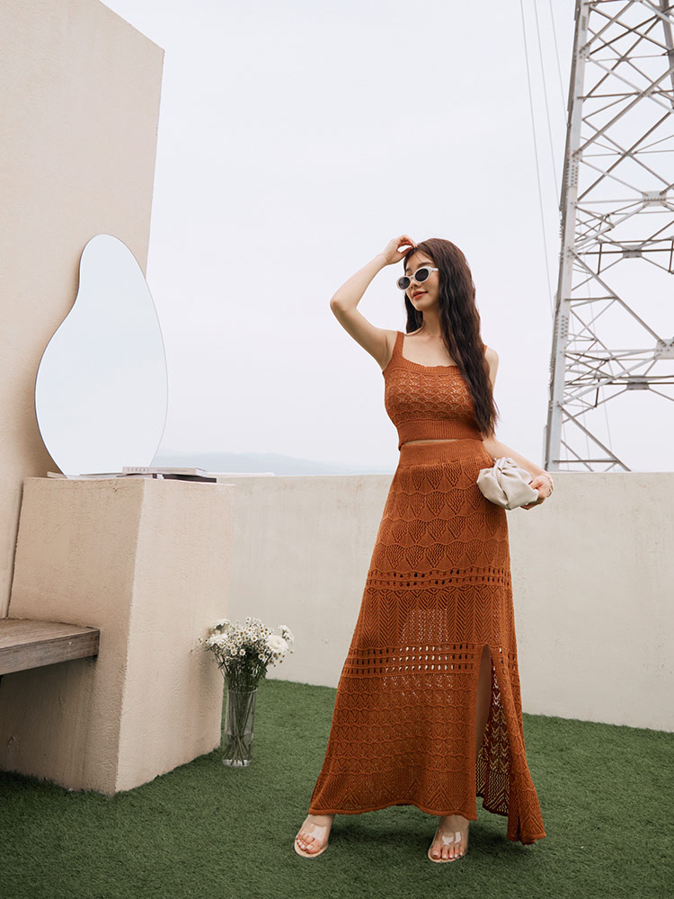 Product Feature: โ Crafted from soft, lightweight knit fabric. โ Delicate openwork design for added detail. โ Perfect for day trips or date nights.