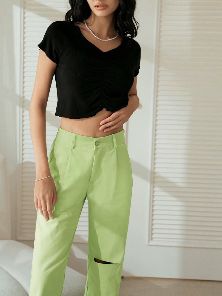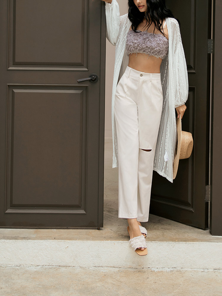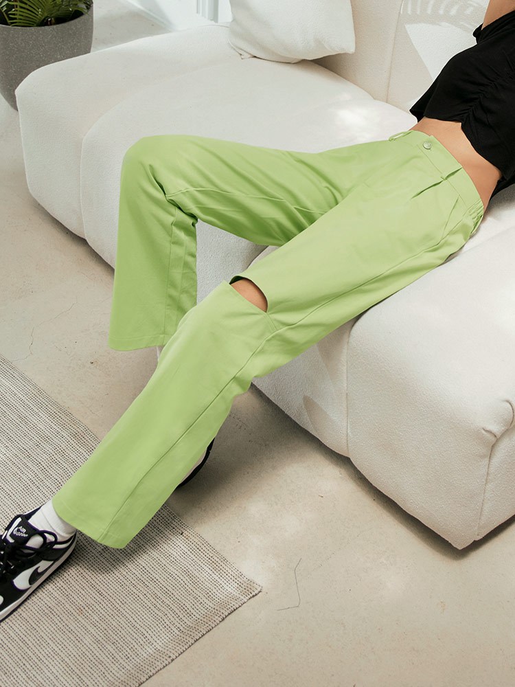 Product Feature: โ Crafted from breathable, pure cotton. โ Features a stylish ripped design. โ Designed with a flattering wide-leg fit. โ High-waist cut for a modern silhouette.