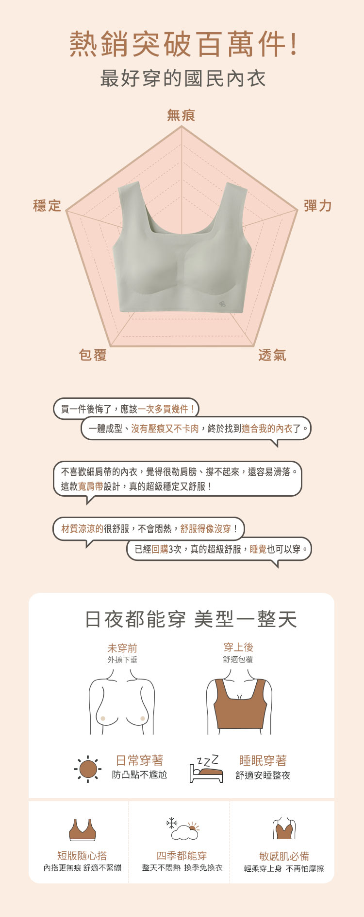 Product Feature: โ Wireless design for ultimate comfort โ Made with Lycra fabric for long-lasting shape โ Antibacterial yarn to inhibit odours โ Vest-style straps for enhanced support โ High-sided design for full coverage