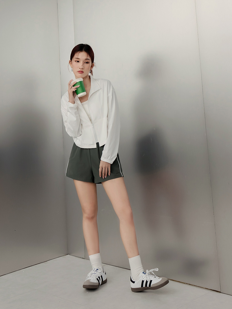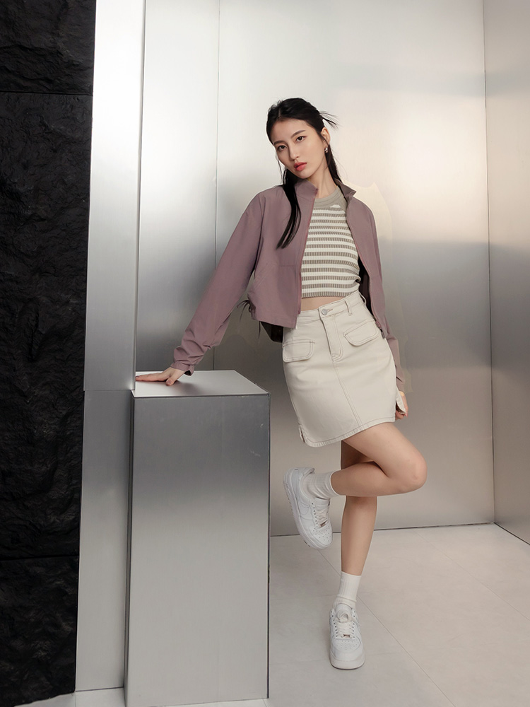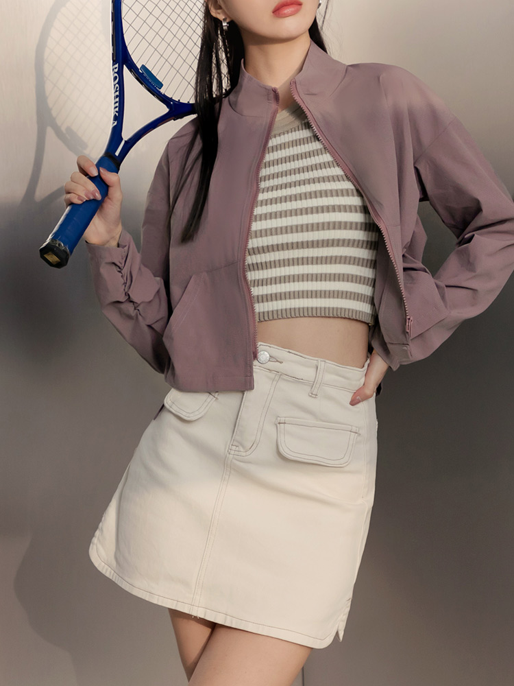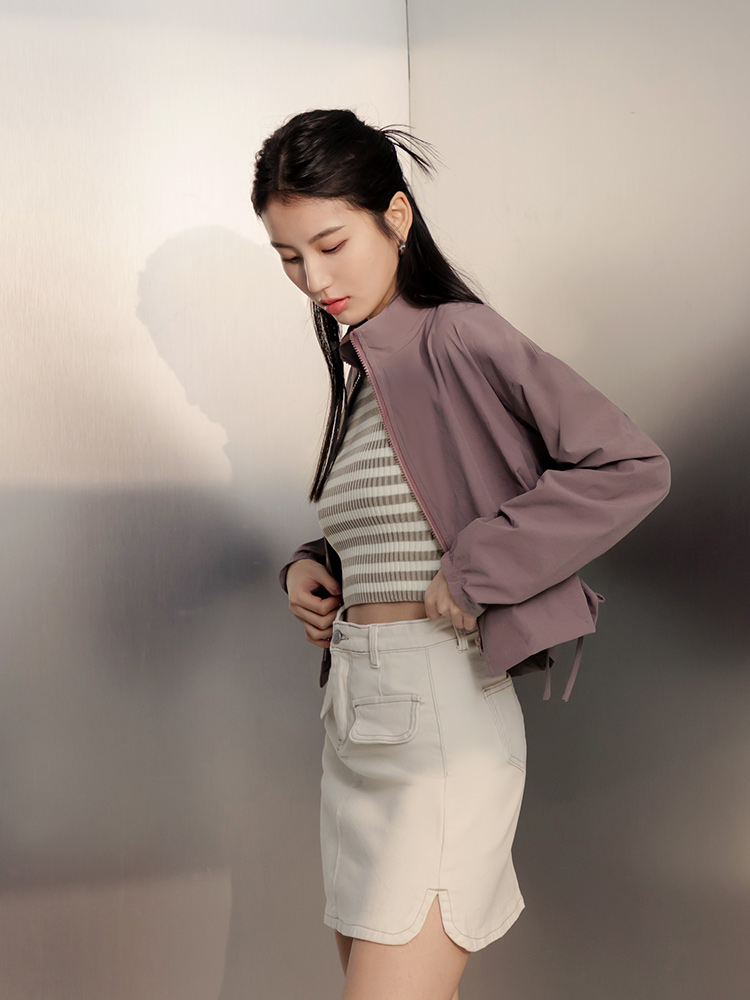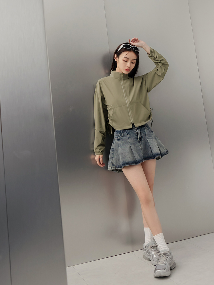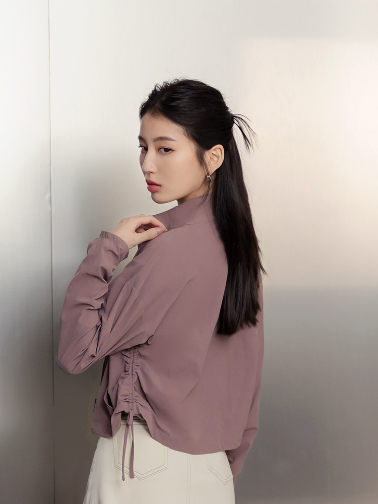 Product Feature: โ Designed with a flattering, relaxed fit. โ Features a stand-up collar for a stylish look. โ Adjustable drawstring hem for versatile styling.
