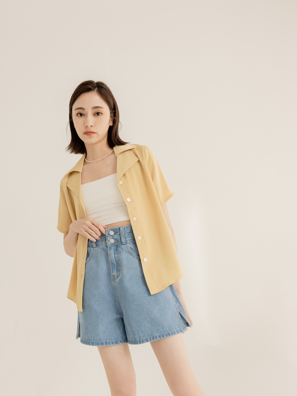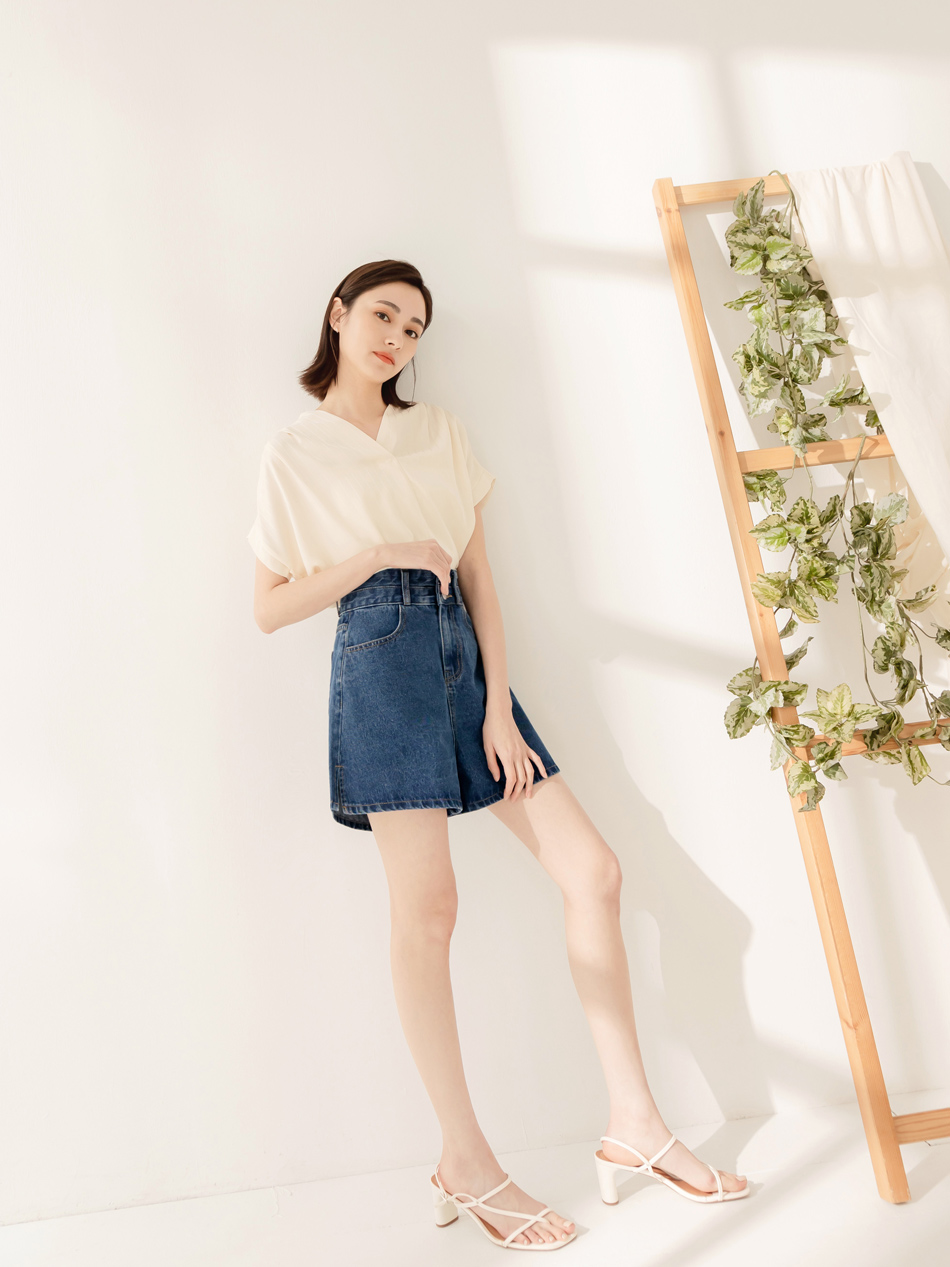 High-Waist A-Line Denim Shorts