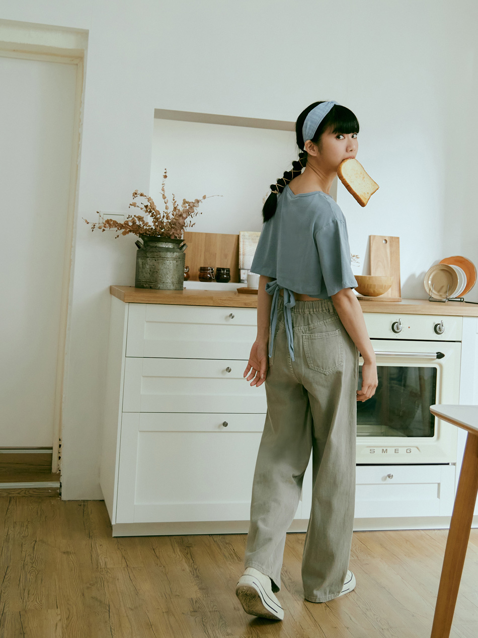Product Feature: โ Crafted from soft, pure cotton for gentle comfort. โ Stylish tie-back design at the back hem. โ Cropped length to flatter your figure.