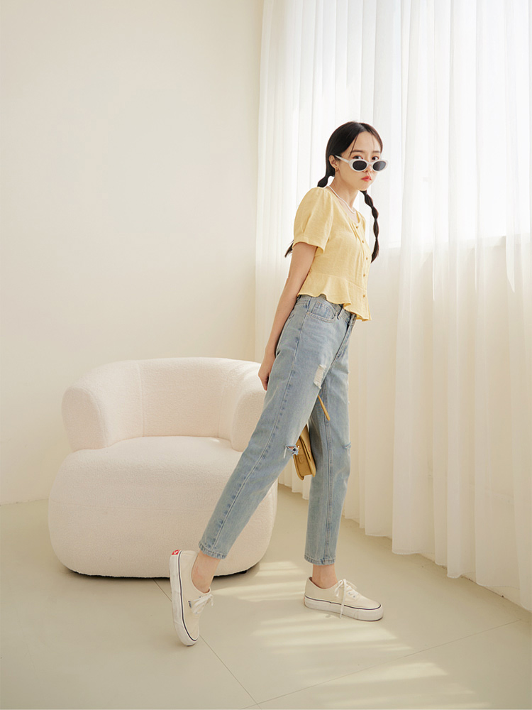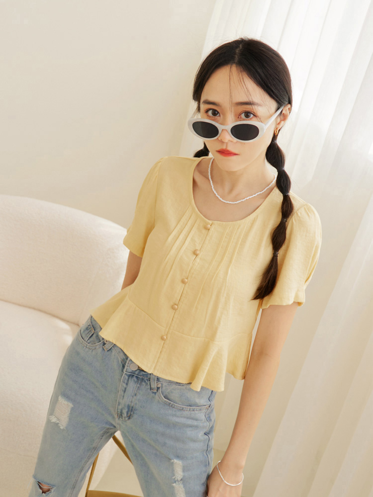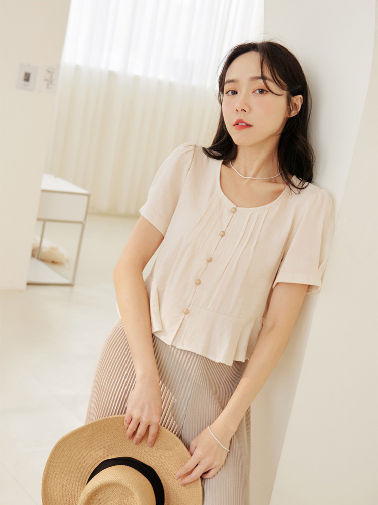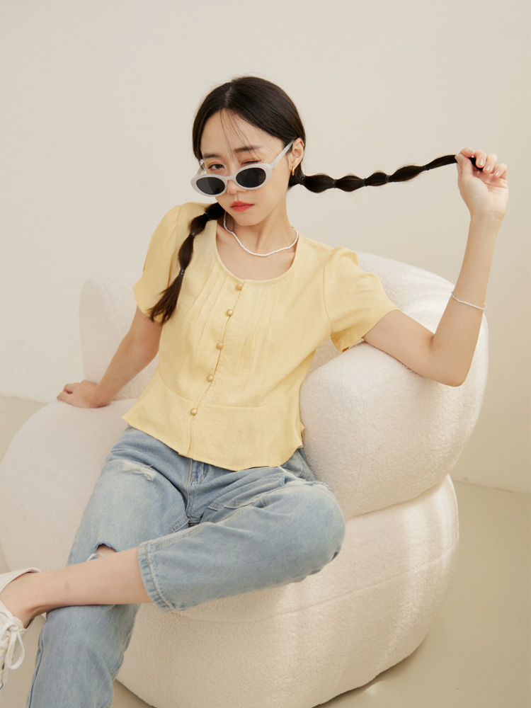 Soft-Touch Button-Up Cropped Tee (2XL~3XL)