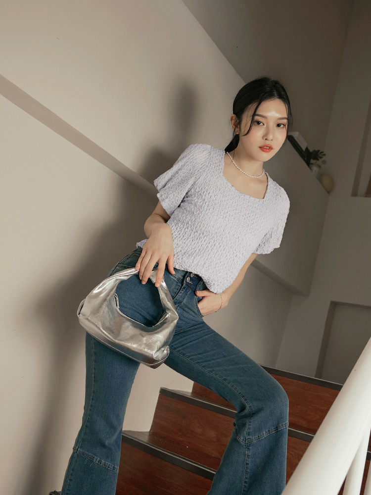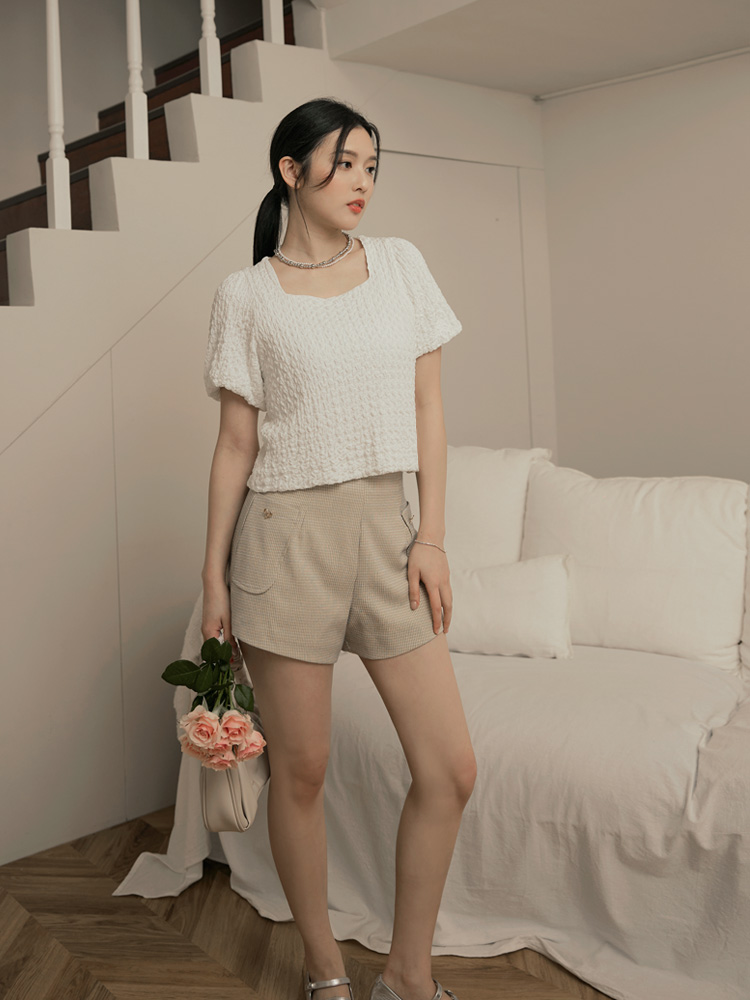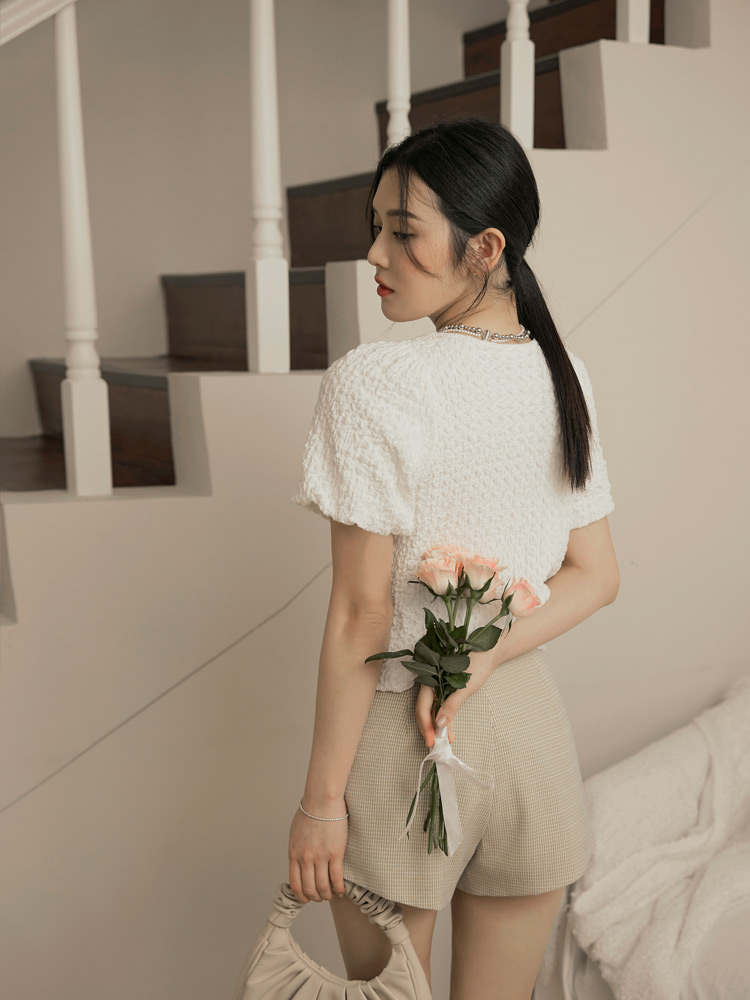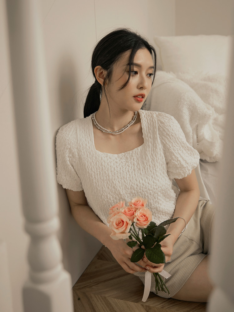 Product Feature: โ Features a textured, high-quality finish. โ Square neckline to flatter the face. โ Voluminous puff sleeves add a touch of flair.