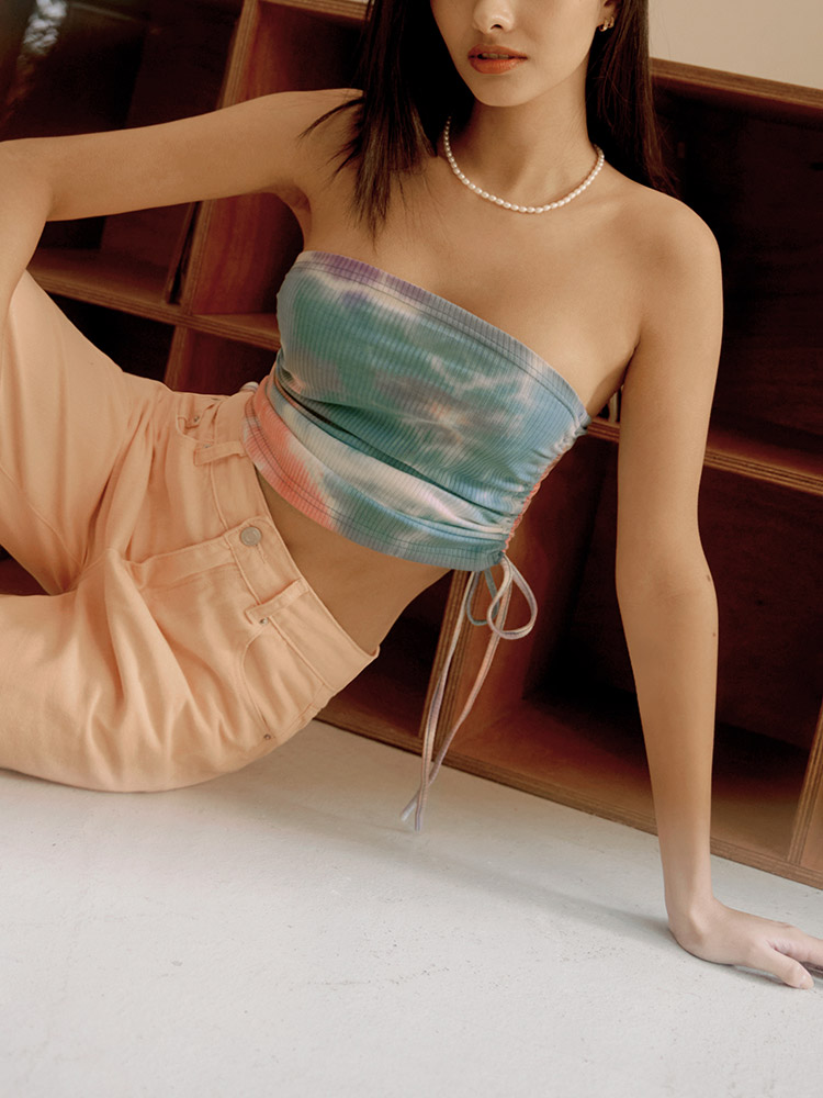 Ribbed Drawstring Crop Top (XL)