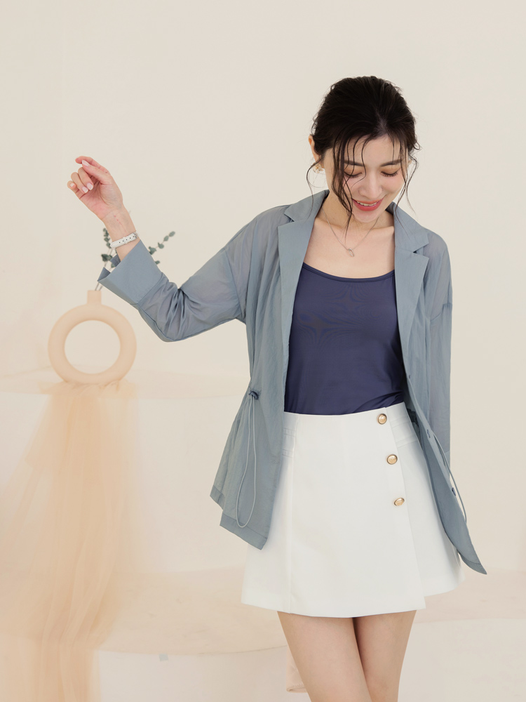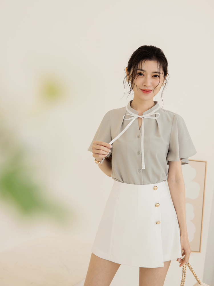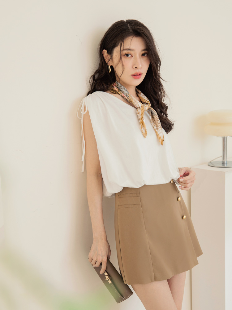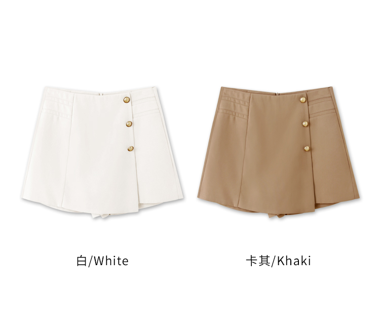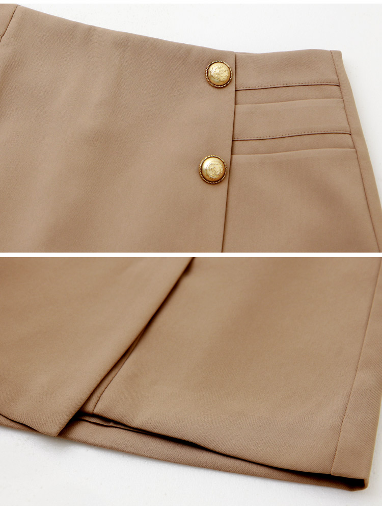 Product Feature: โ Features an asymmetric design for added visual interest โ Decorative metal button detailing โ Includes a lining for comfort and a smooth fit โ Designed with a slightly wider leg opening to flatter the legs