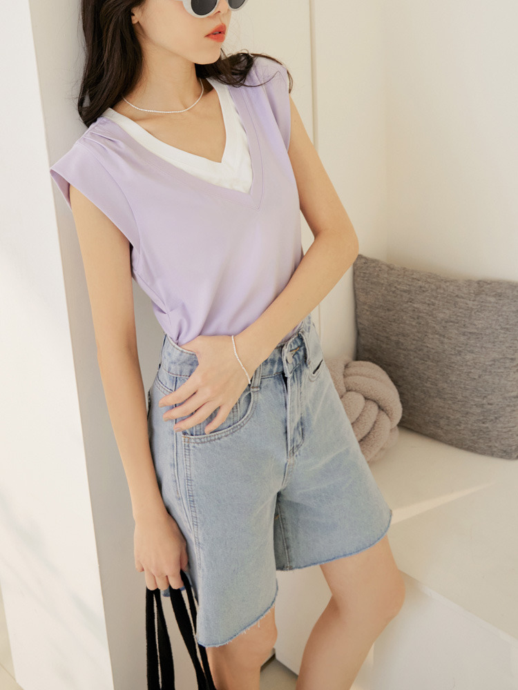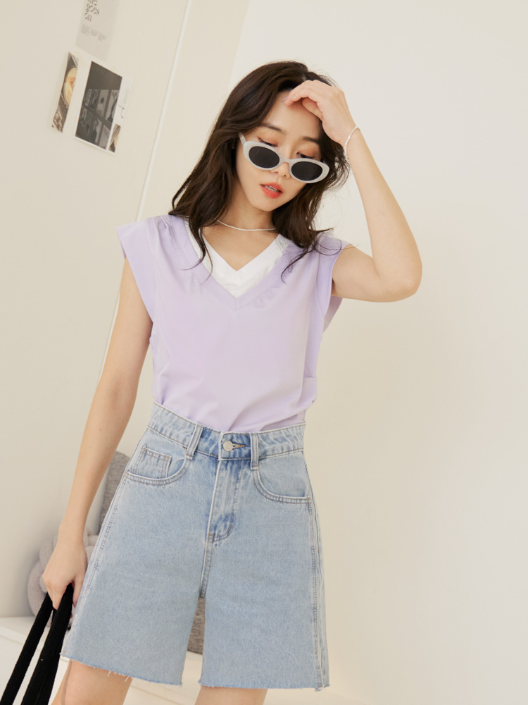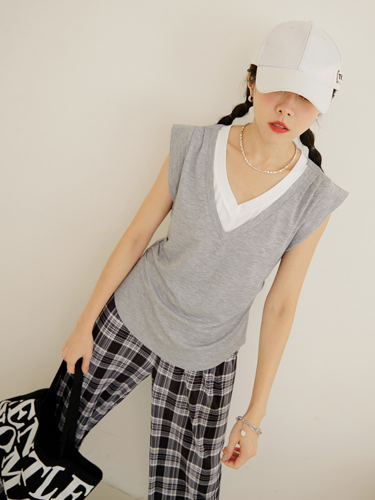 Layered V-Neck T-Shirt (2XL~3XL)