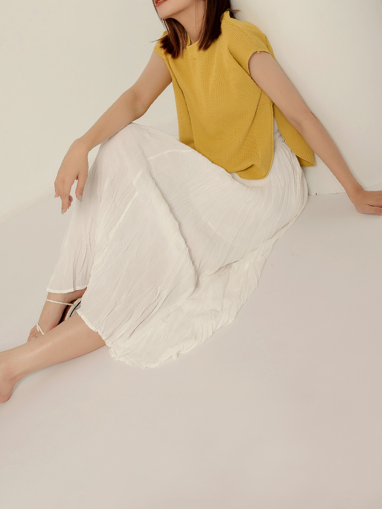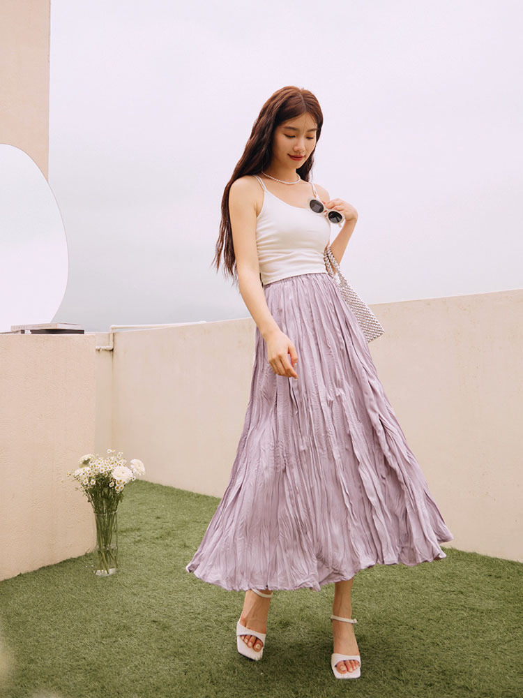 Product Feature: โ Features a flattering elasticated waist for a comfortable fit. โ Crafted from on-trend, textured pleated fabric. โ Designed with a lightweight, flowing silhouette for a breezy feel. โ Fully lined for added comfort.