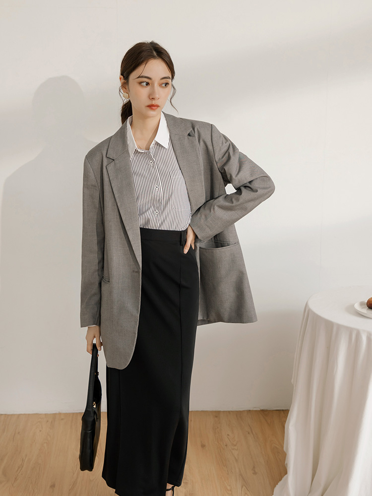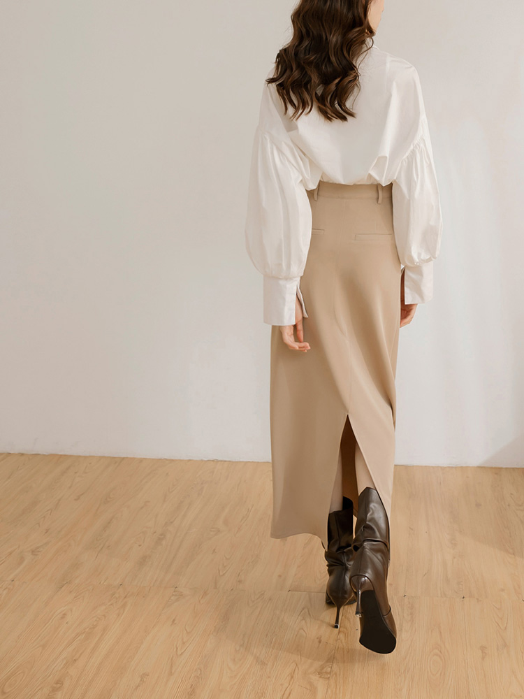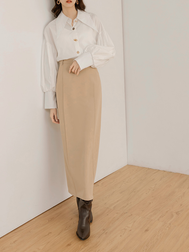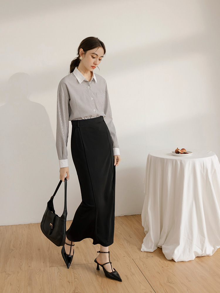 Product Feature: โ Crafted from crease-resistant fabric for easy care โ Features a figure-flattering design with decorative bone lines โ Includes a split hem for added movement and a touch of allure โ Equipped with a side zip for easy wear