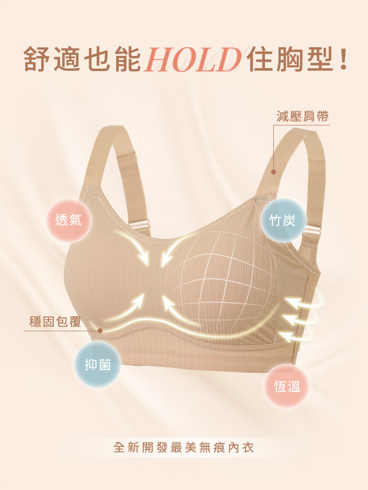 Product Feature: โ Features bamboo charcoal fibre lining for antibacterial properties and odour control โ Designed with a special inner layer for gentle lift and support โ High-side coverage to contain and stabilise underarm bulges โ 2.5cm wide straps for reduced shoulder pressure โ Includes removable pads with separate openings