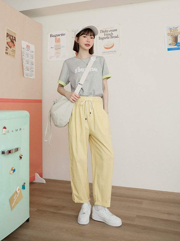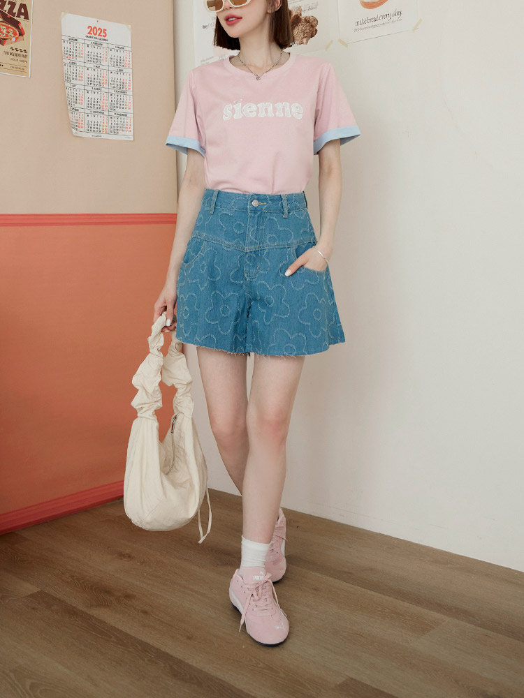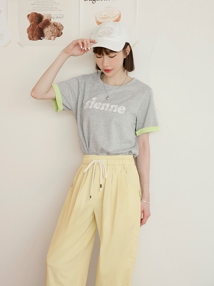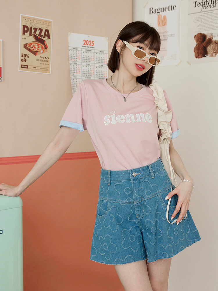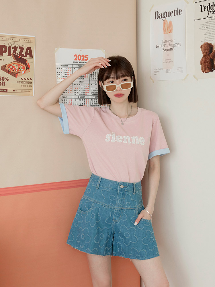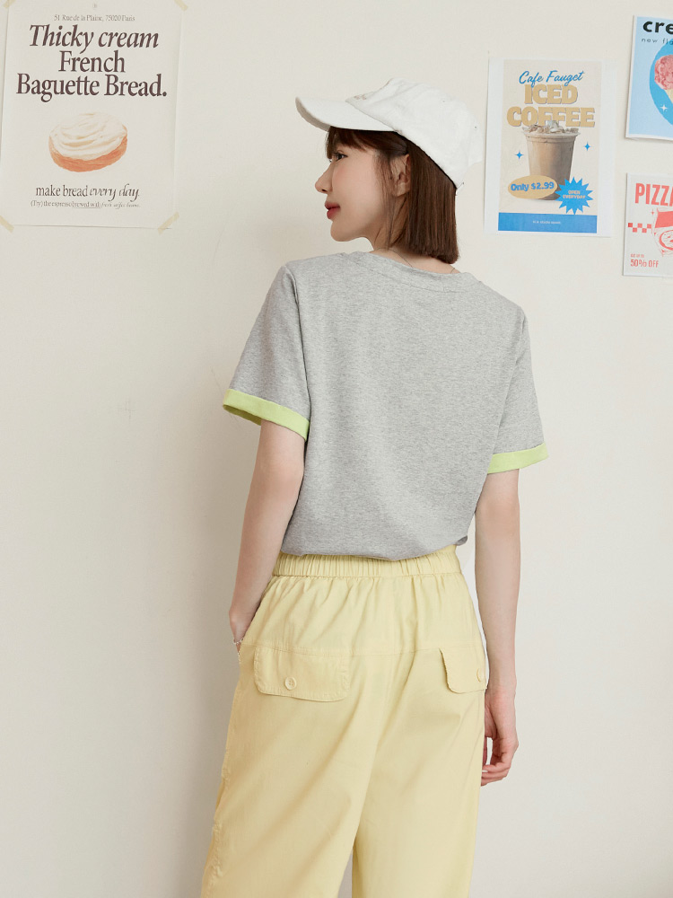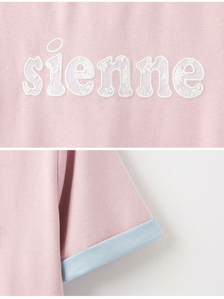 Product Feature: โ Features delicate lace letter detailing. โ Colour-block turn-up sleeves add a pop of style. โ Made from a stretchy blend of cotton, polyester and elastane for a comfortable fit.