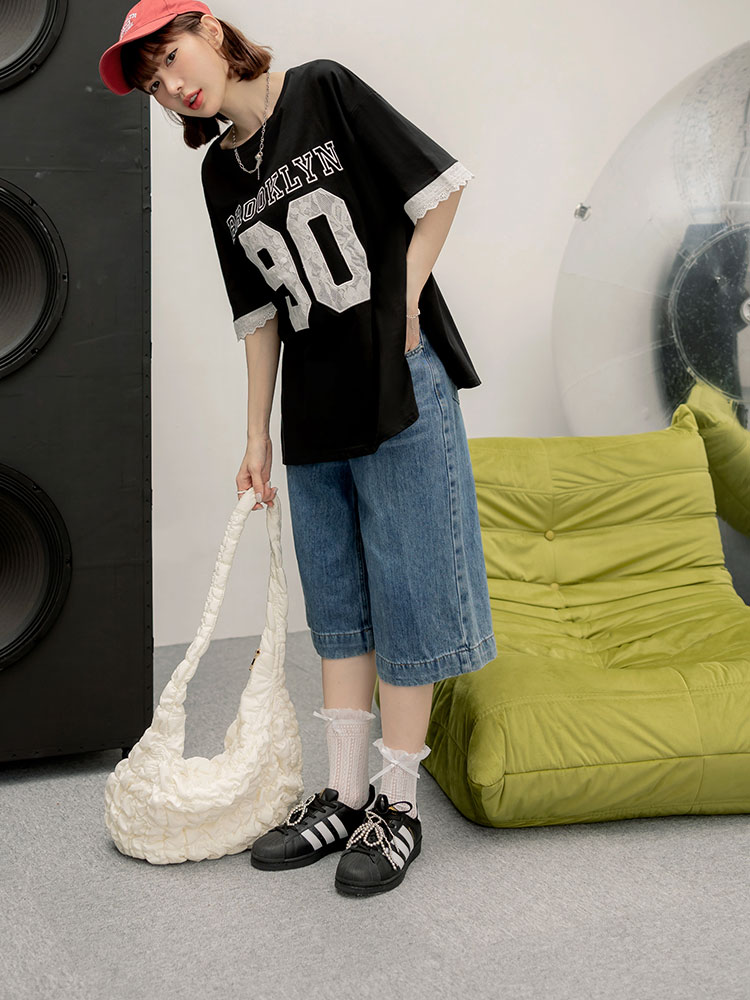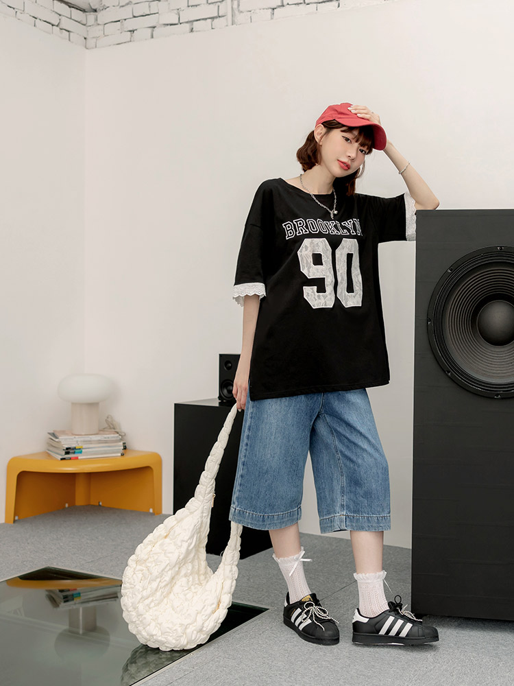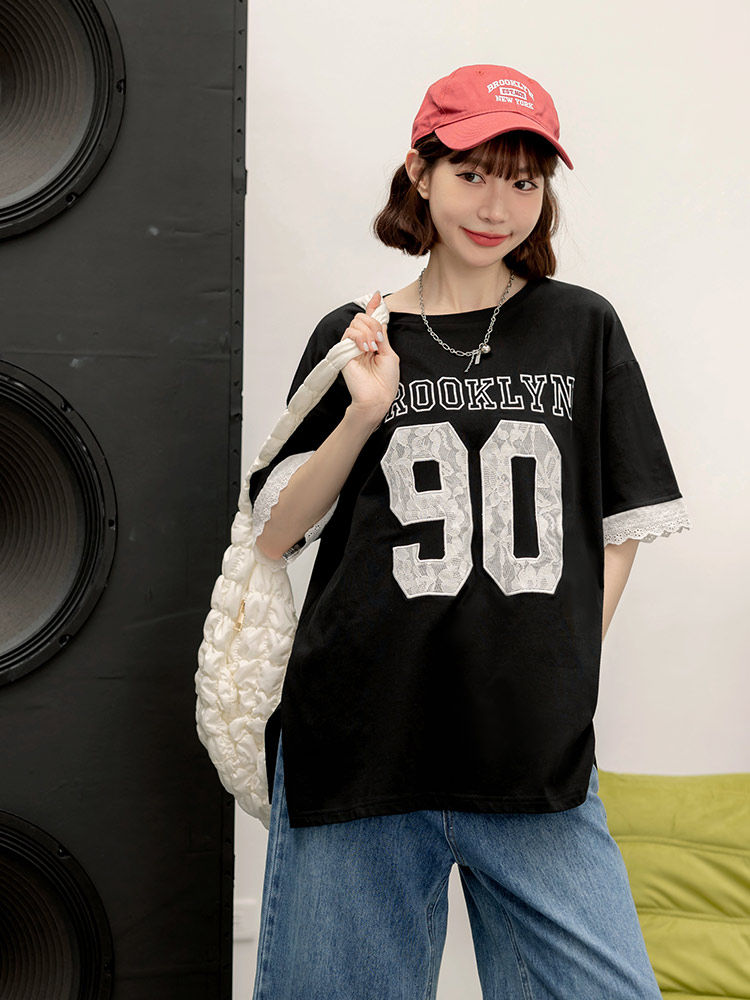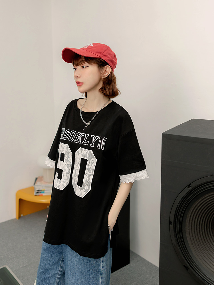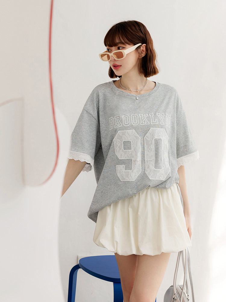 Product Feature: โ Crafted from soft, skin-friendly cotton. โ Features delicate lace applique detailing on the sleeves. โ Designed with a relaxed, loose-fit for a flattering silhouette.