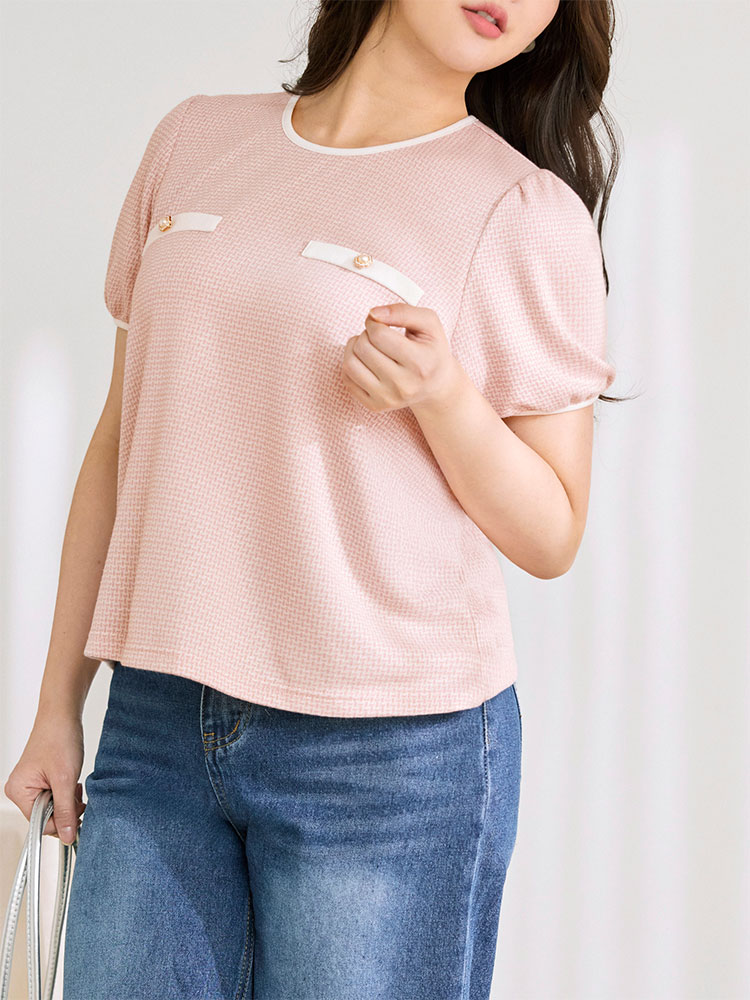 Main Fabric: 65% Polyester, 35% Rayon, with stretch. Secondary Fabric: 95% Cotton, 5% Elastane, with stretch.