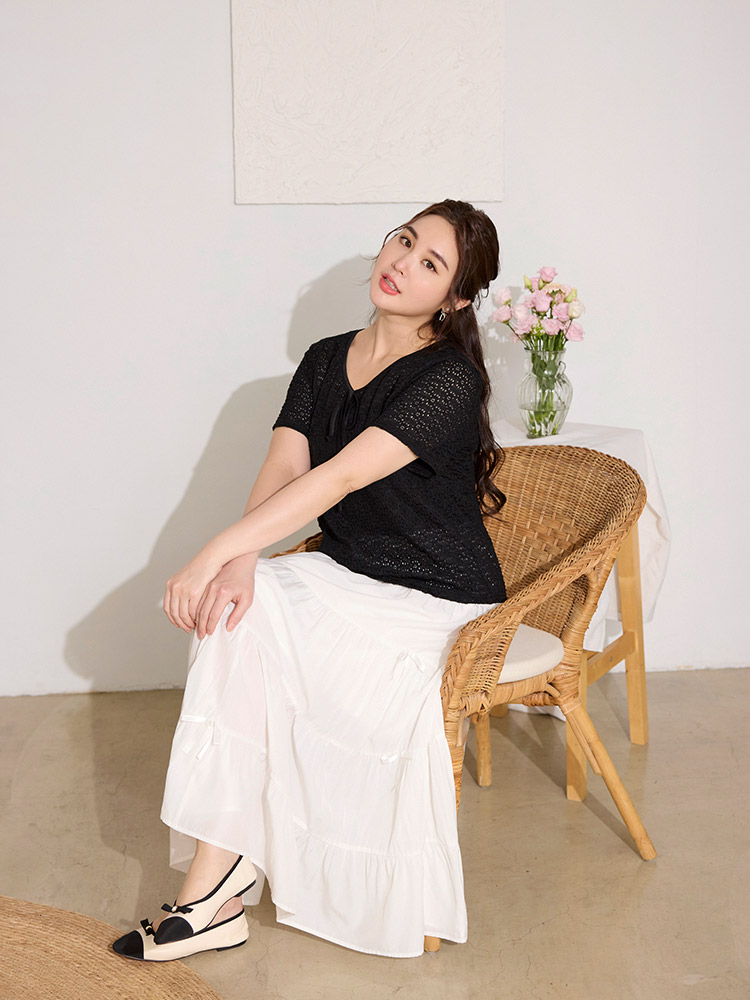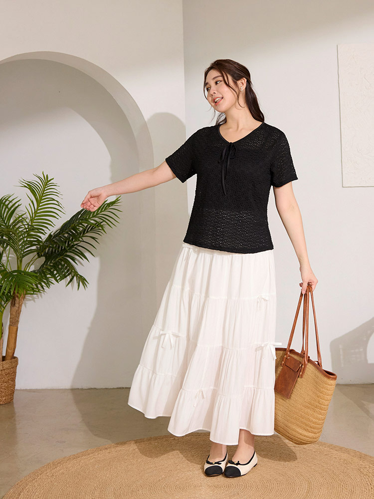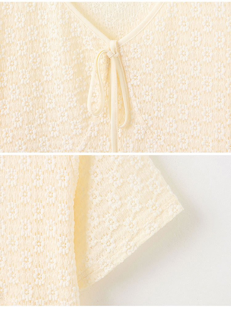 Product Feature: โ Features a stylish tie-up neckline โ Made from high-stretch fabric with a subtle textured finish โ Designed with a semi-sheer effect for a modern look โ Adds a touch of flair to your outfit