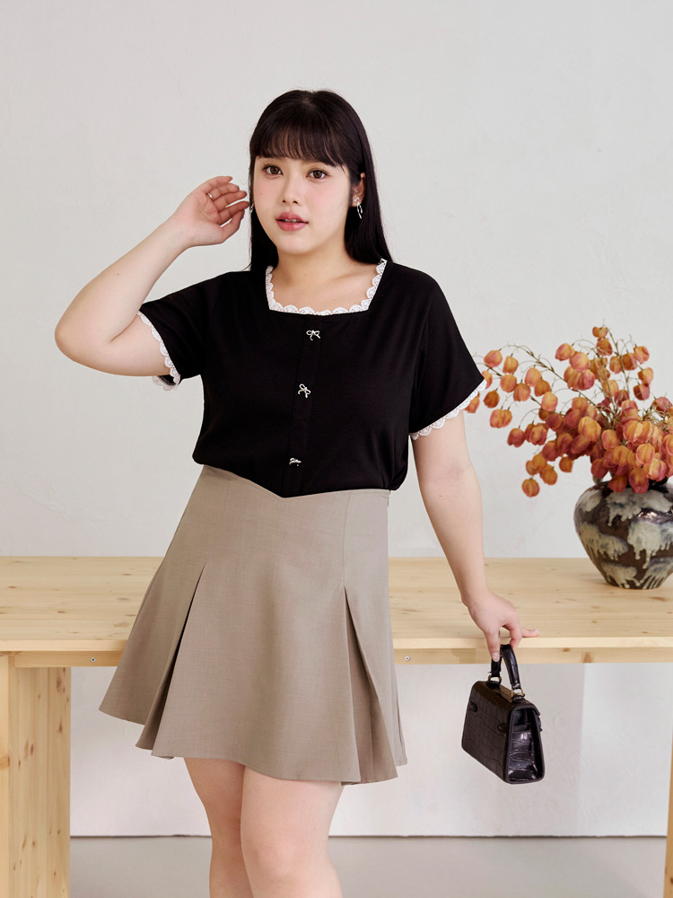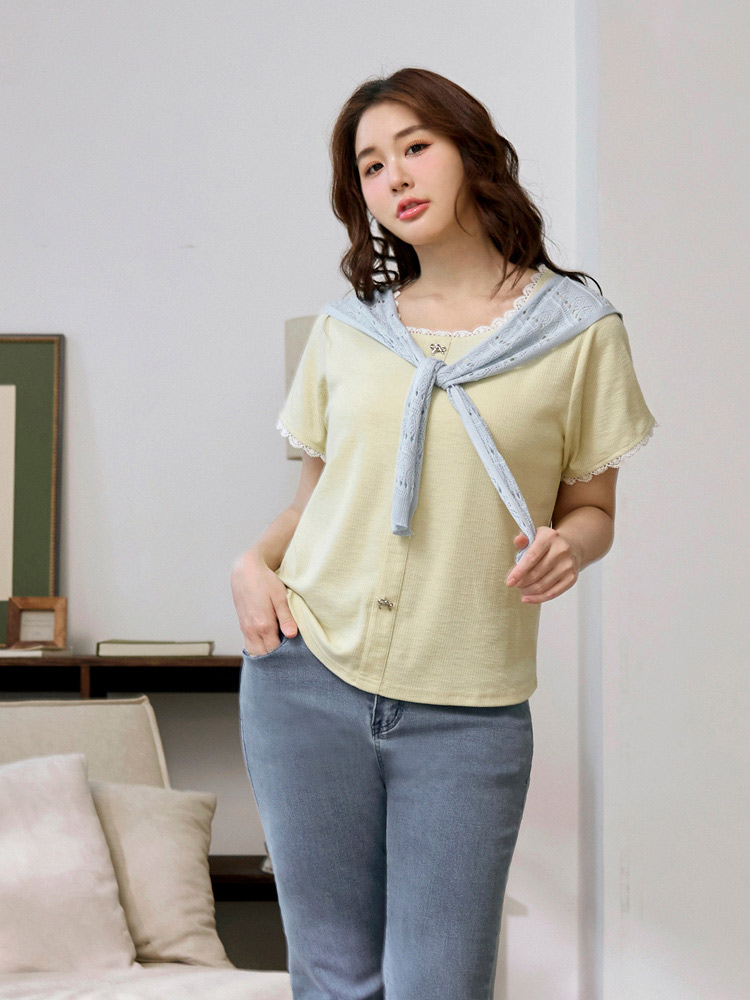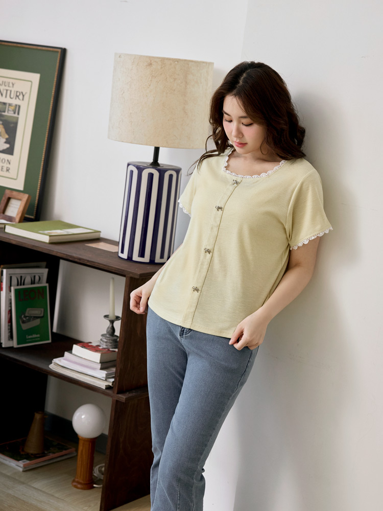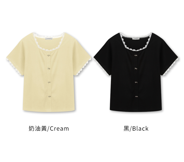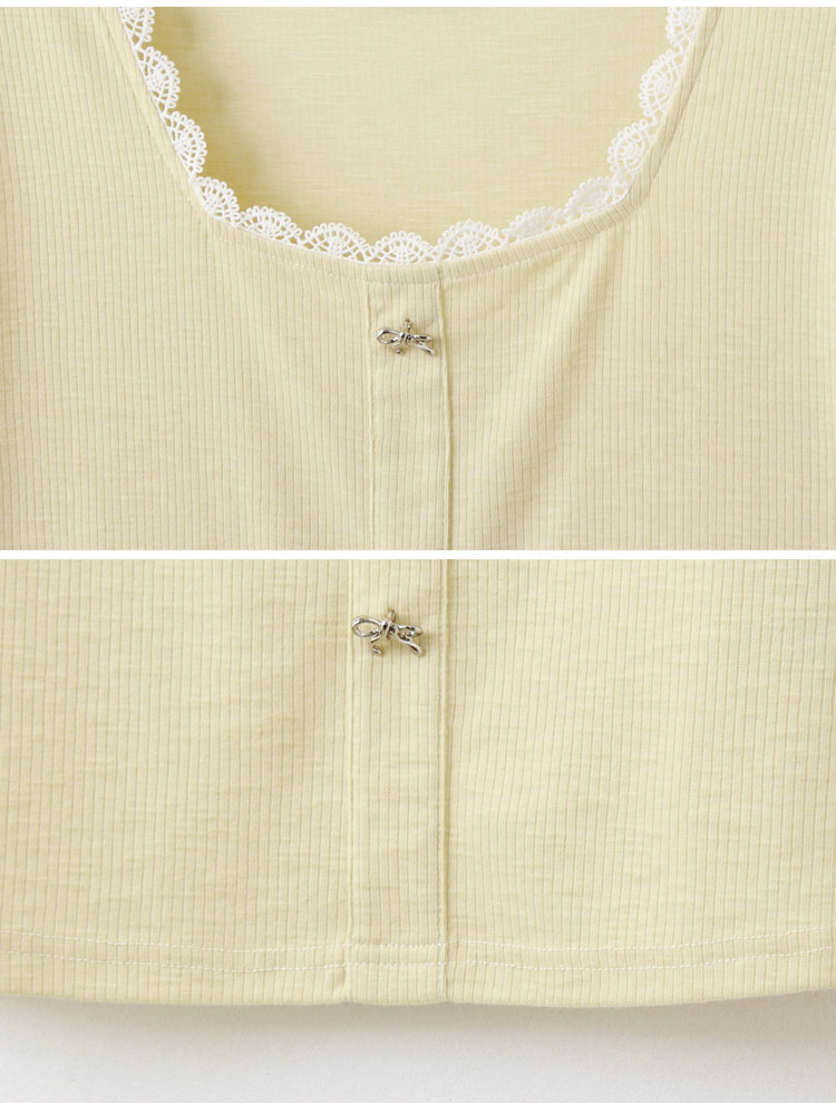 Product Feature: โ Features a flattering square neckline โ Made from soft, comfortable vertically-striped knit fabric โ Delicate bow detailing adds a touch of charm โ Designed with lace trim for a feminine finish