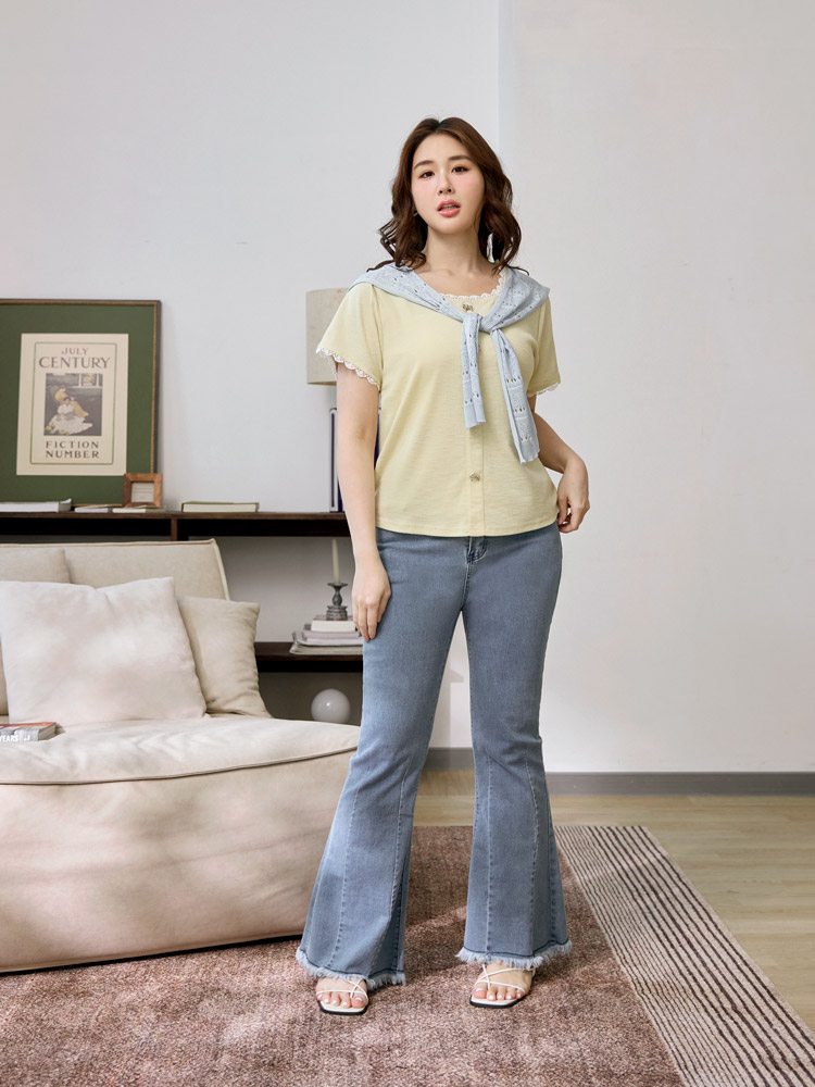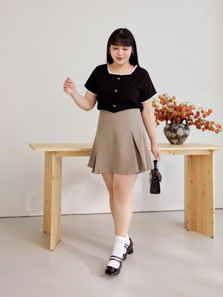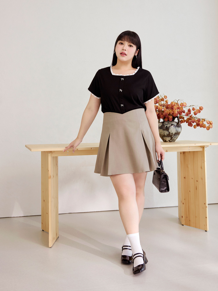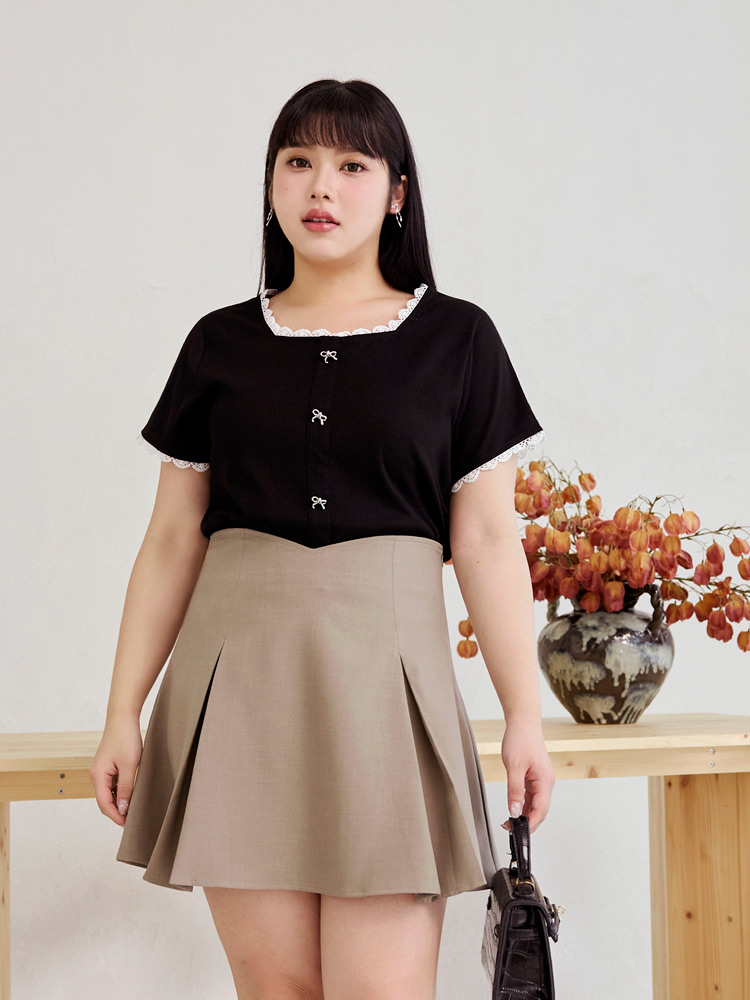 Product Feature: โ Features a flattering square neckline โ Made from soft, comfortable vertically-striped knit fabric โ Delicate bow detailing adds a touch of charm โ Designed with lace trim for a feminine finish