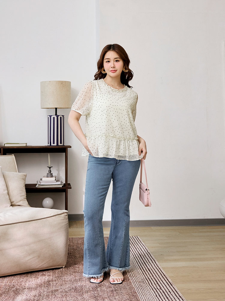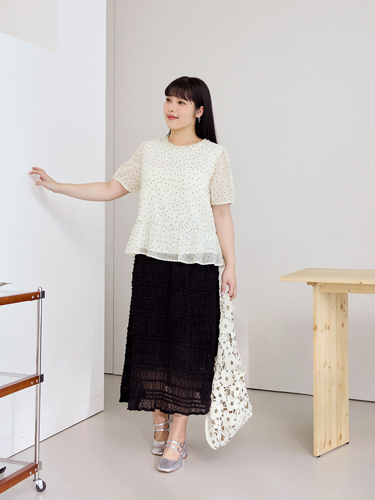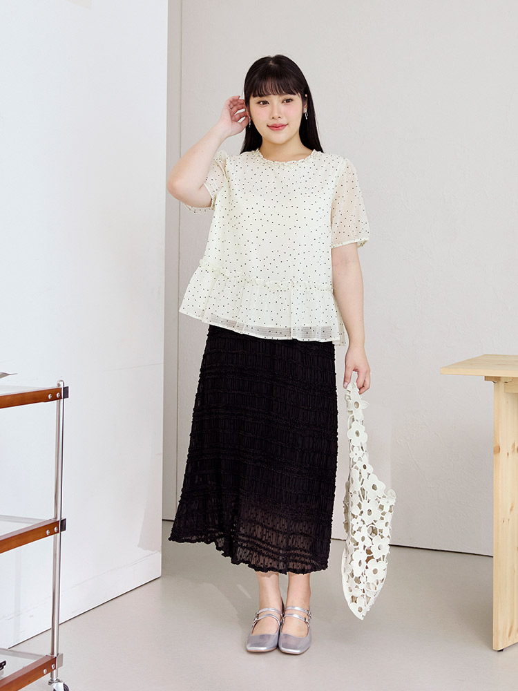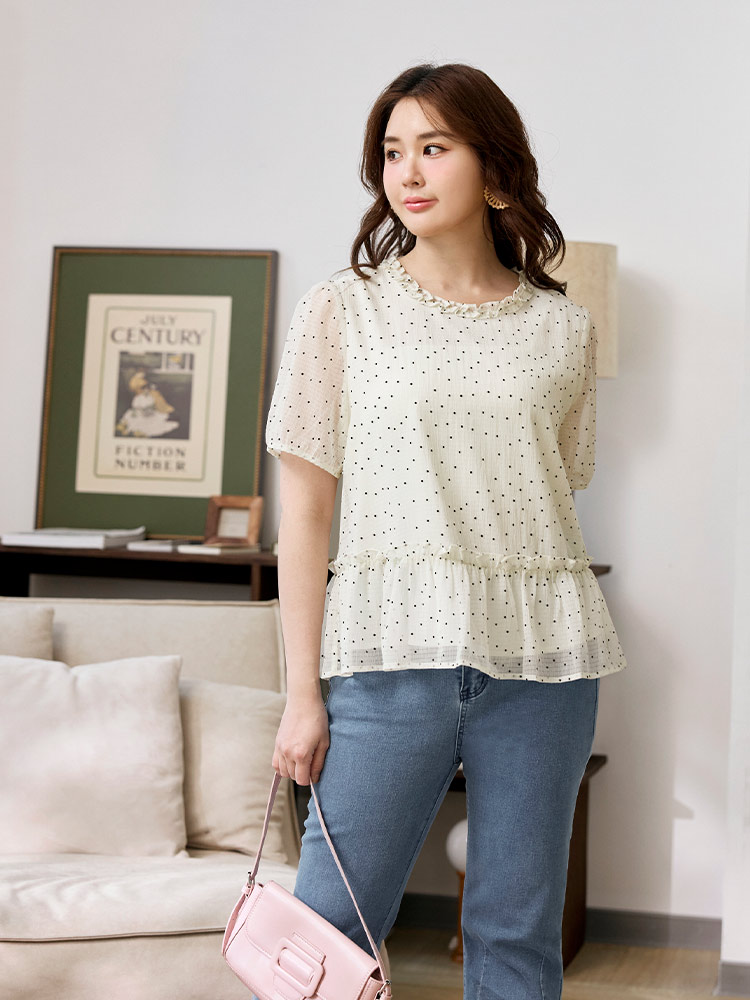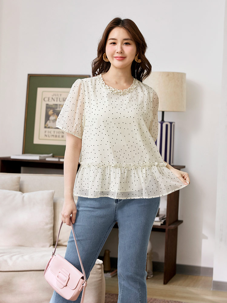 Product Feature: โ Features a charming dotted ruffle collar. โ Designed with flattering bubble sleeves. โ Cut in an A-line shape to enhance the silhouette. โ Includes a full lining for comfort and coverage.