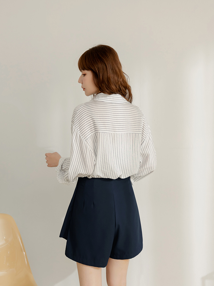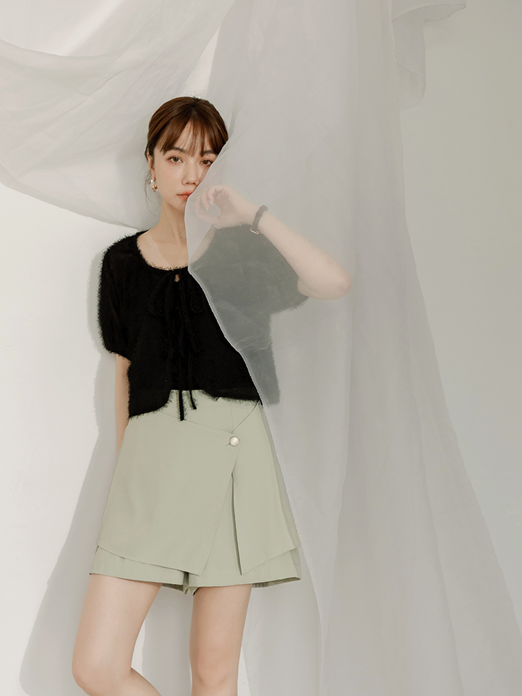 Product Feature: โ Crafted from smooth, skin-friendly fabric. โ Stylish metallic buttons add a touch of elegance. โ Features a flattering pleated skort design. โ Designed with a concealed side zip and inner lining for comfort.