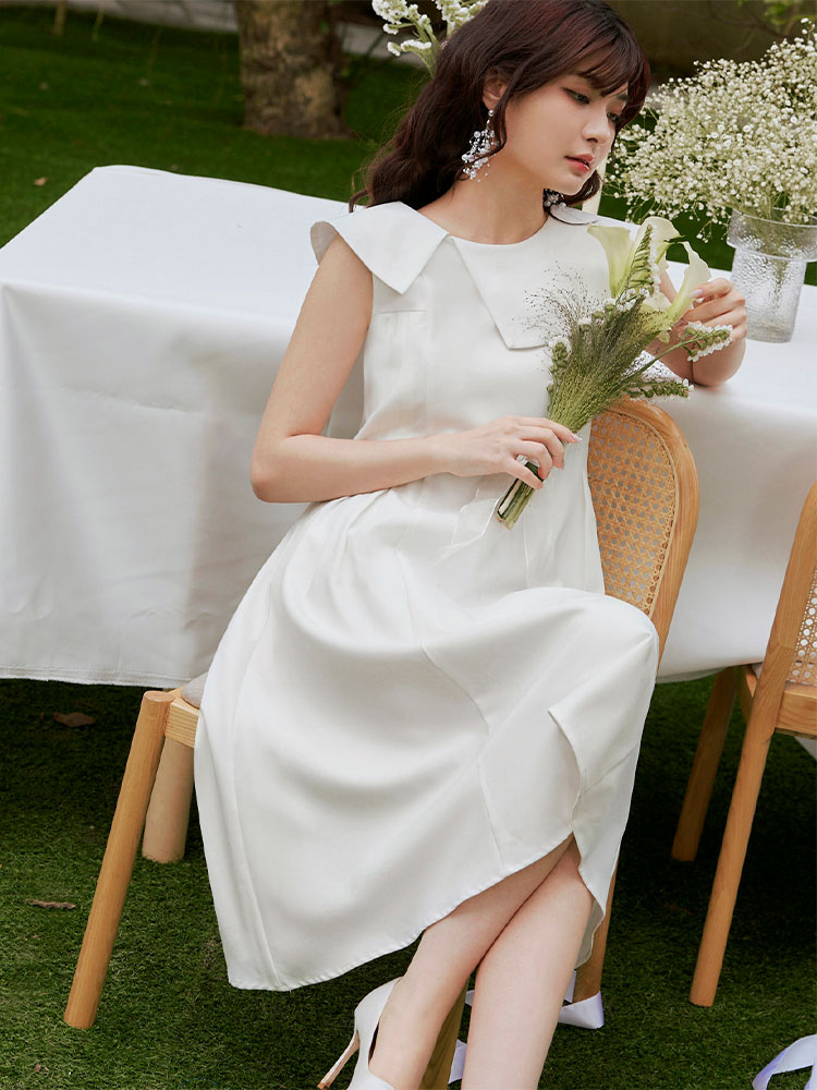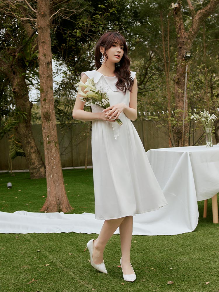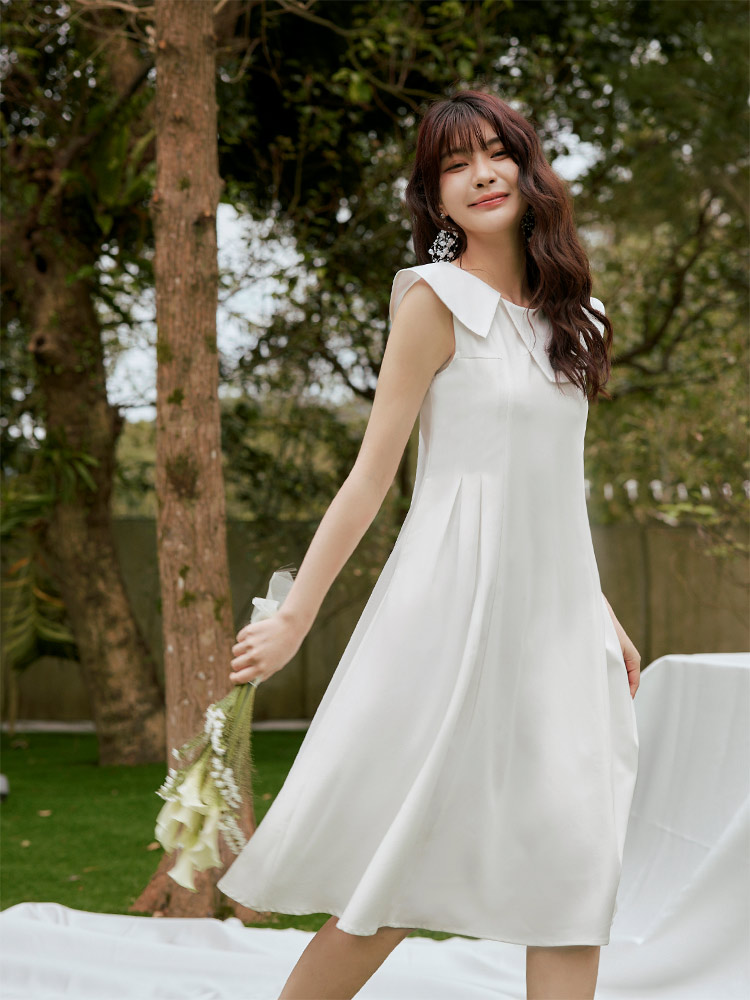 Product Feature: โ Crafted from smooth, flowing chiffon. โ Features a flattering asymmetrical collar design. โ Fully lined for a comfortable fit. โ Concealed rear zip. โ Side pleats accentuate the waist.