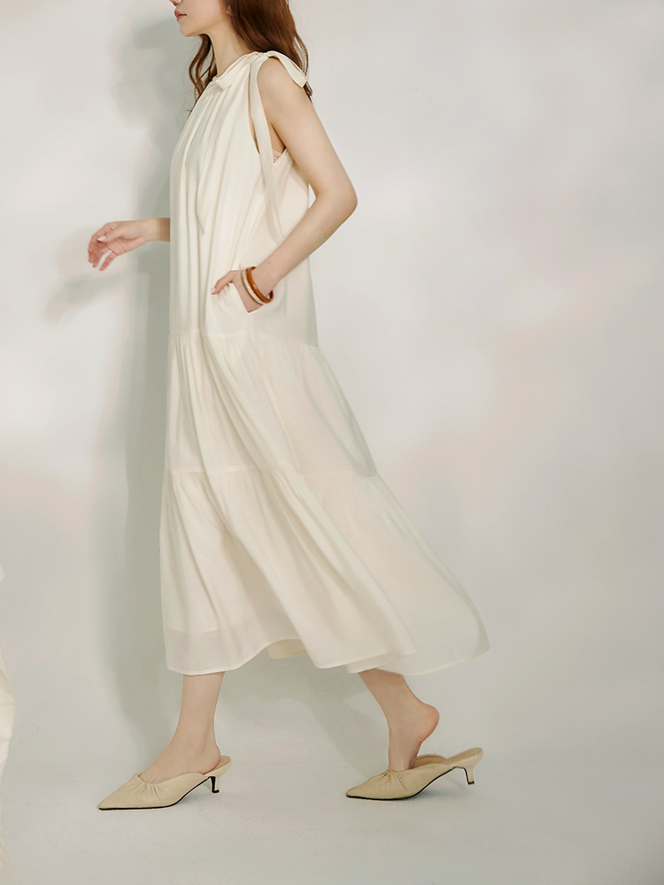 Product Feature: โ Features a soft, smooth fabric for ultimate comfort. โ Sleeveless design to flatter the neckline. โ Flowing, tiered skirt for a relaxed fit. โ Designed with pockets for added practicality. โ Fully lined for a superior finish.