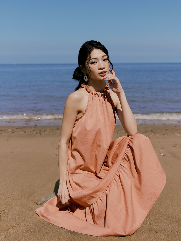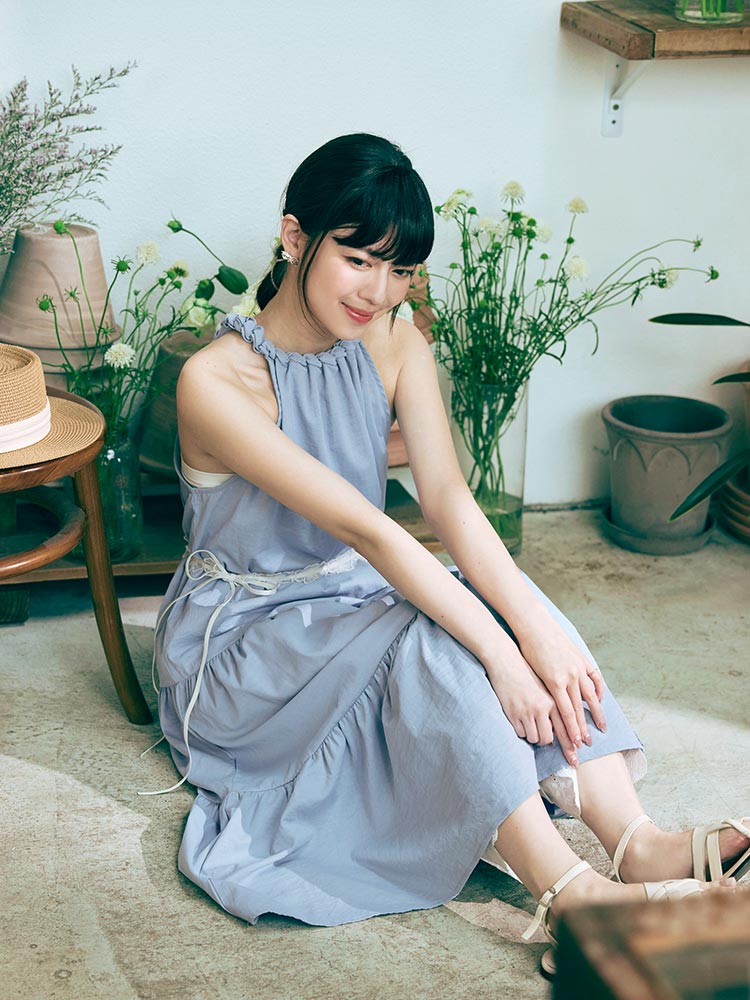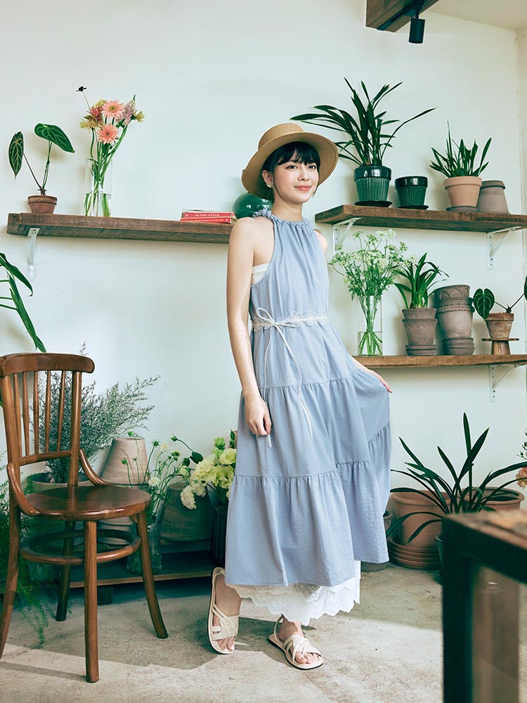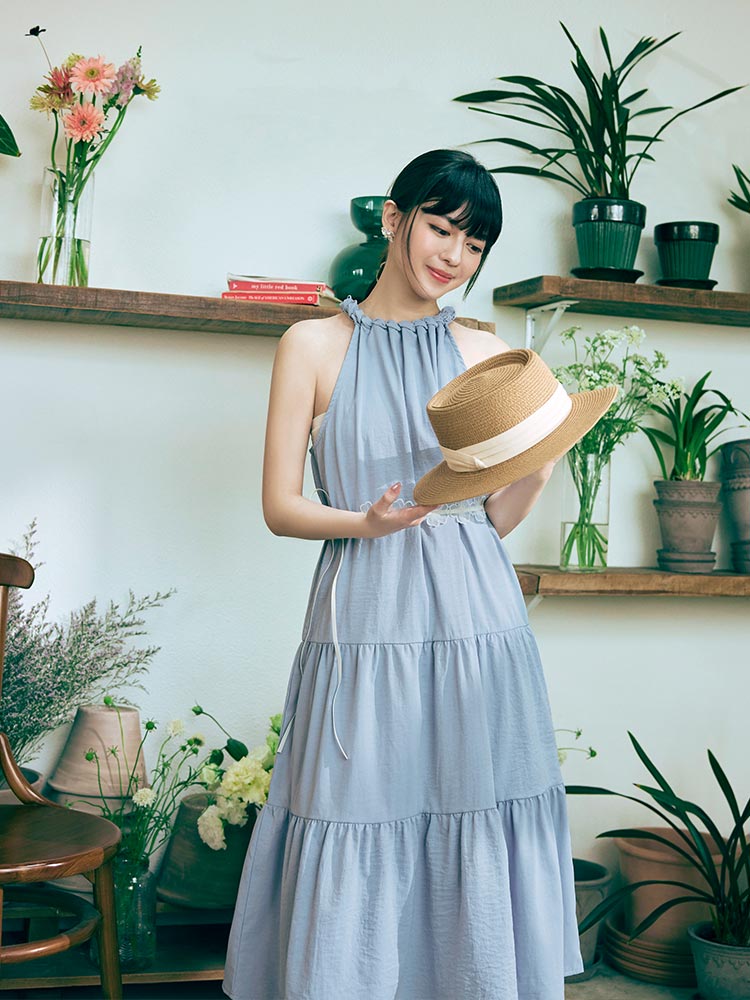 โ—† Elegant halter neckline with woven detailing