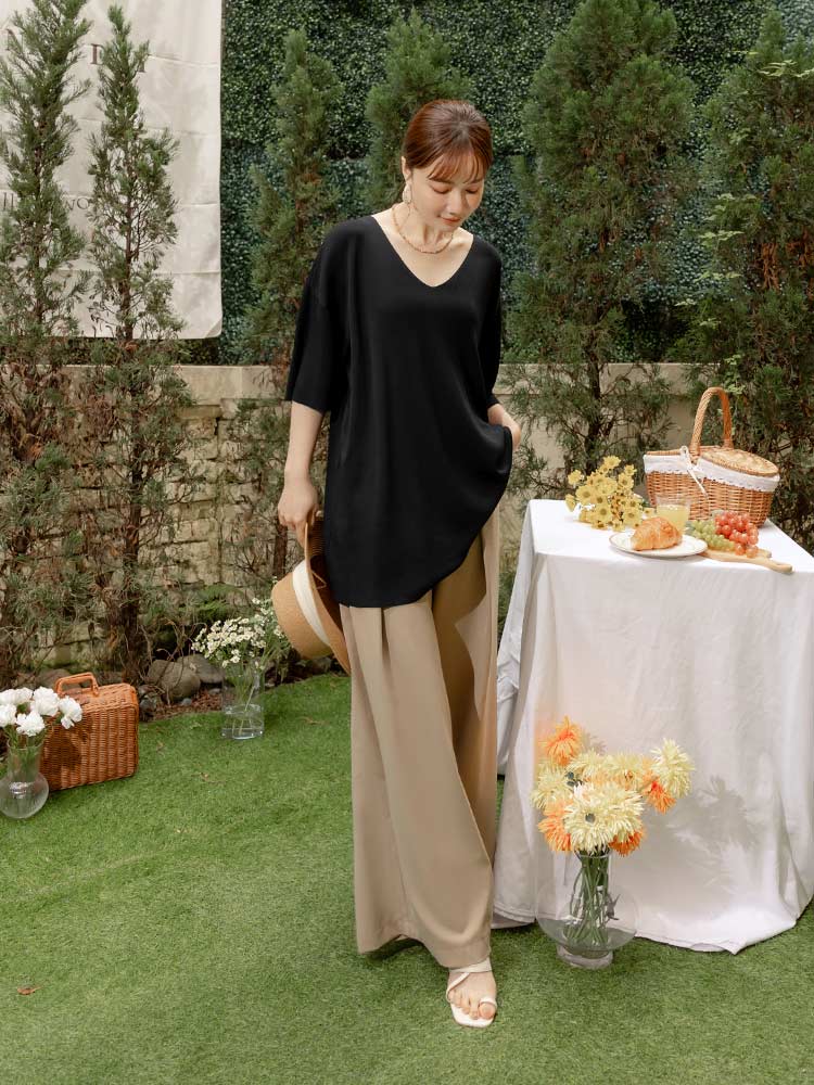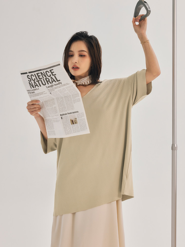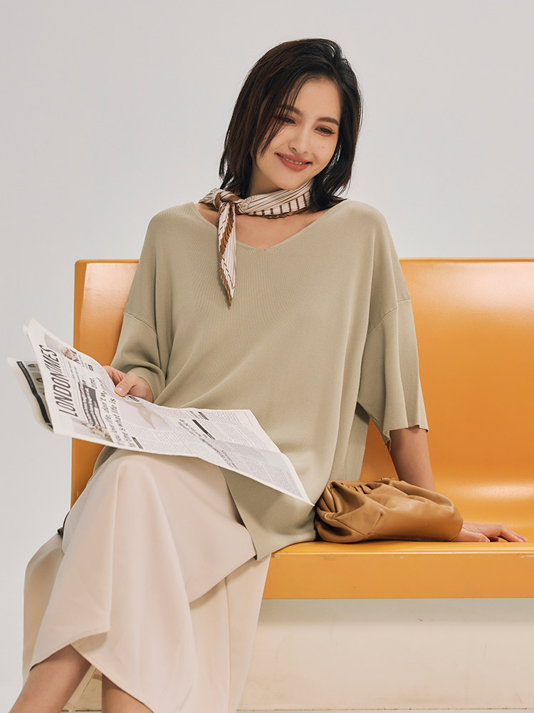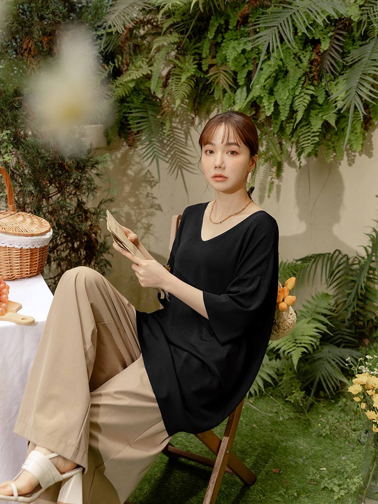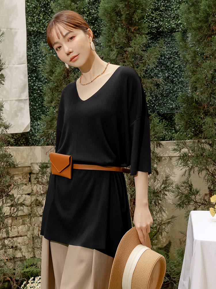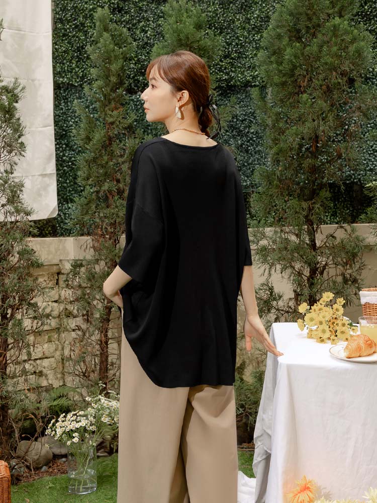 Product Feature: โ Crafted from breathable, cooling ice silk knit โ Relaxed, longline fit offers a comfortable silhouette โ Dropped shoulder sleeves gently cover the arms โ Ideal for sizes up to 2L