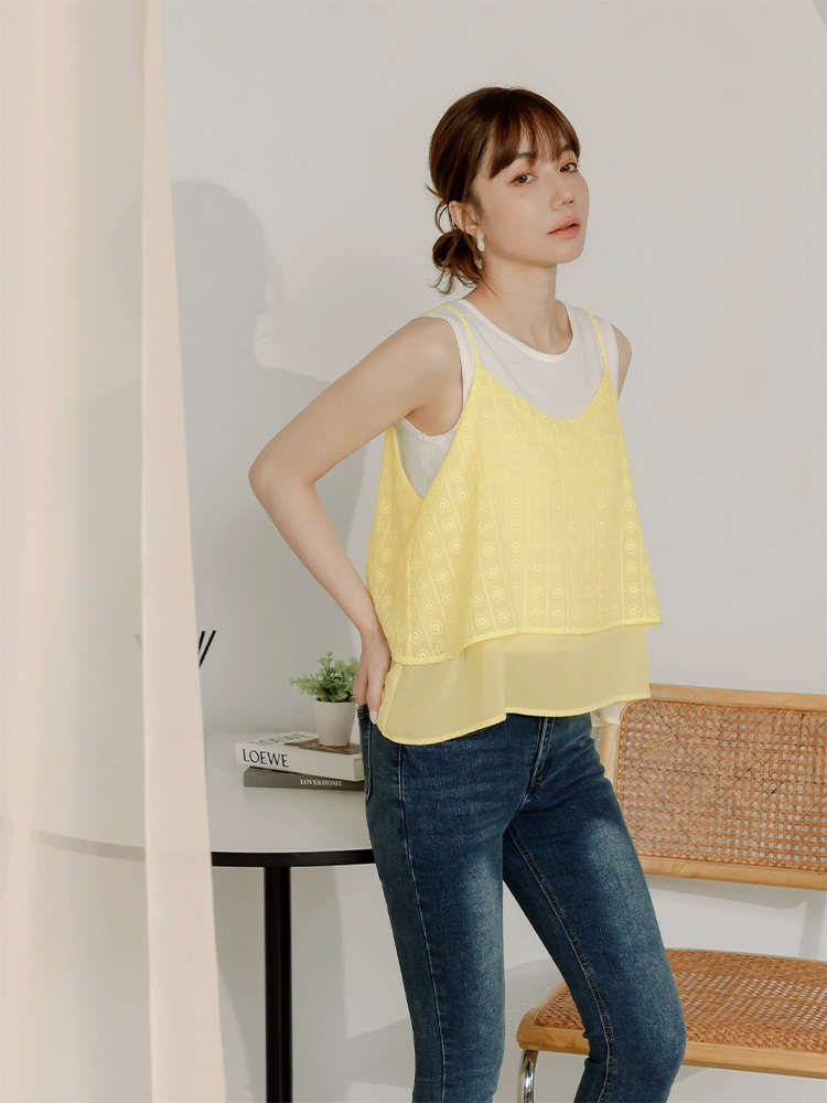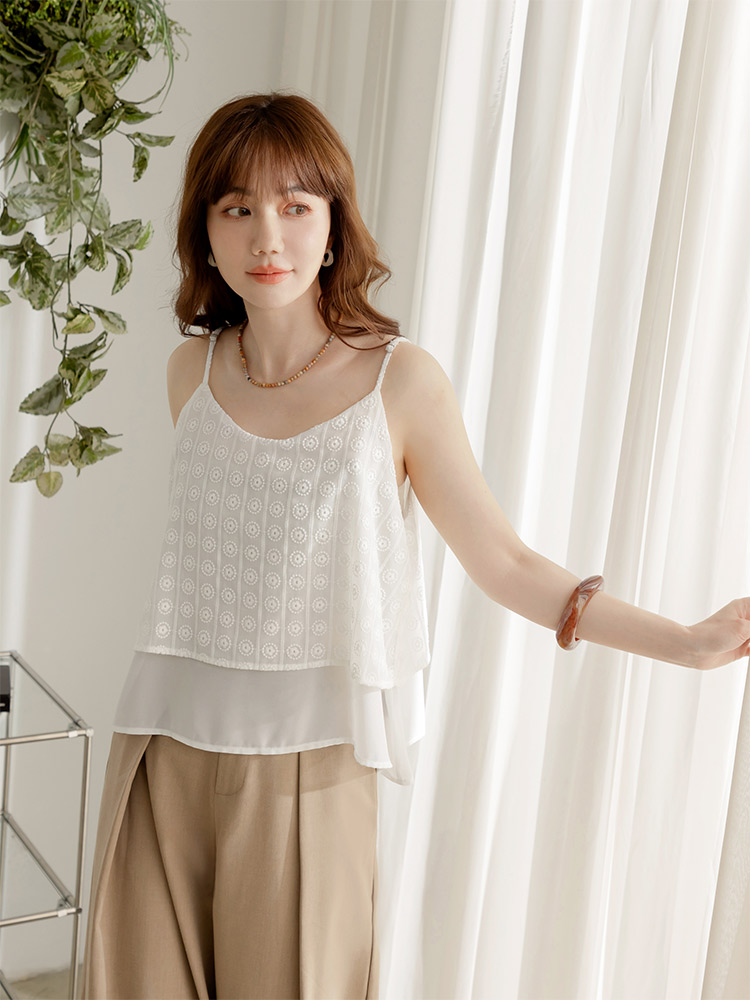 Embroidered Double-Layer Camisole Top