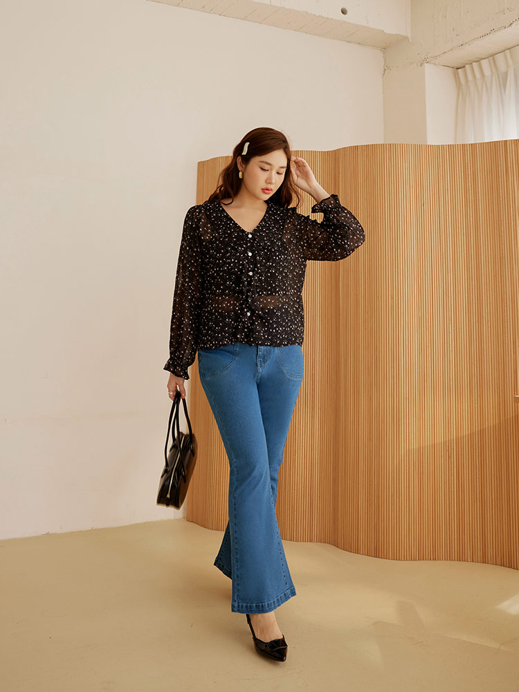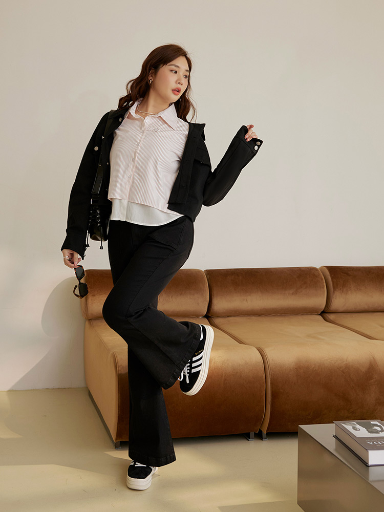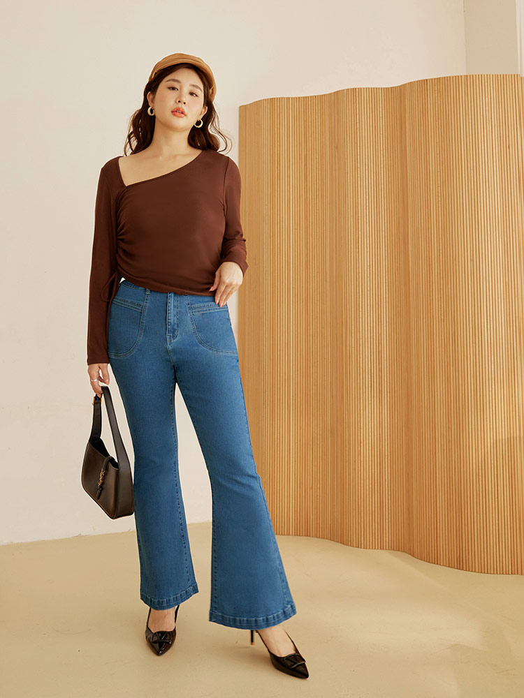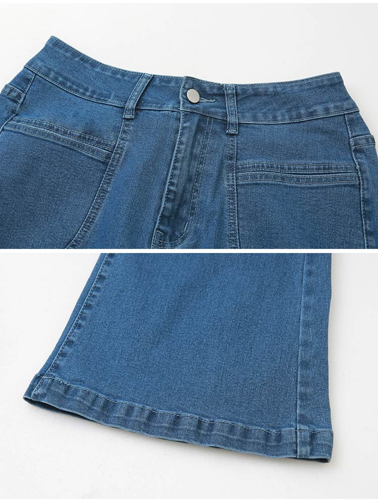Product Feature: โ Crafted from a soft, comfortable cotton denim blend. โ Features a flattering flare cut to enhance your silhouette. โ High-stretch fabric provides unrestricted movement. โ Designed with functional pockets and a button closure.