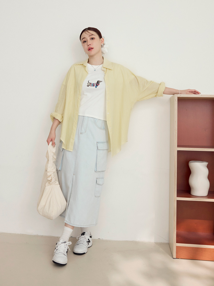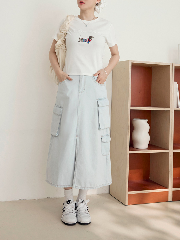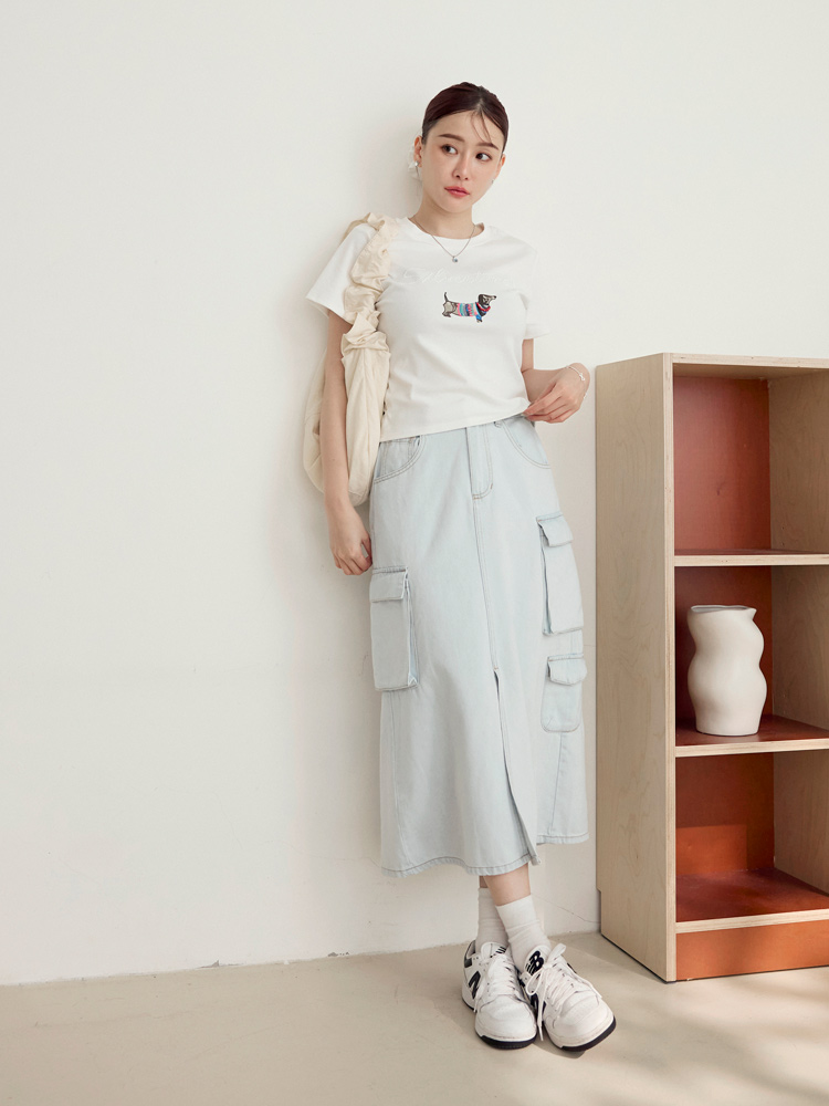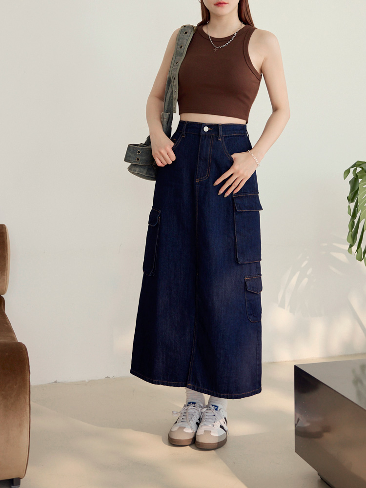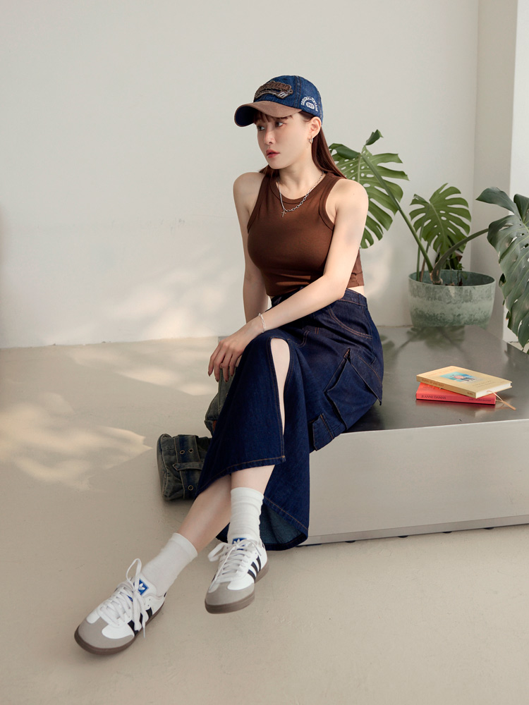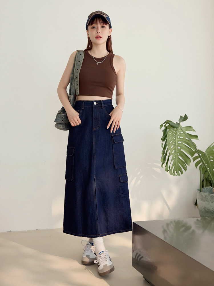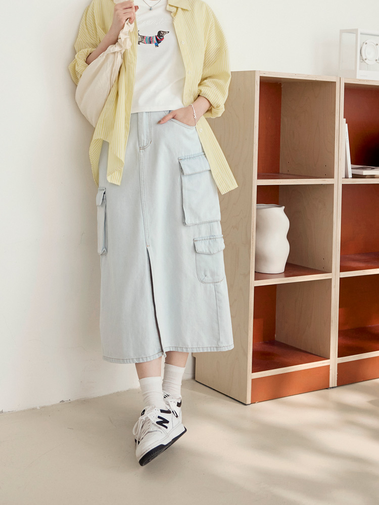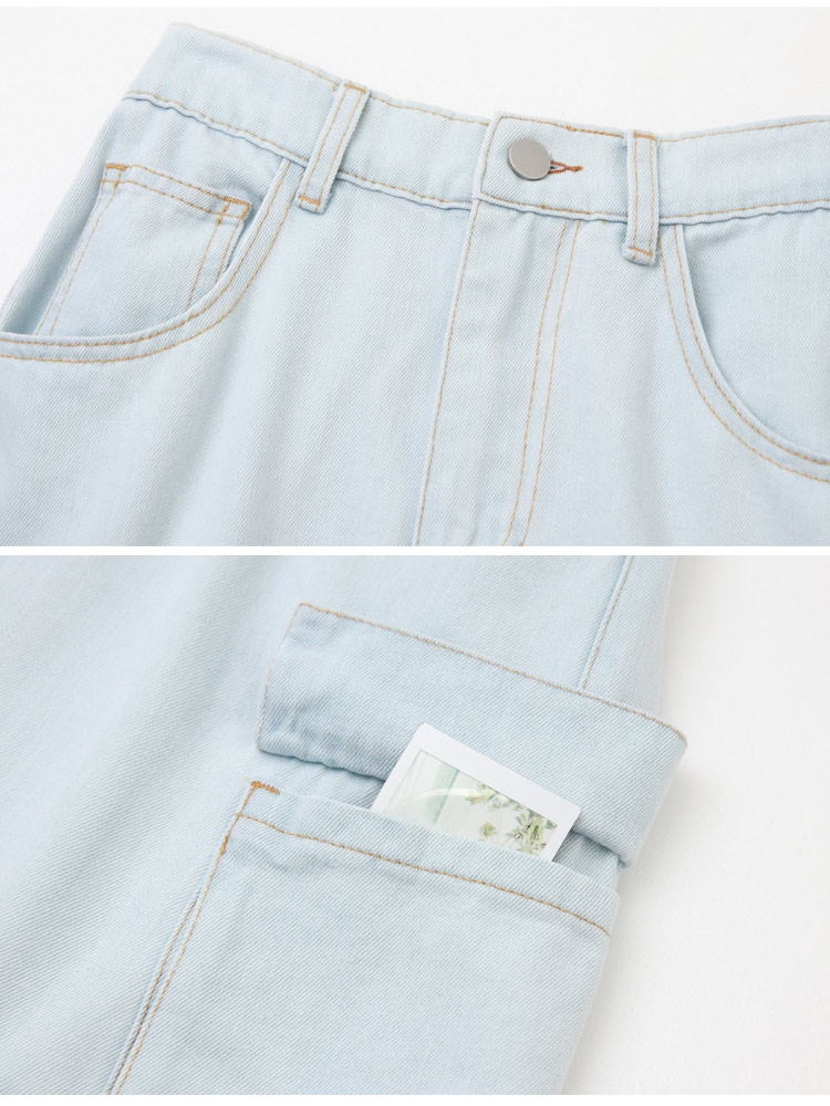 Product Feature: โ Crafted from soft, comfortable cotton denim. โ Features practical pockets and an elasticated waist. โ Flattering front slit to elongate the legs. โ Durable and easy to care for.