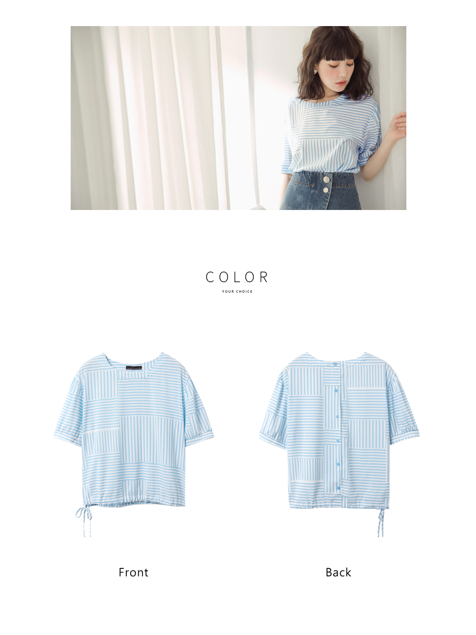 Product Feature: โ Features a stylish geometric print. โ Designed with a drawstring hem for a flattering fit. โ Designed with small puffy sleeves. โ Non-iron fabric for easy wear.