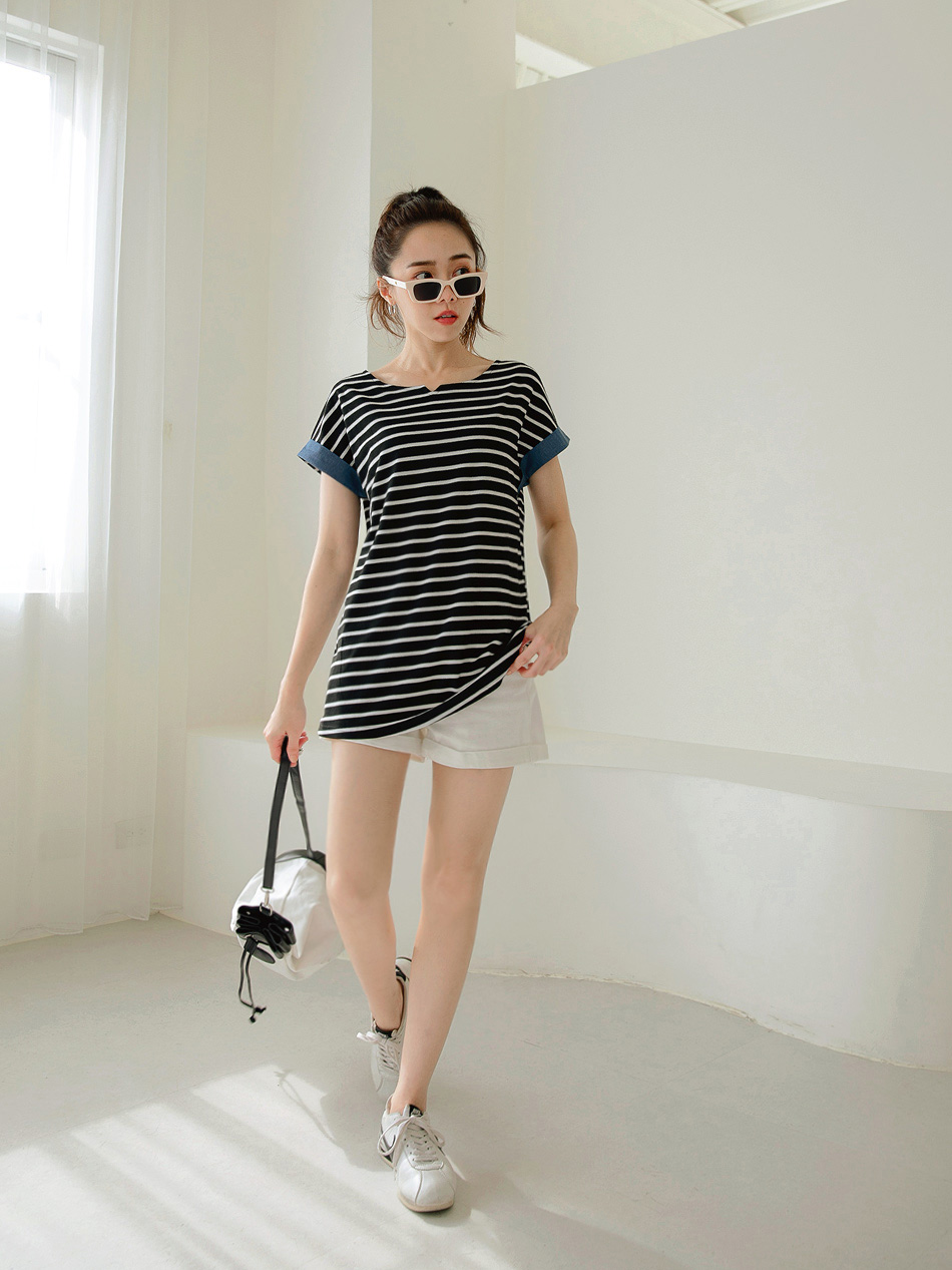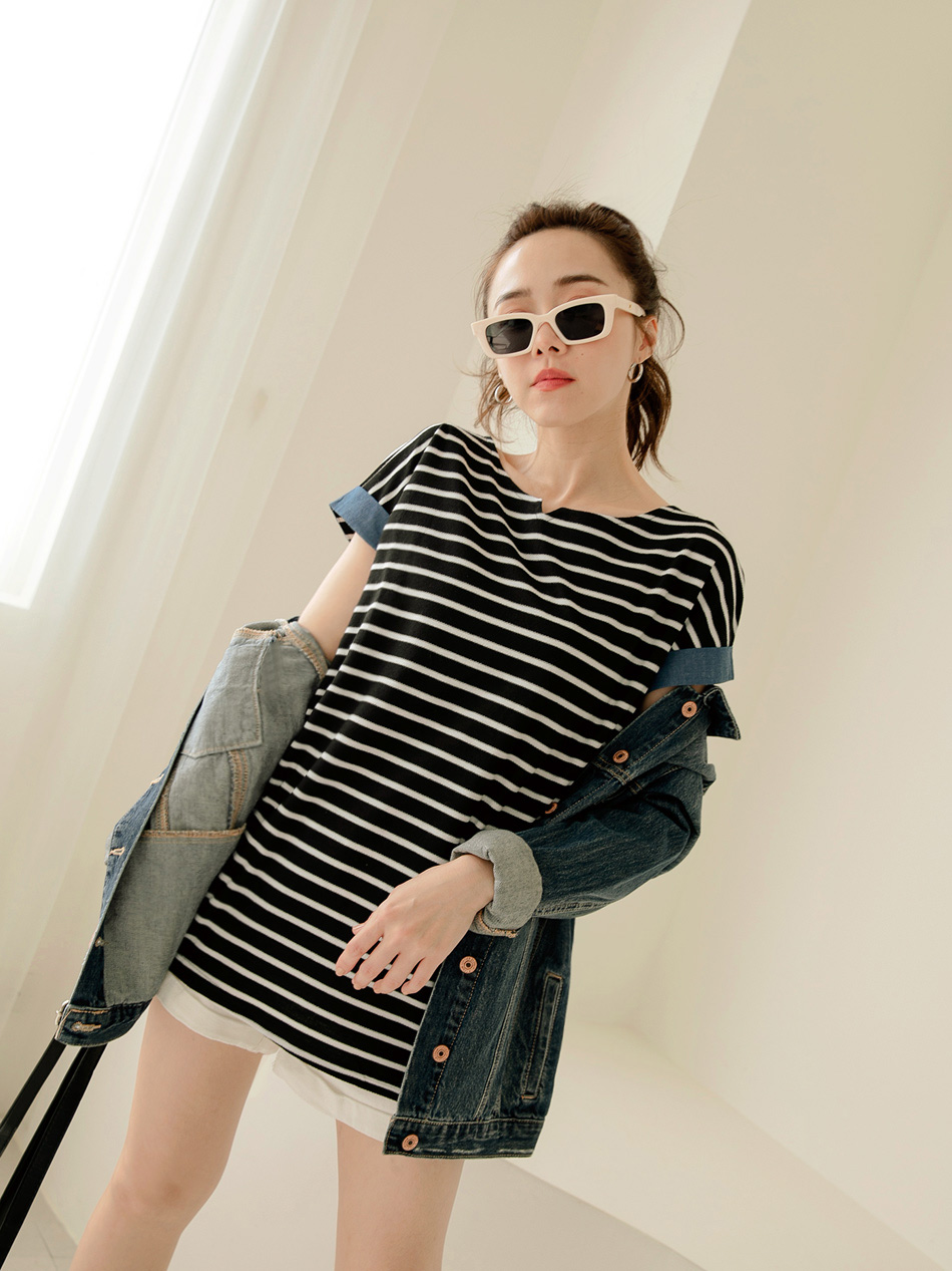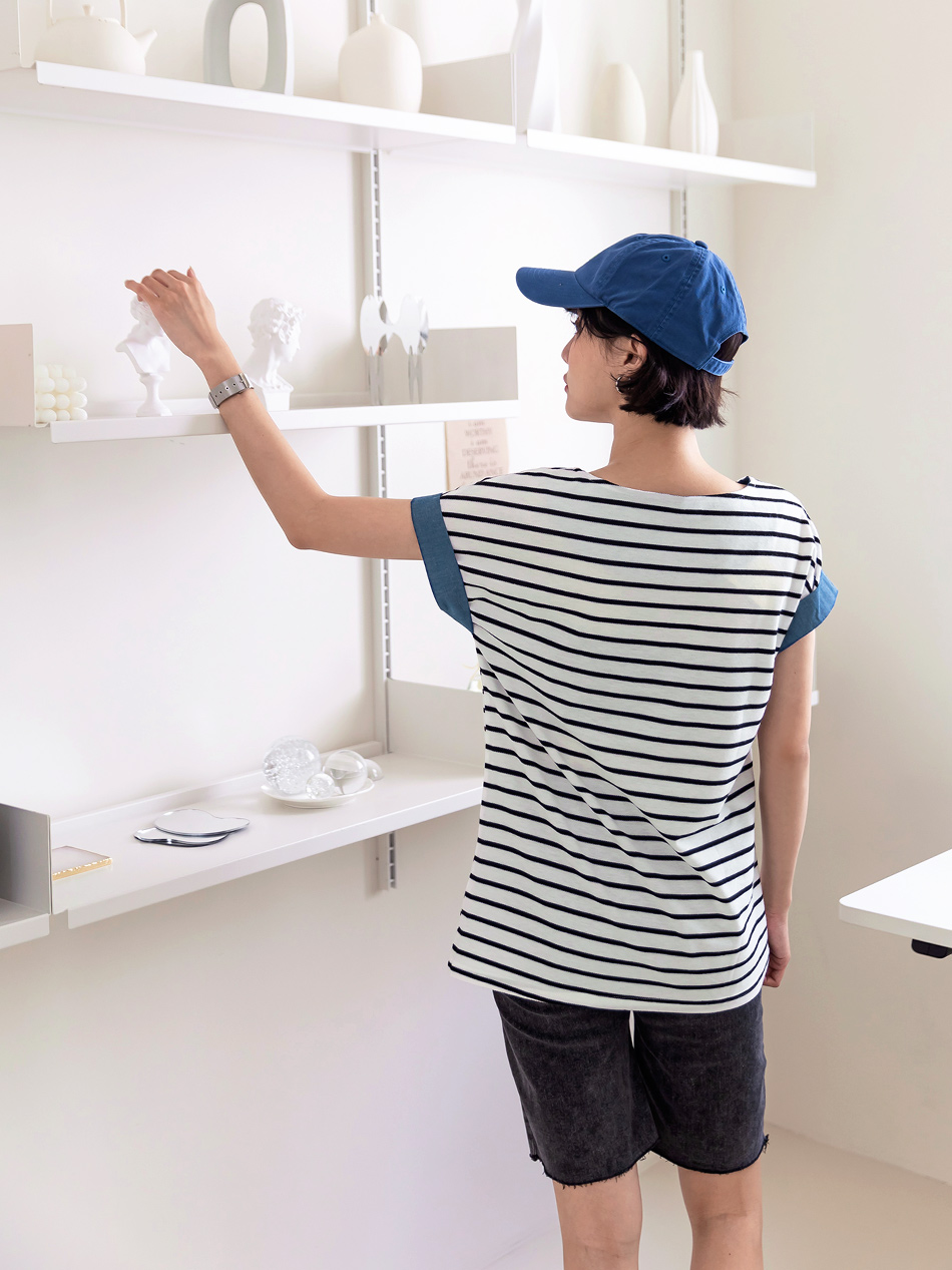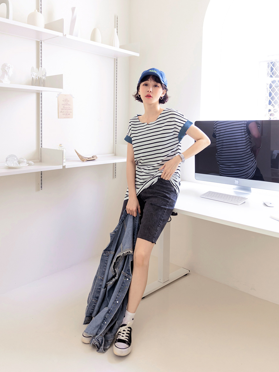 Product Feature: โ Crafted with textured striped fabric for visual appeal. โ Features a denim sleeve design for a touch of style. โ The fabric is intricately woven for a refined look.