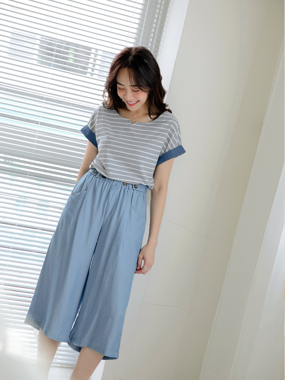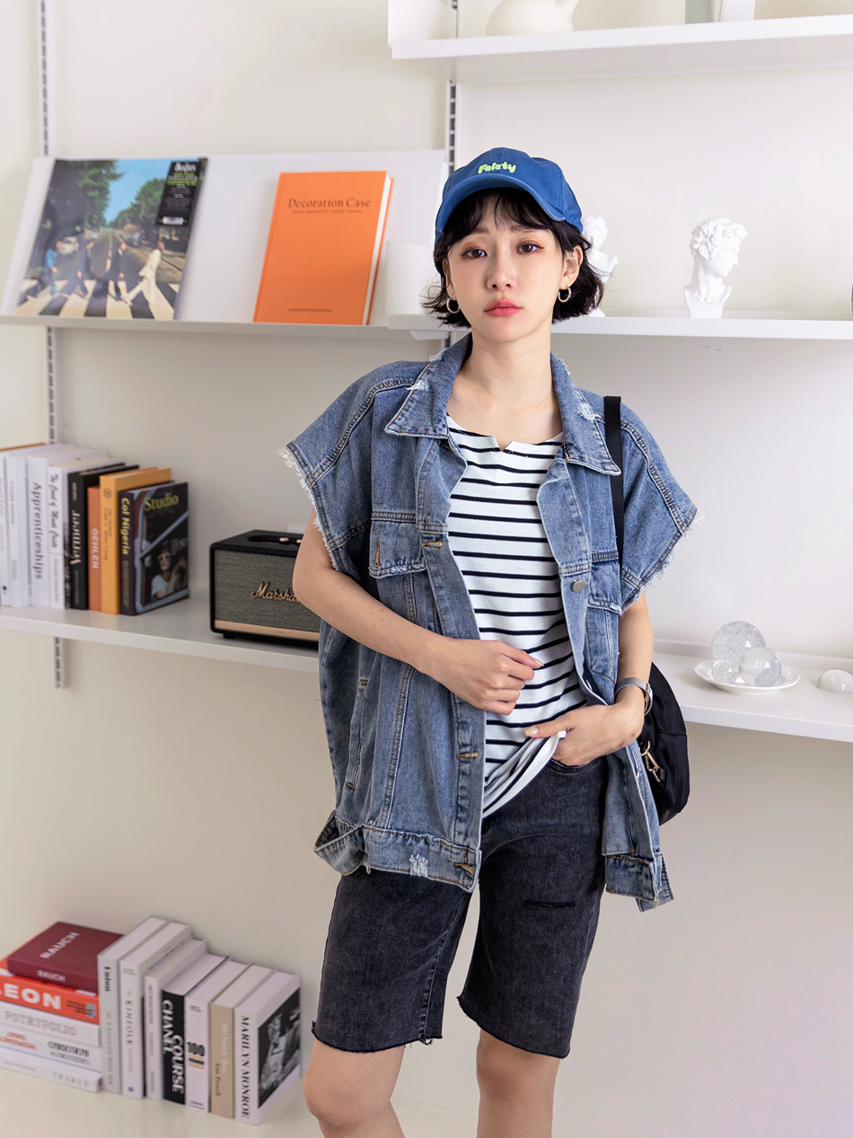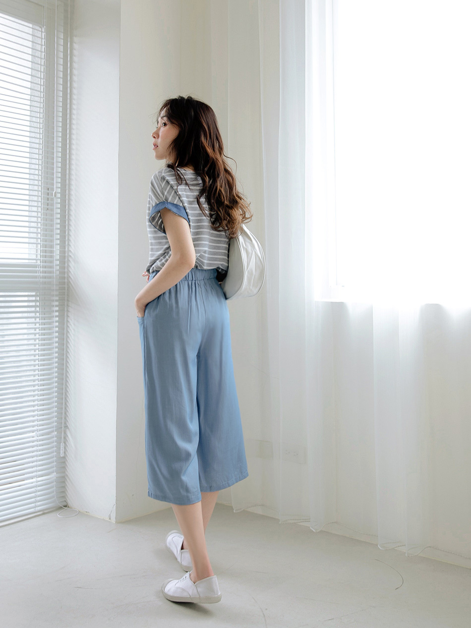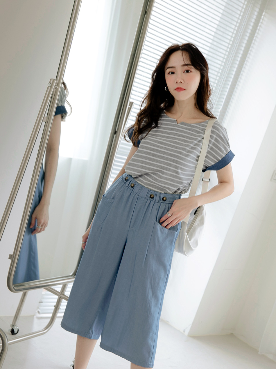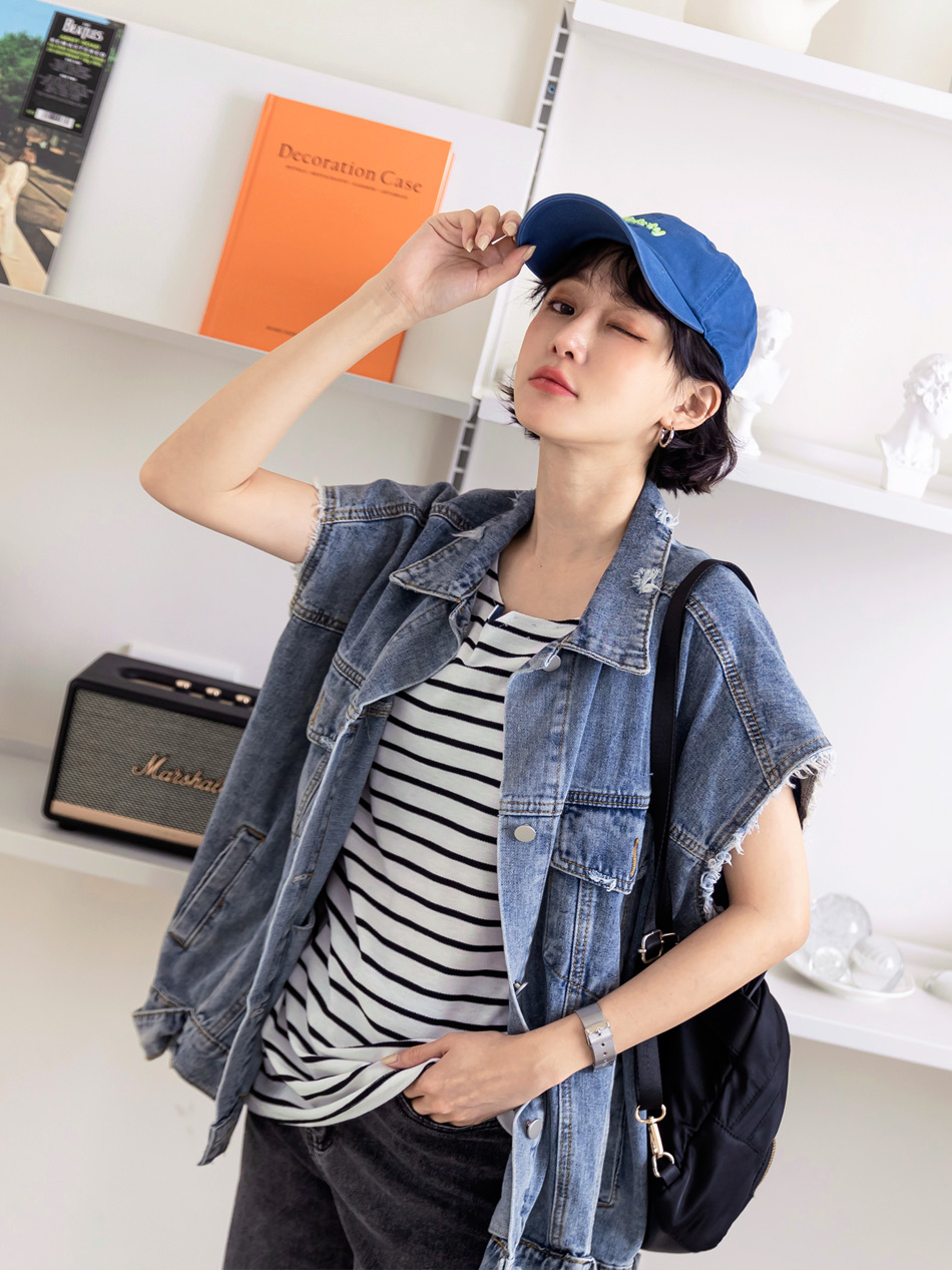 Product Feature: โ Crafted with textured striped fabric for visual appeal. โ Features a denim sleeve design for a touch of style. โ The fabric is intricately woven for a refined look.