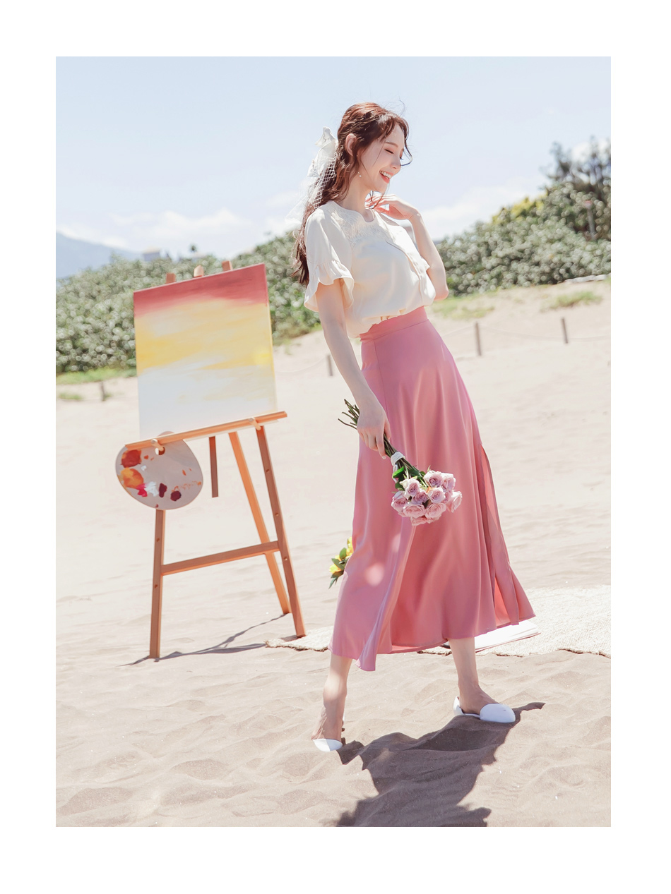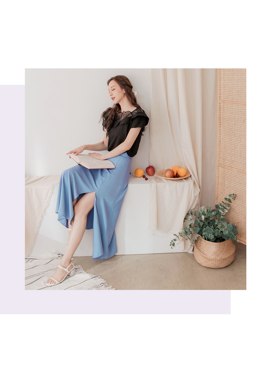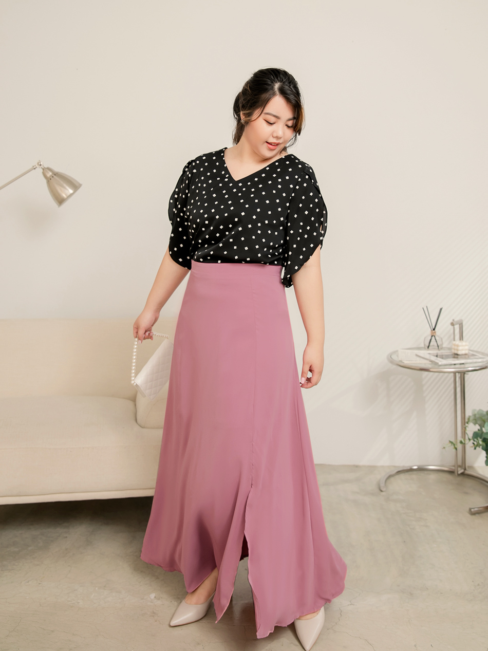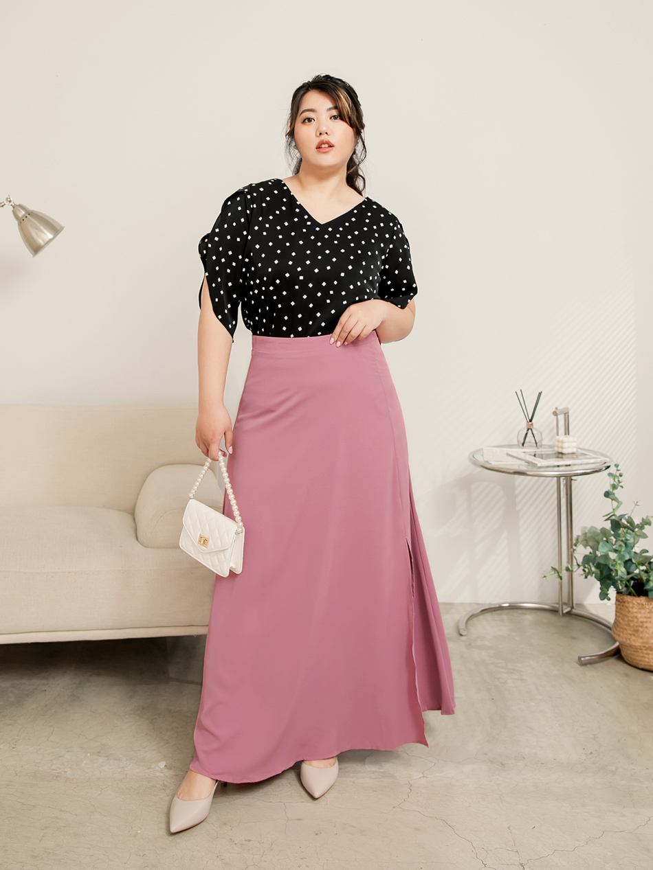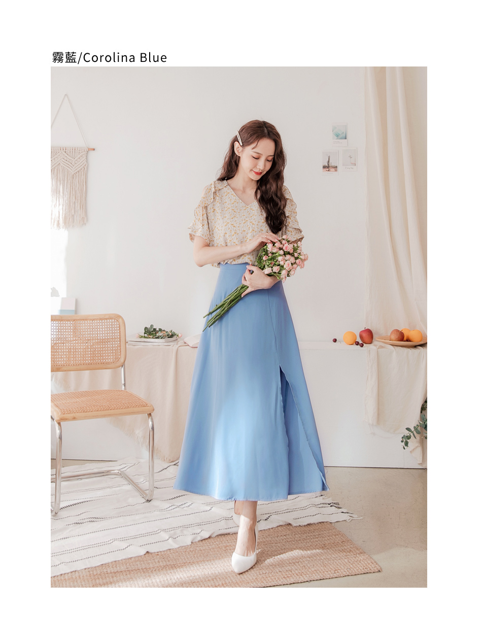 Flowing A-Line Maxi Skirt with Slit (S~3XL)