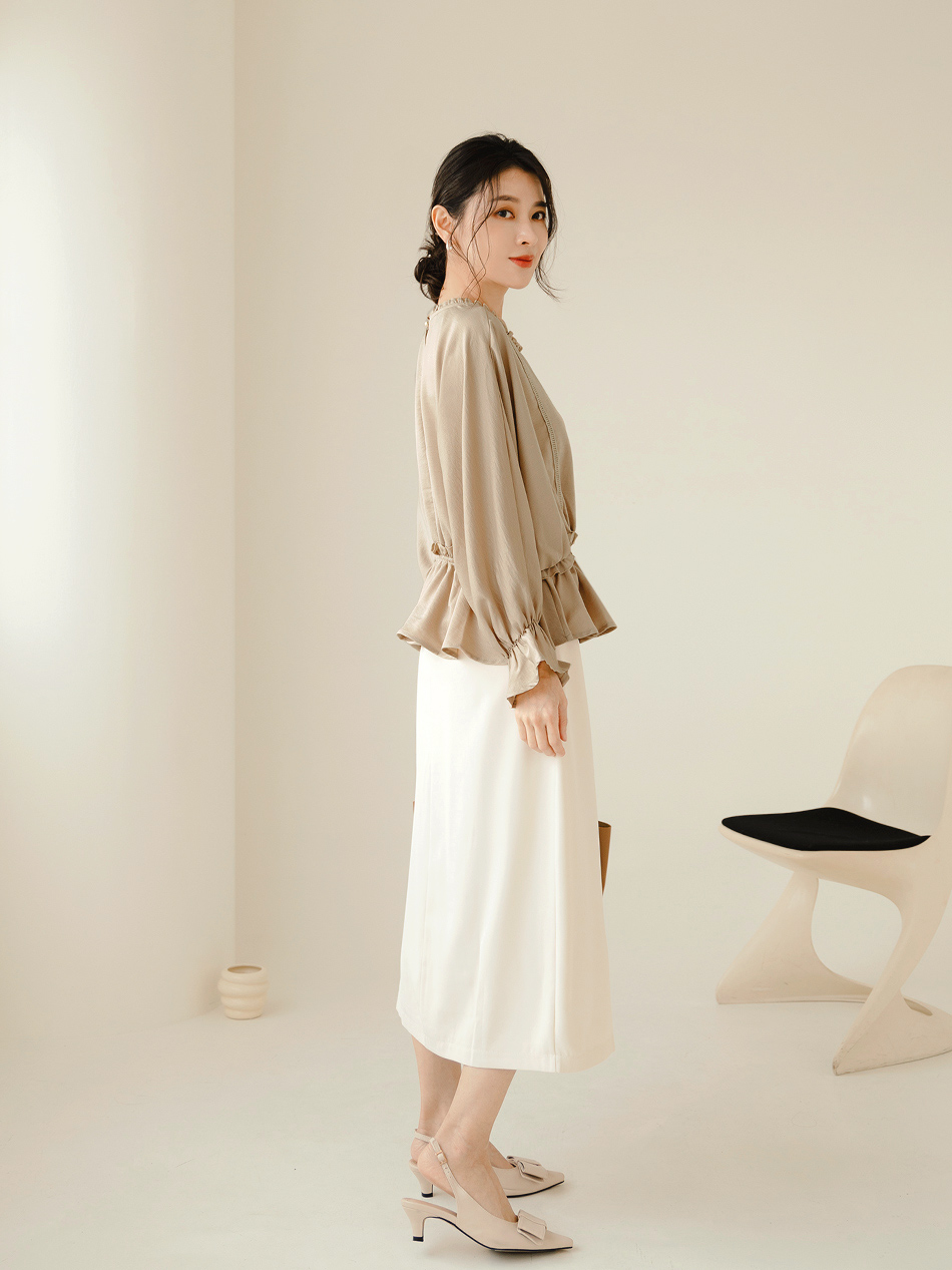 Product Feature: โ Crafted from lightweight, matte fabric. โ Delicate ruffled trim adds an elegant touch. โ Designed with a waist-cinching silhouette.