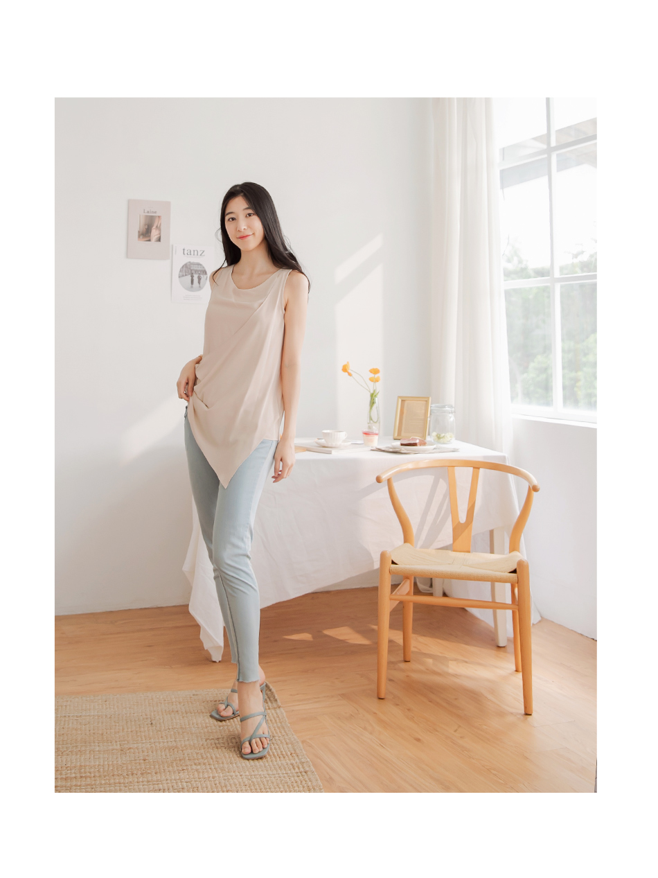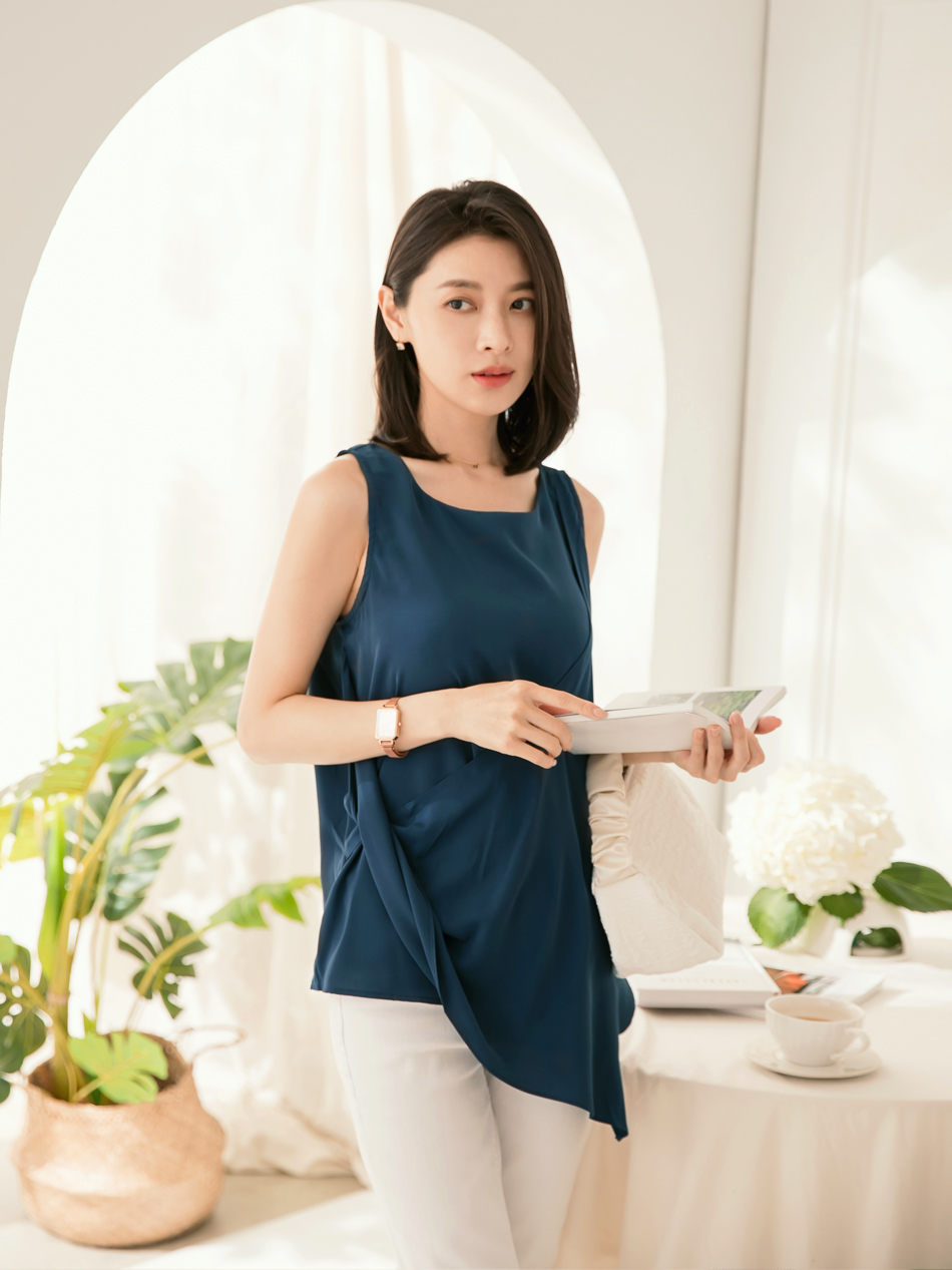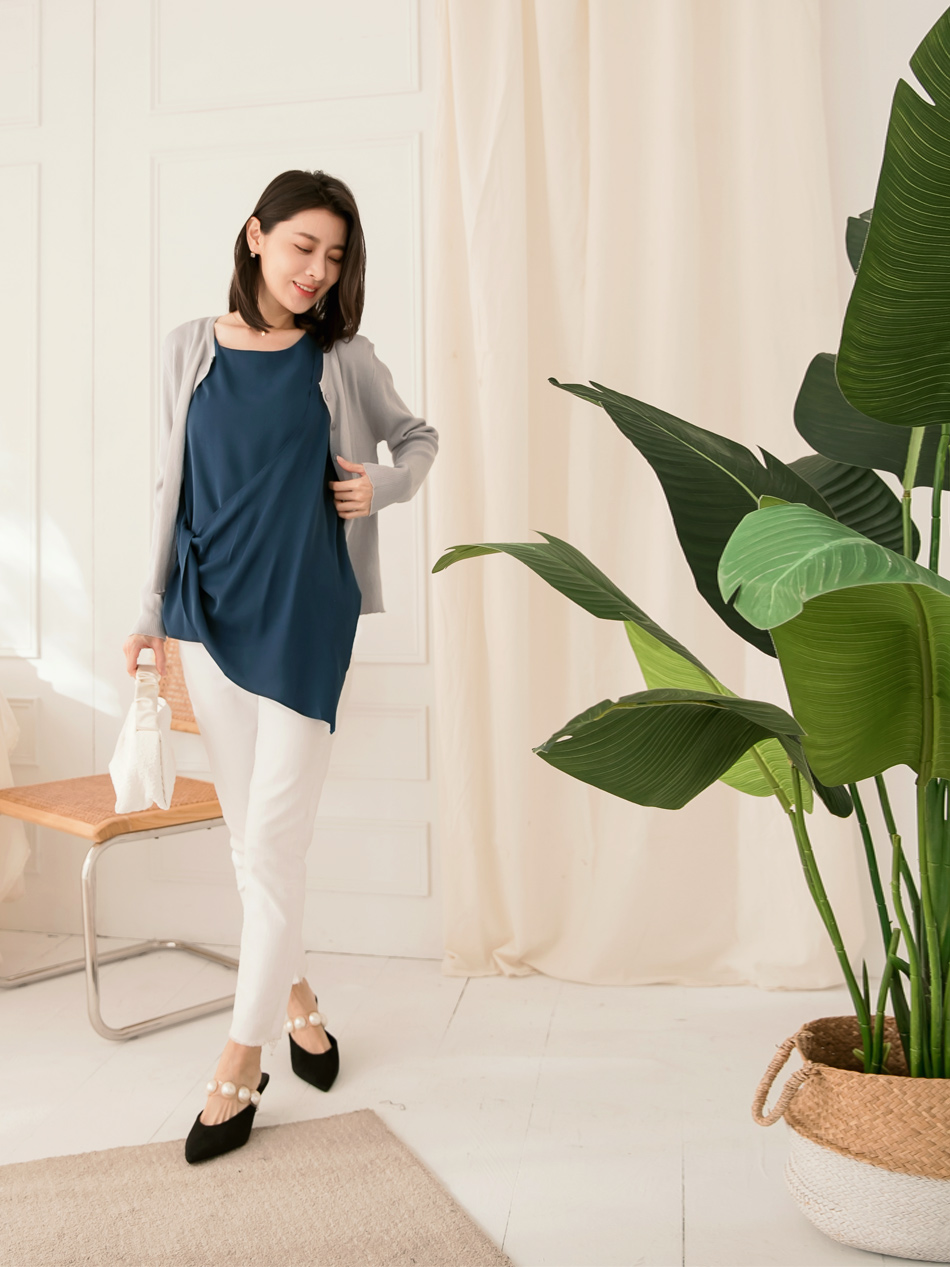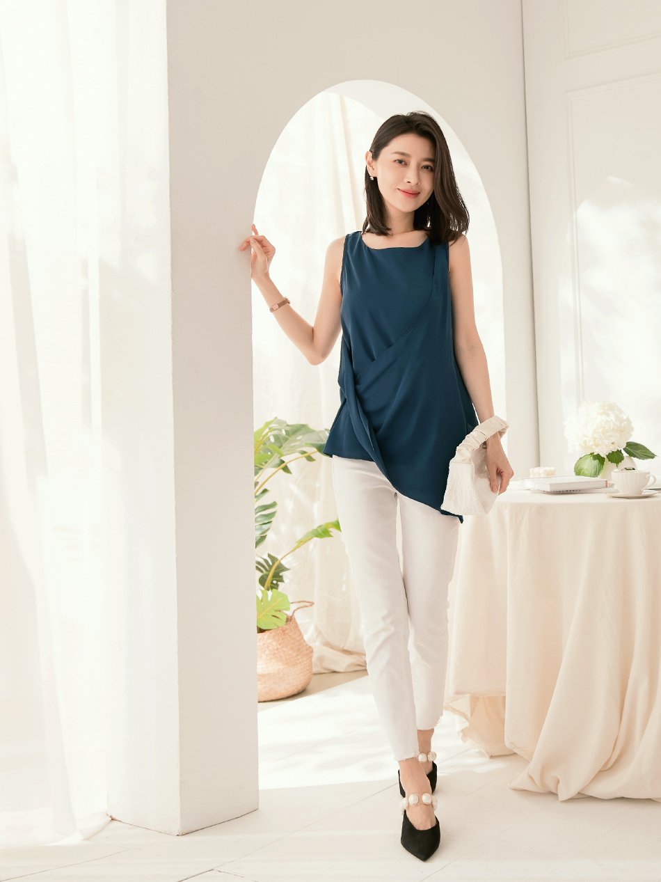 Product Feature: โ Crafted from soft, skin-friendly fabric for comfortable wear. โ Asymmetrical hem with twist detailing. โ Designed for a sophisticated, feminine look.