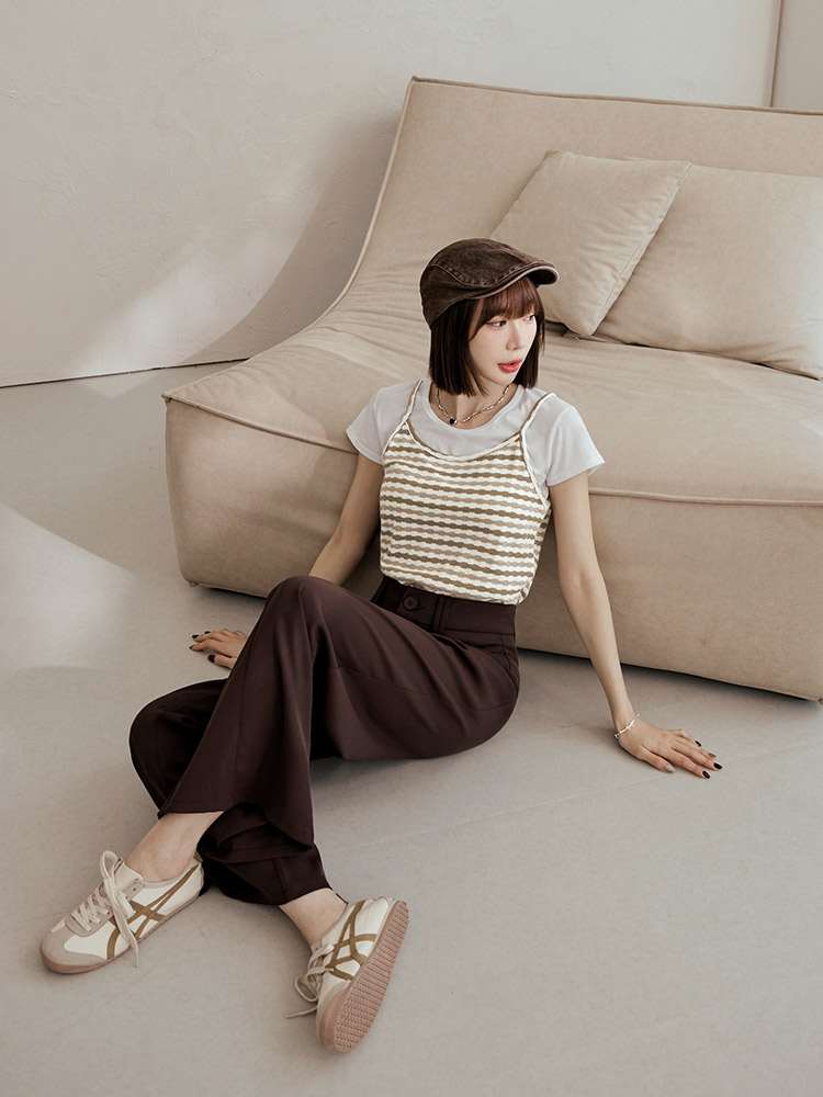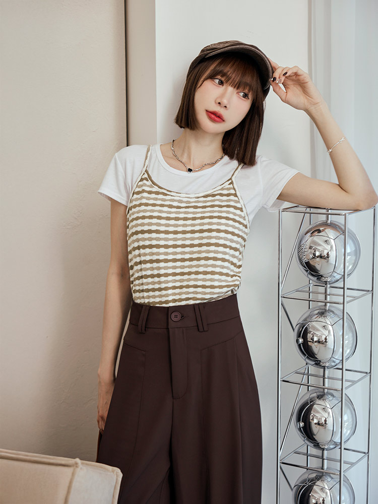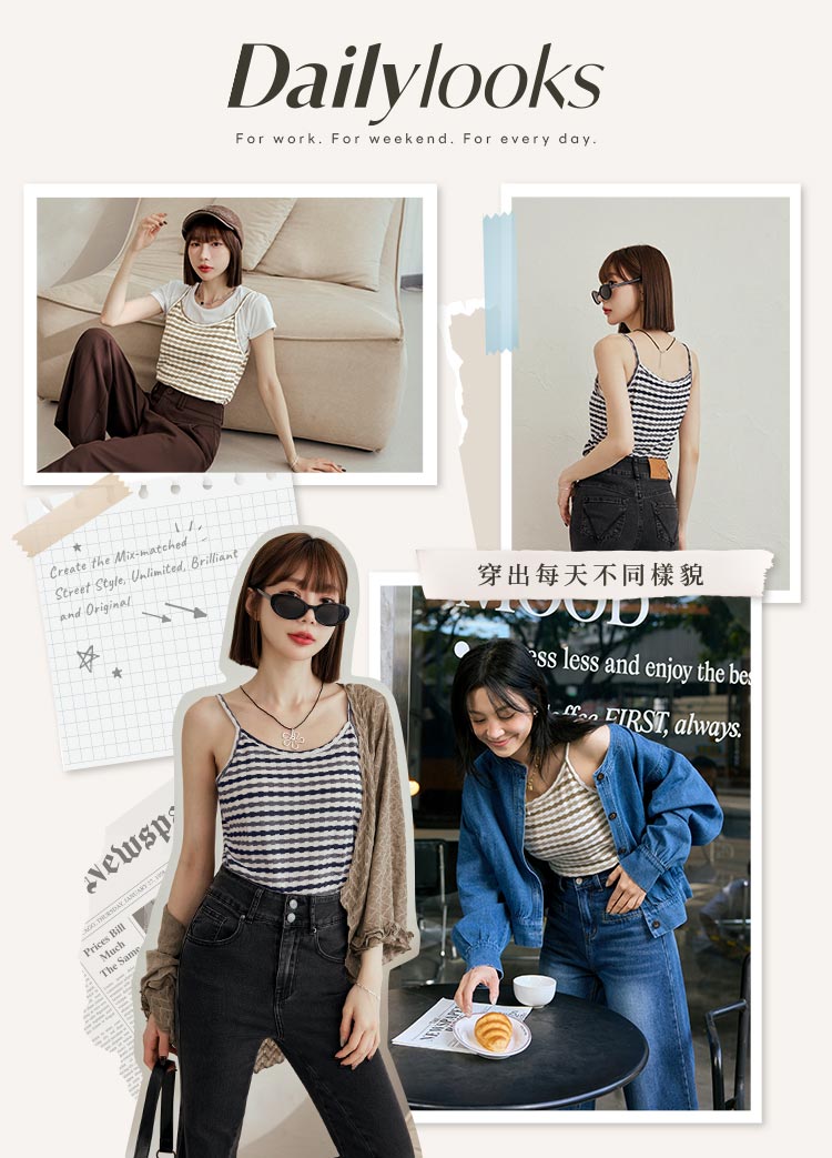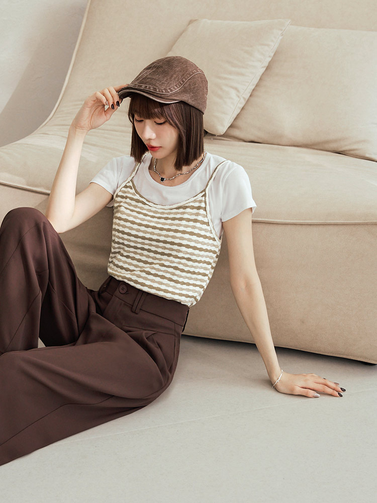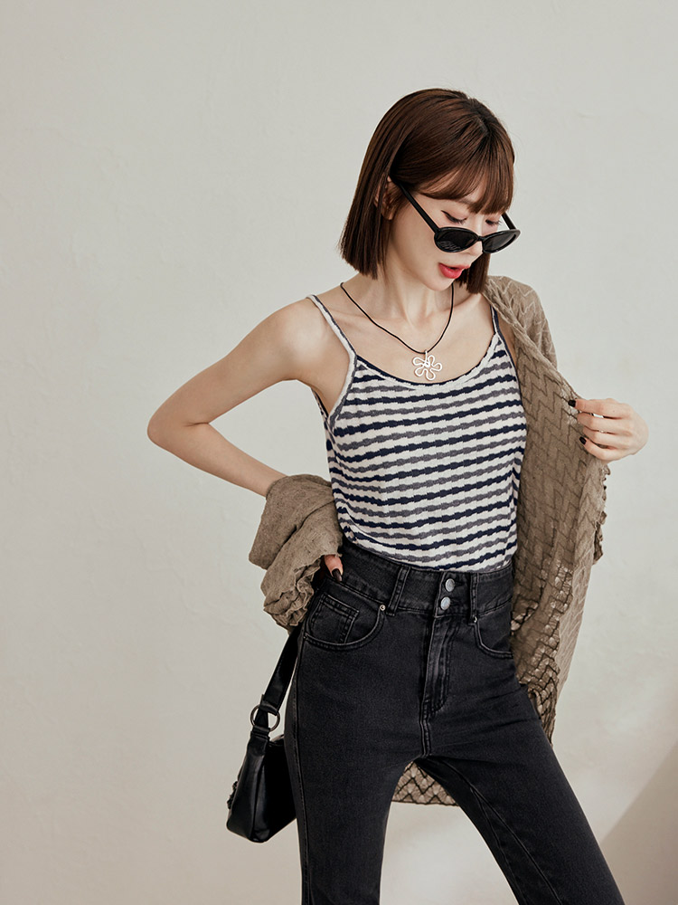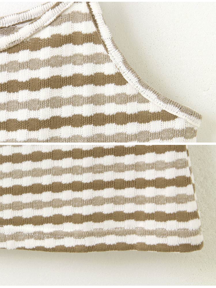 Product Feature: โ Crafted from a soft, skin-friendly cotton-blend knit โ Features a flattering fitted silhouette โ Striking striped design adds a touch of flair โ Non-adjustable straps