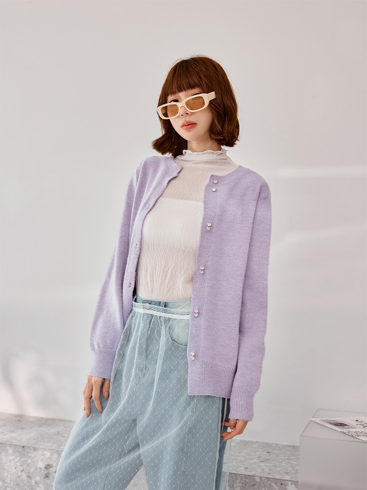 Soft Knit Cardigan with Heart Buttons (2XL~3XL)