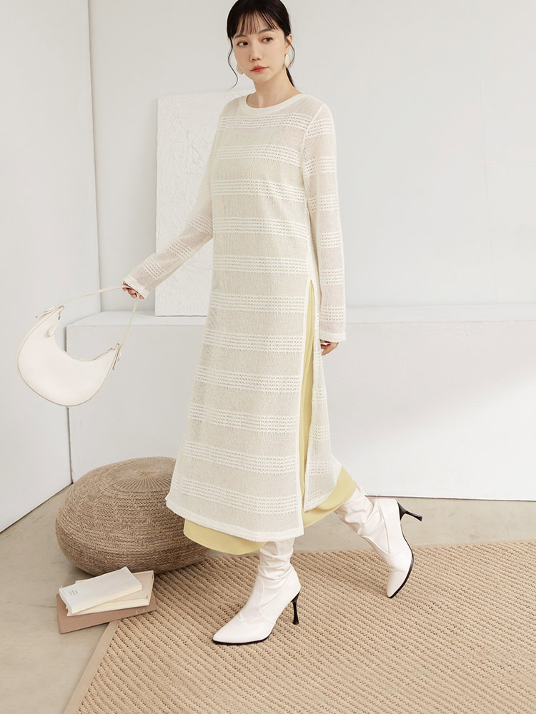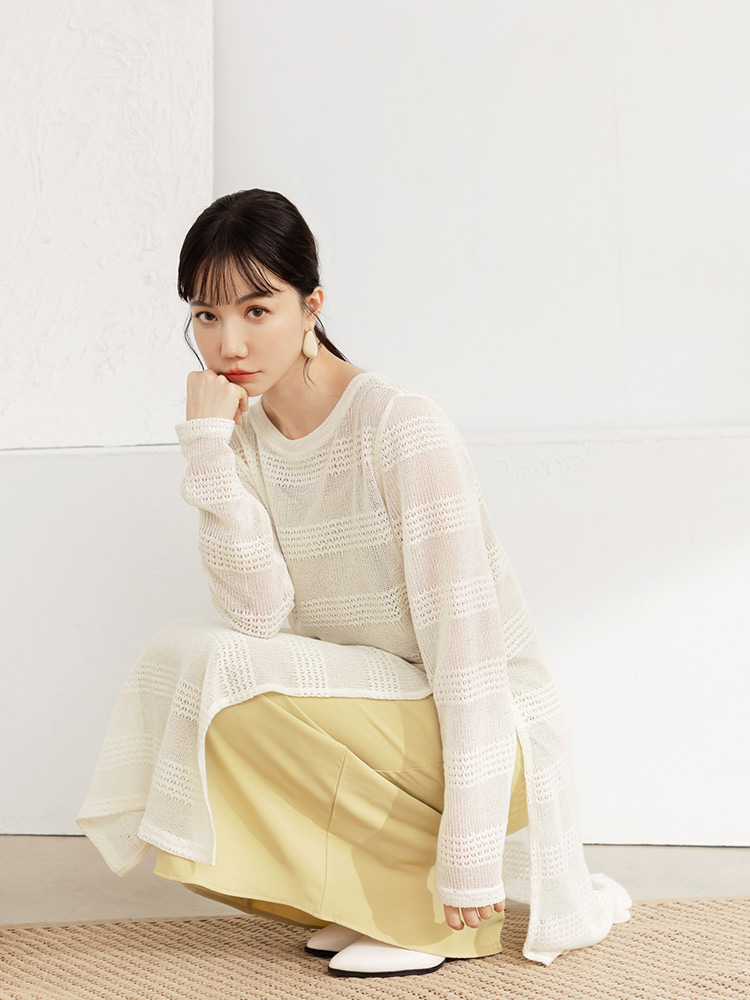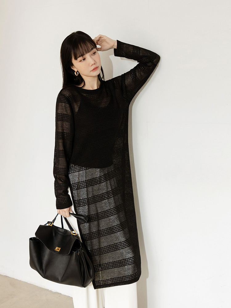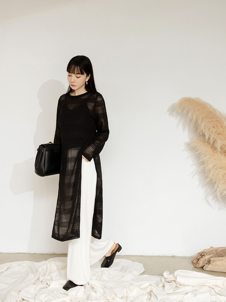 Product Feature: โ Crafted from a soft, fine knit that feels gentle on the skin โ Features a stylish open-knit design for added layering โ Flattering side splits to enhance your silhouette โ Ideal to pair with DA10630