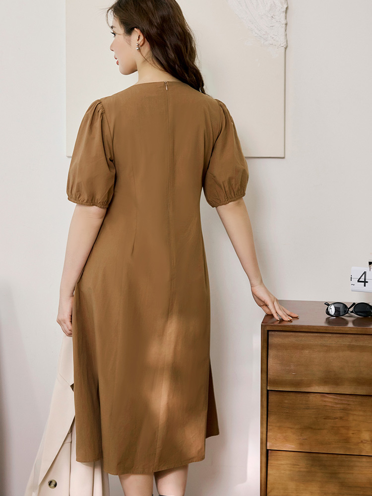 Product Feature: โ Crafted from a soft cotton blend for all-day comfort โ Features a flattering A-line silhouette that accentuates the waist โ Designed with a concealed back zip and elasticated cuffs โ Pleated skirt offers a flowing, elegant drape