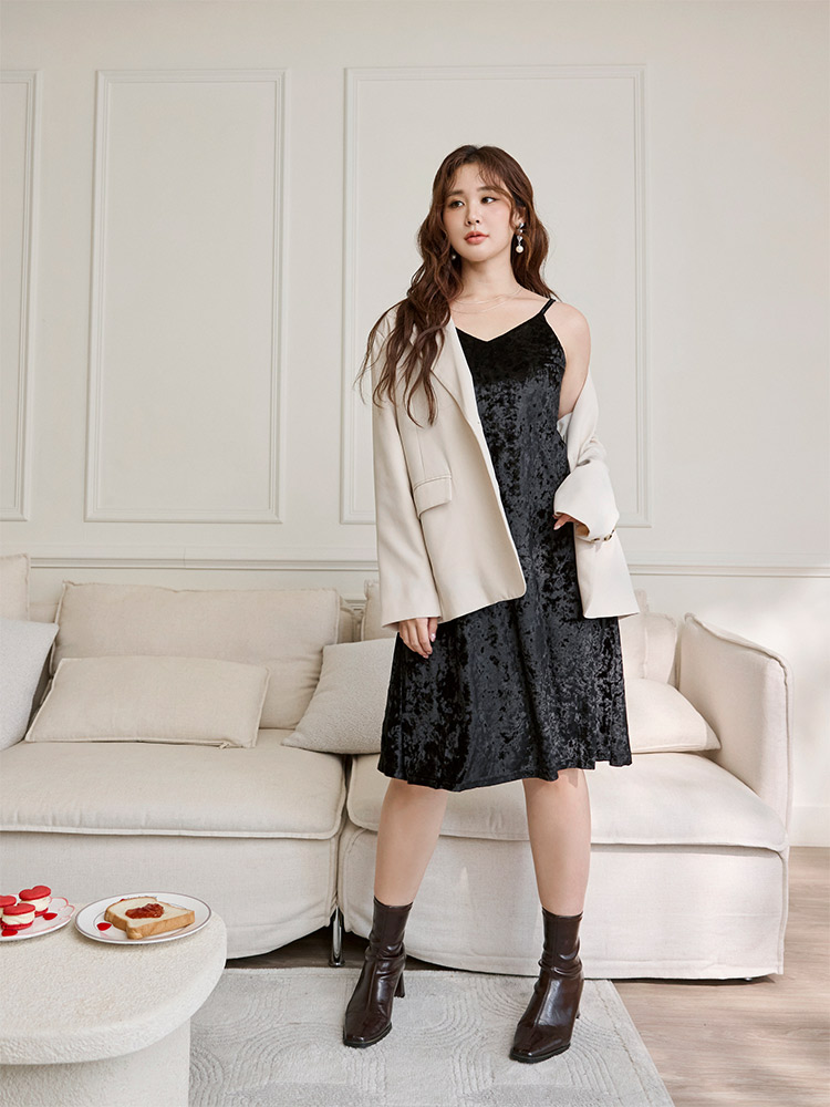 Satin-Finish Cami Dress with Adjustable Straps (XL~4XL)