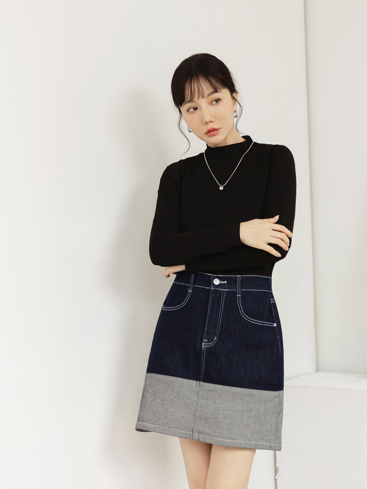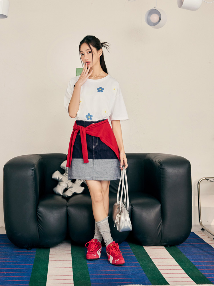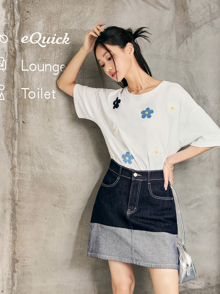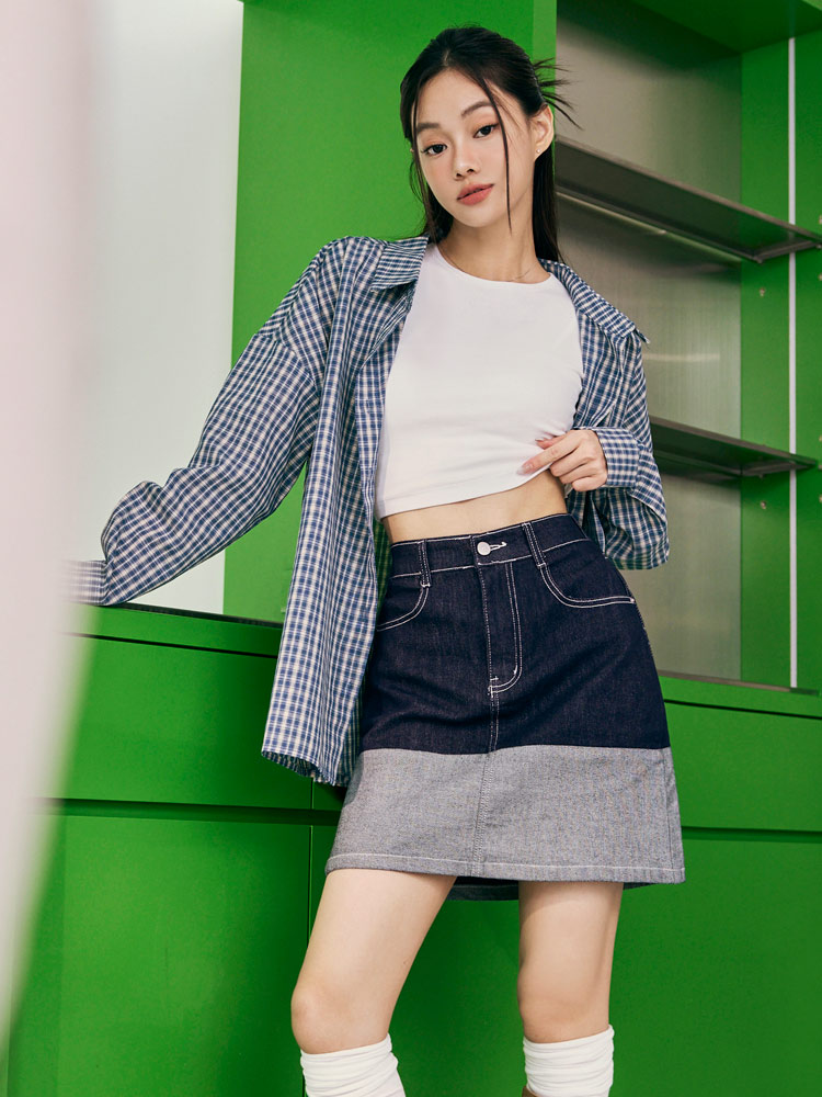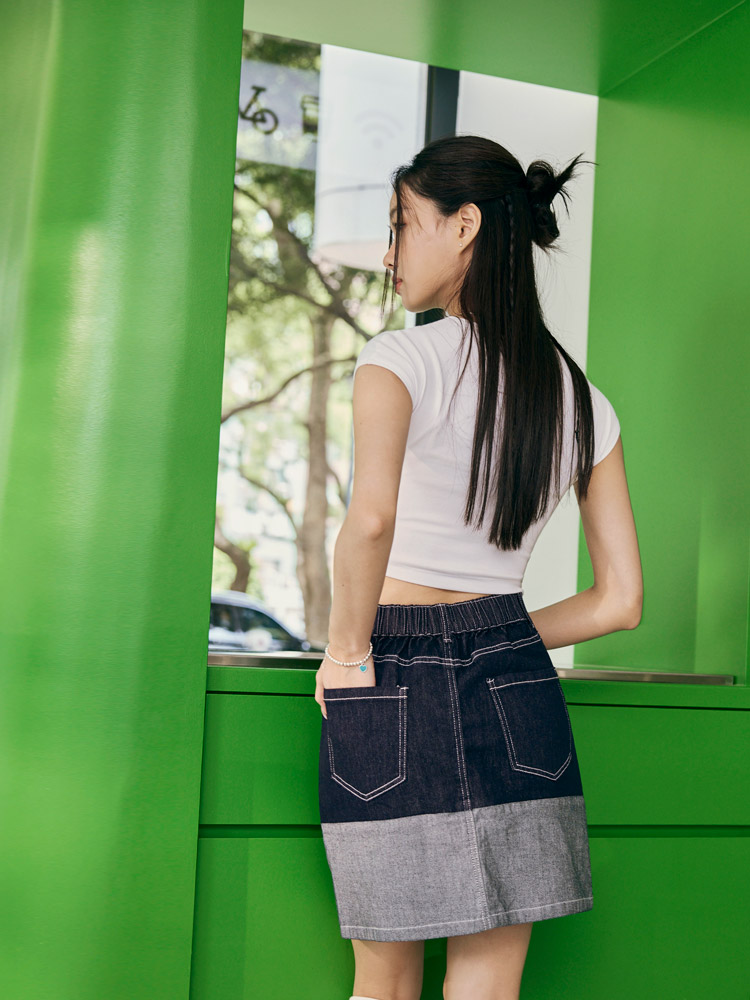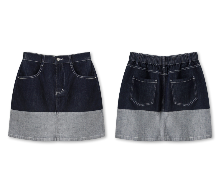 Colour-Block Denim Mini Skirt (2XL~4XL)