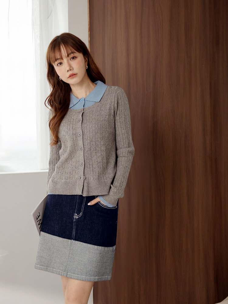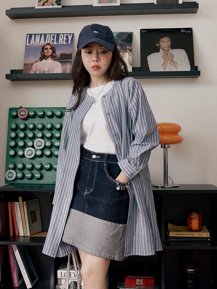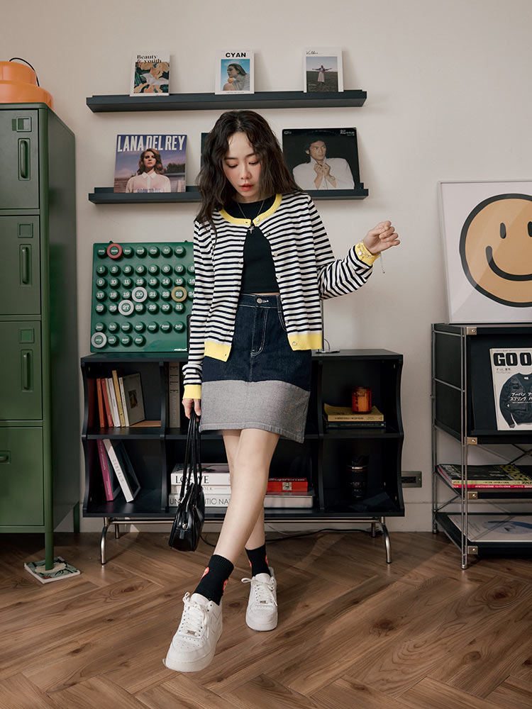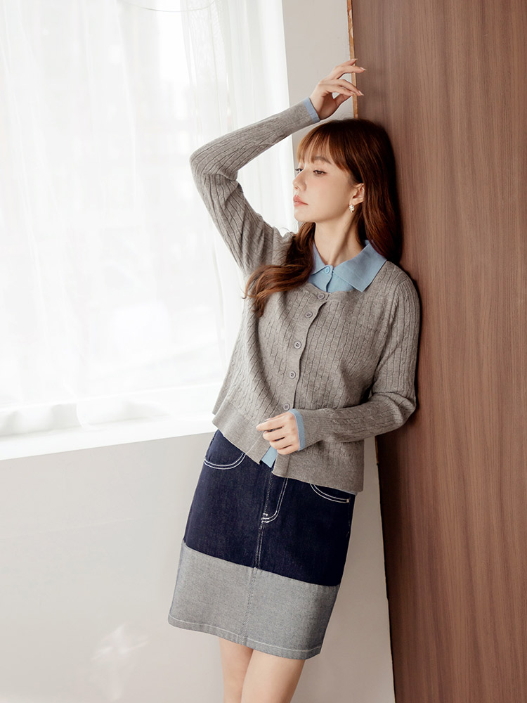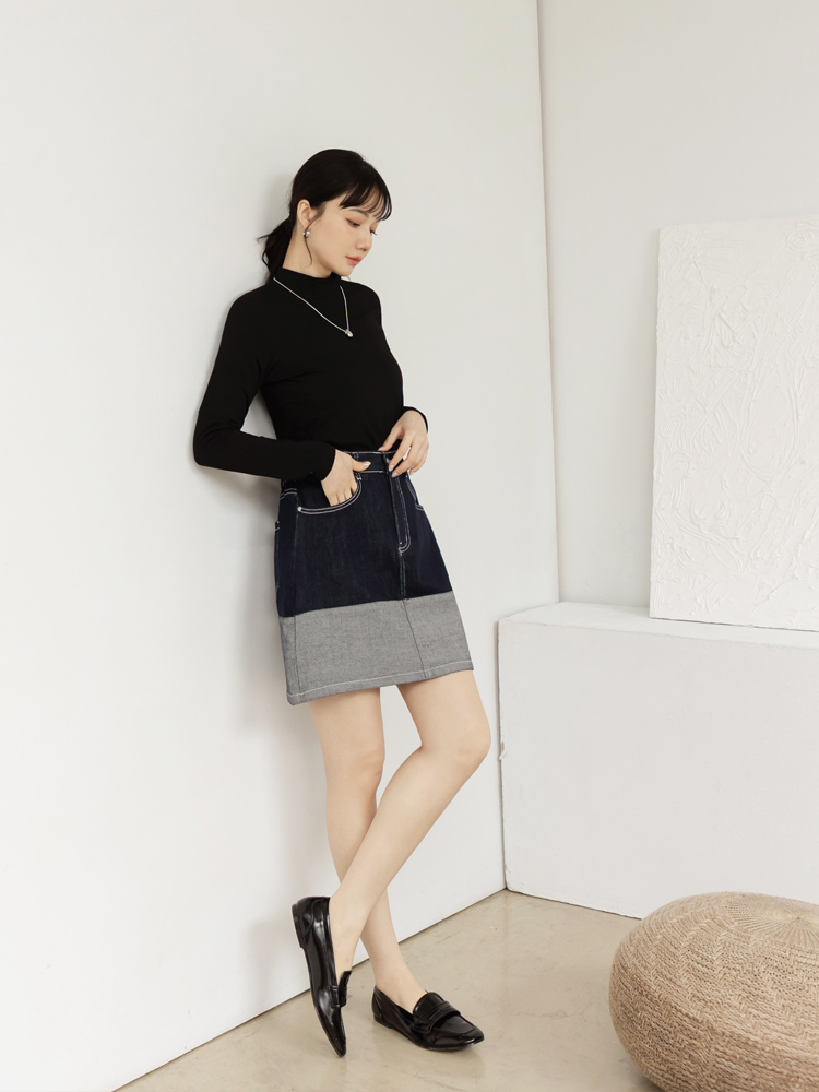 Colour-Block Denim Mini Skirt (2XL~4XL)