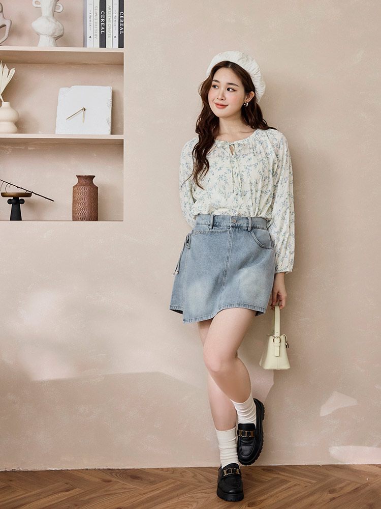 Product Feature: โ Crafted from breathable, pure cotton. โ Features a flattering A-line silhouette. โ Designed with a tie-waist detail for a custom fit. โ Concealing skirt panel for added coverage. โ Includes functional front and back pockets.