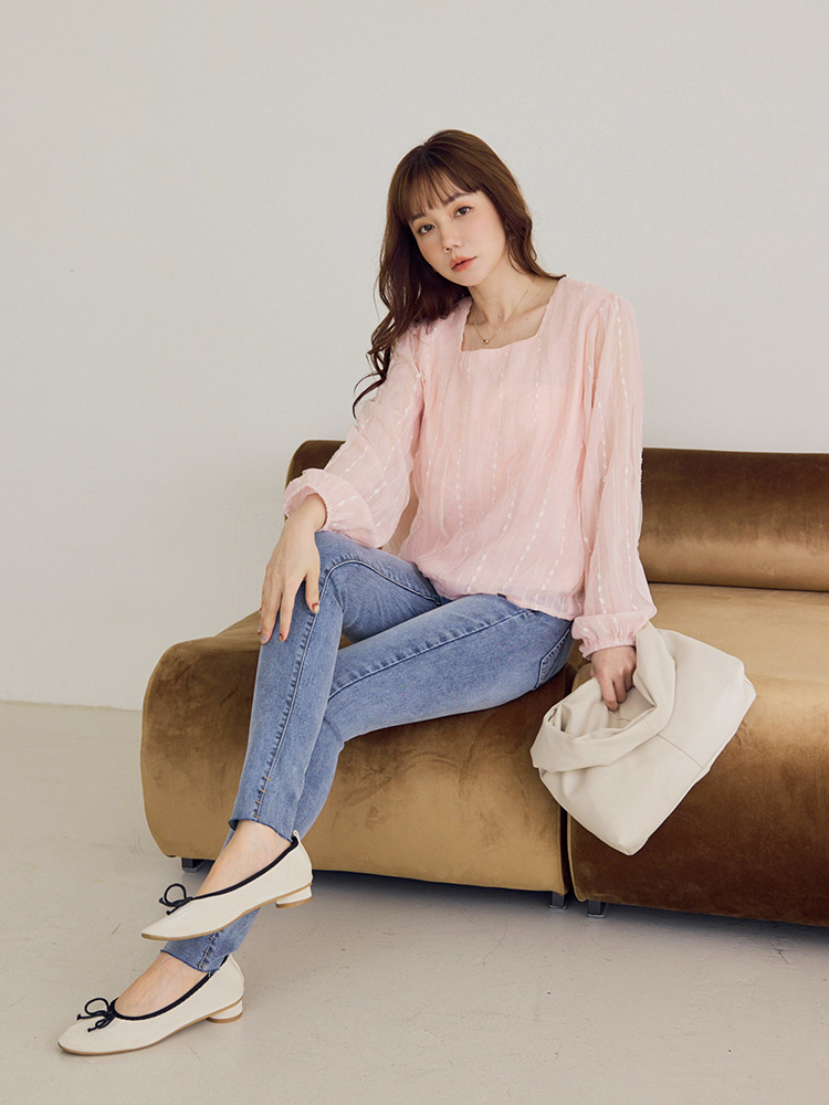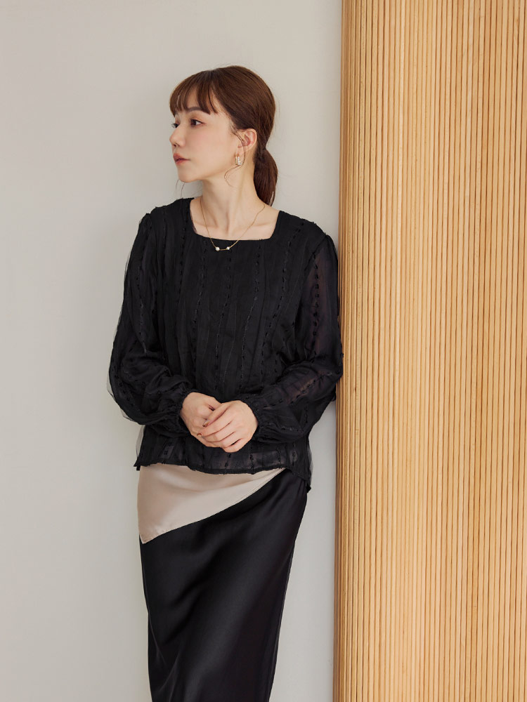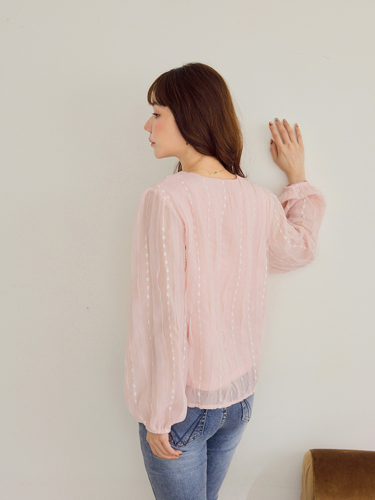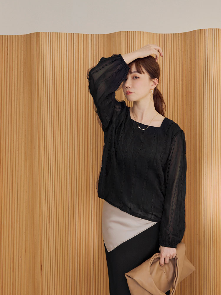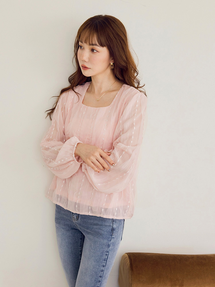 Product Feature: โ Crafted from delicate embroidered mesh fabric. โ Features a flattering square neckline. โ Designed with elegant, slightly sheer puff sleeves. โ Includes a comfortable inner lining.