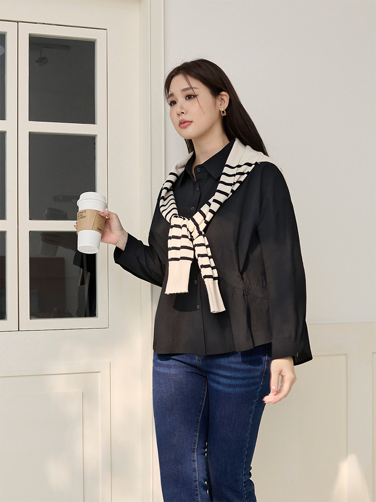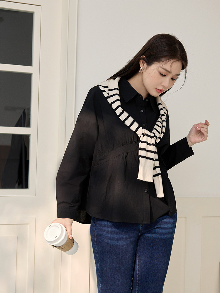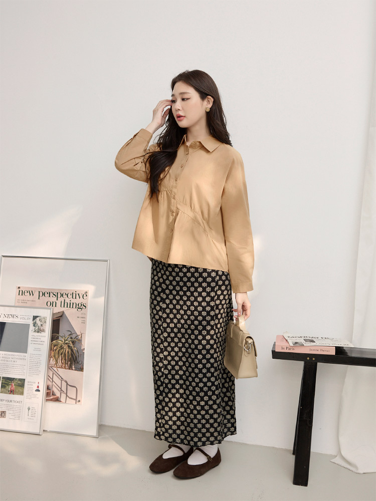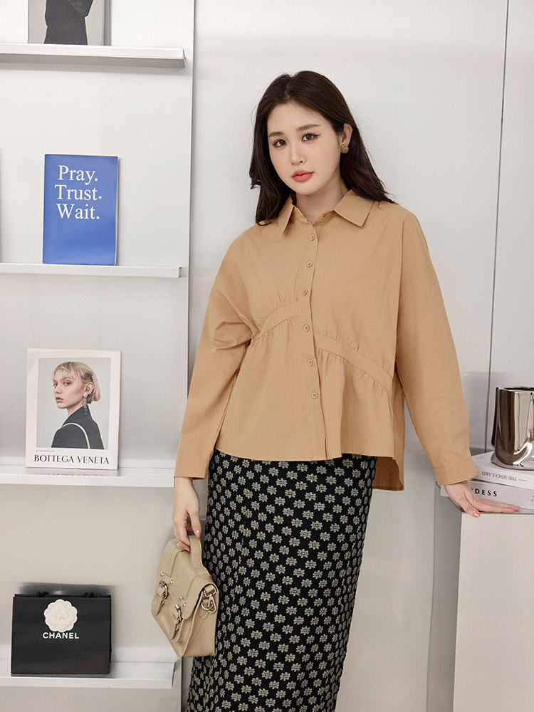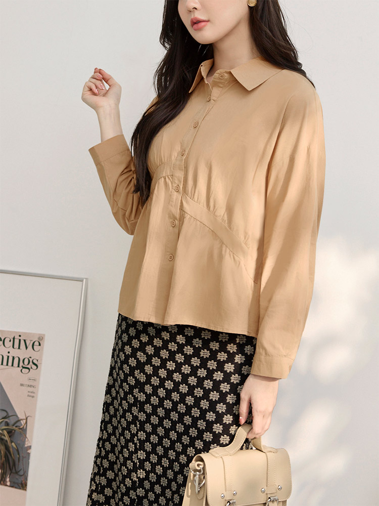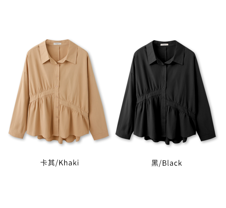 Product Feature: โ Crafted from soft, breathable cotton โ Features an asymmetrical pleated design that flatters the figure โ Designed with functional buttons at the front and cuffs โ Offers a comfortable, relaxed fit