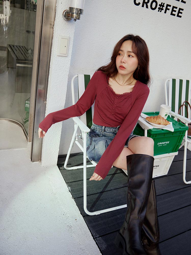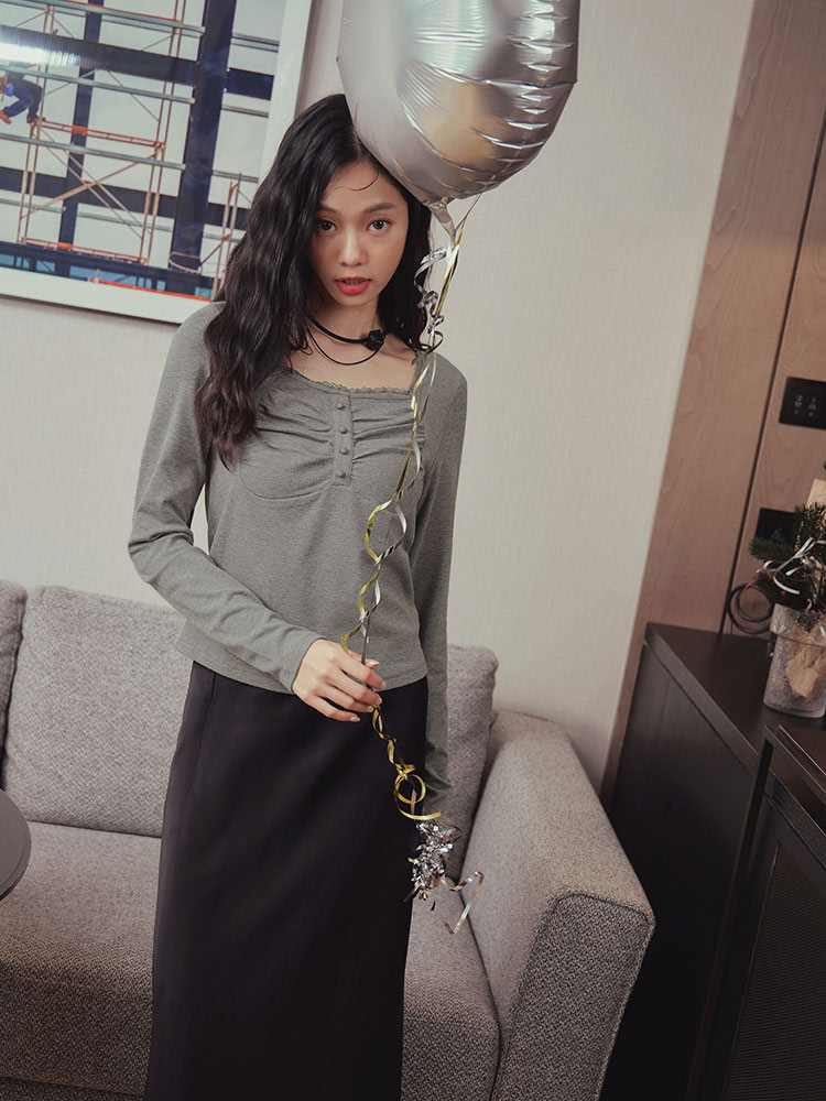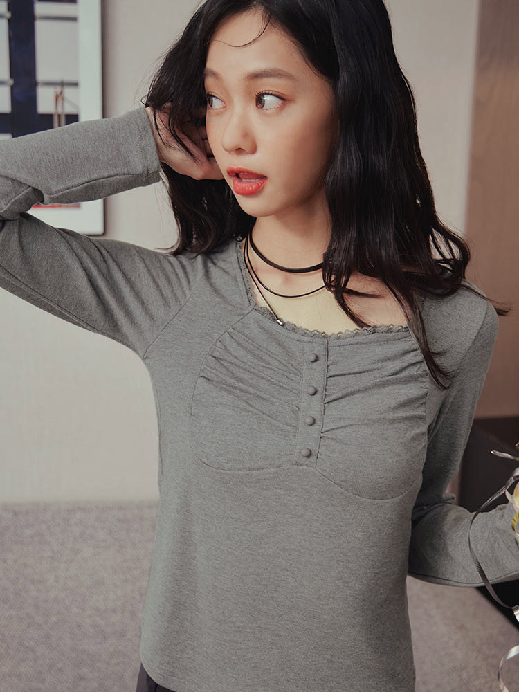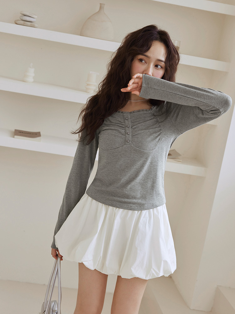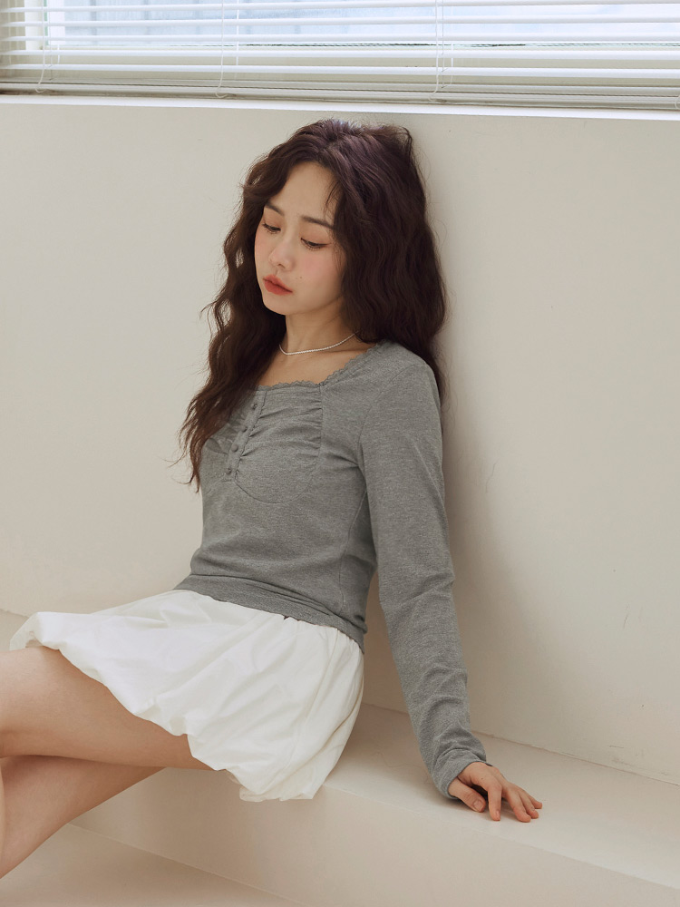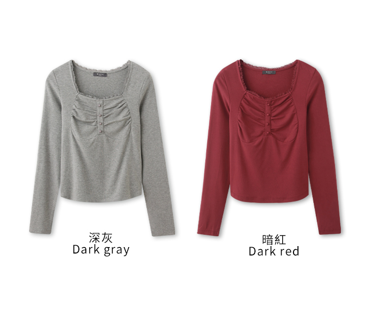 Product Feature: โ Crafted from a soft, skin-friendly fabric. โ Features a flattering square neckline. โ Designed with three-dimensional ruched detailing and button accents.